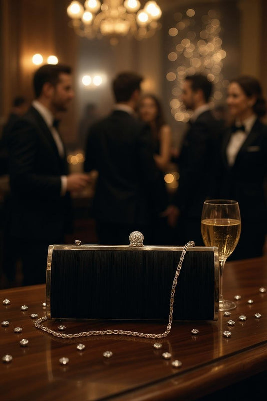 Black satin evening handbag