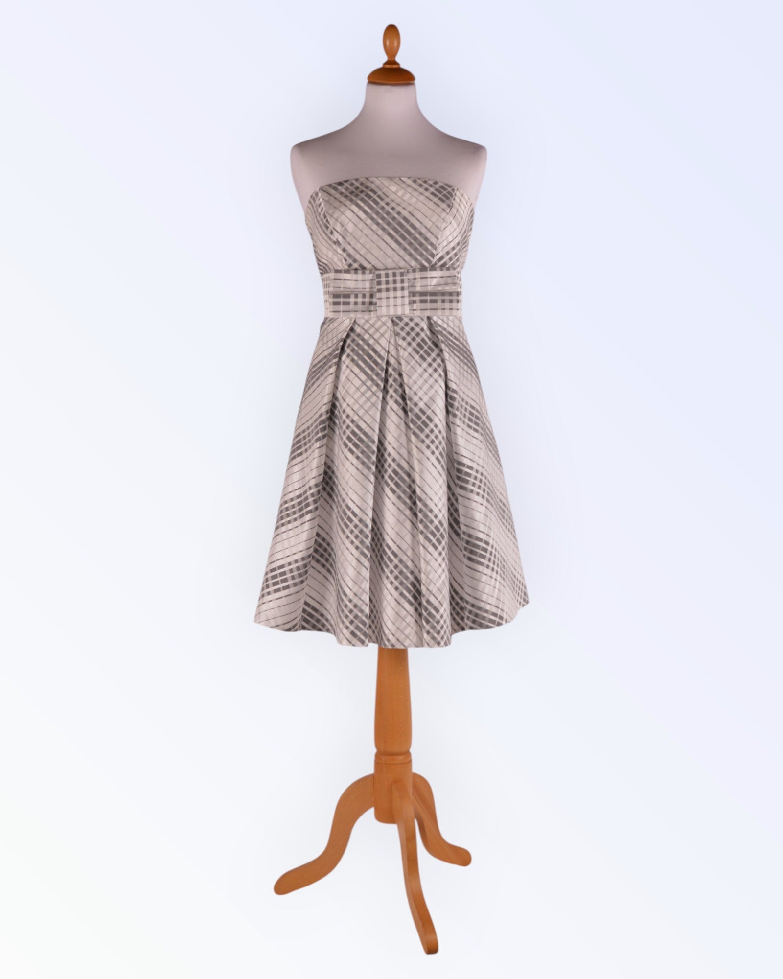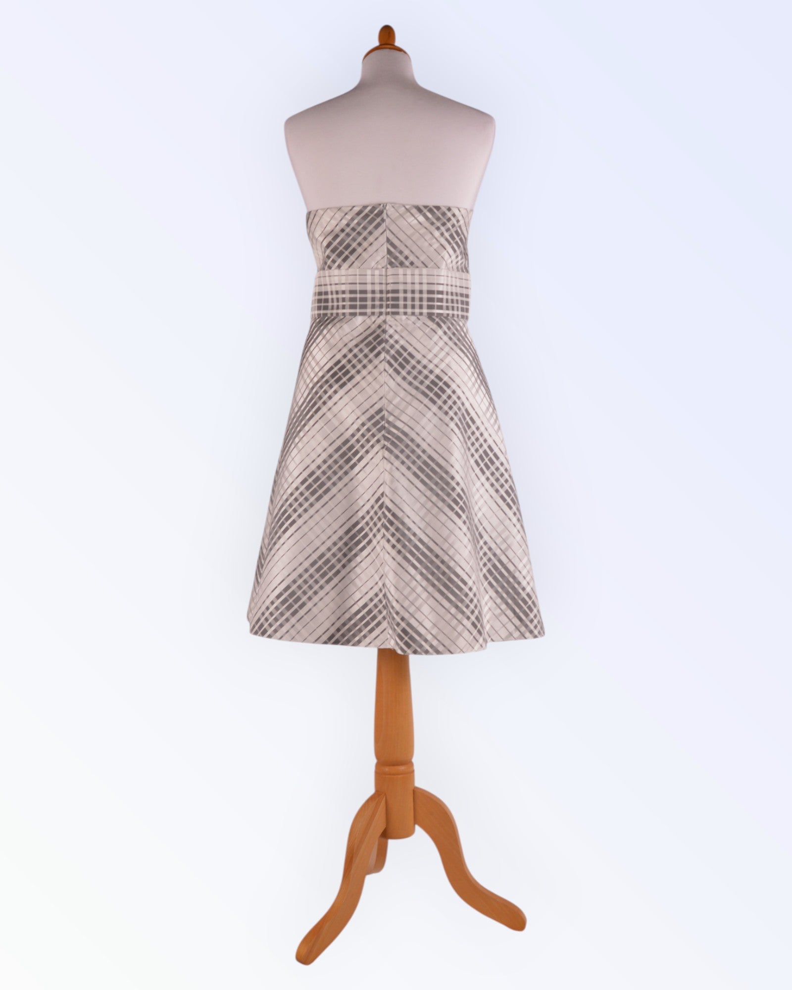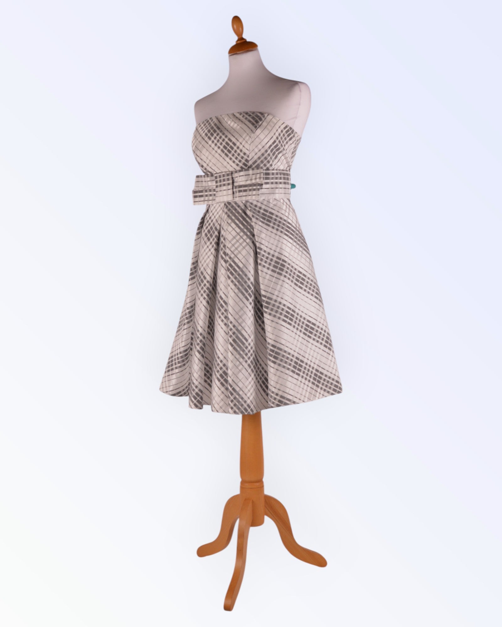 Corset dress with a puffy skirt made of gray and white checked taffeta. Especially suitable for school parties. Lined product.