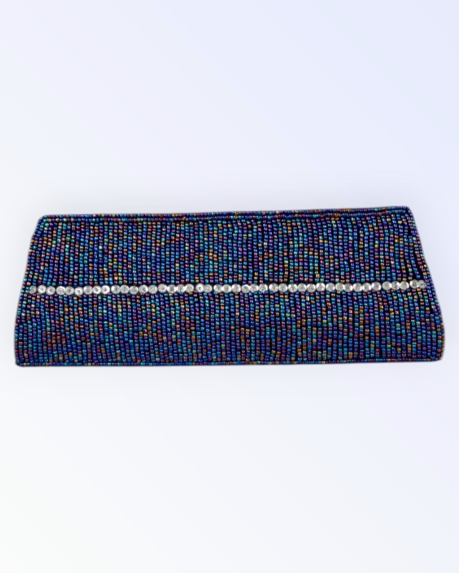 Bijoux Terner navy blue satin party bag.