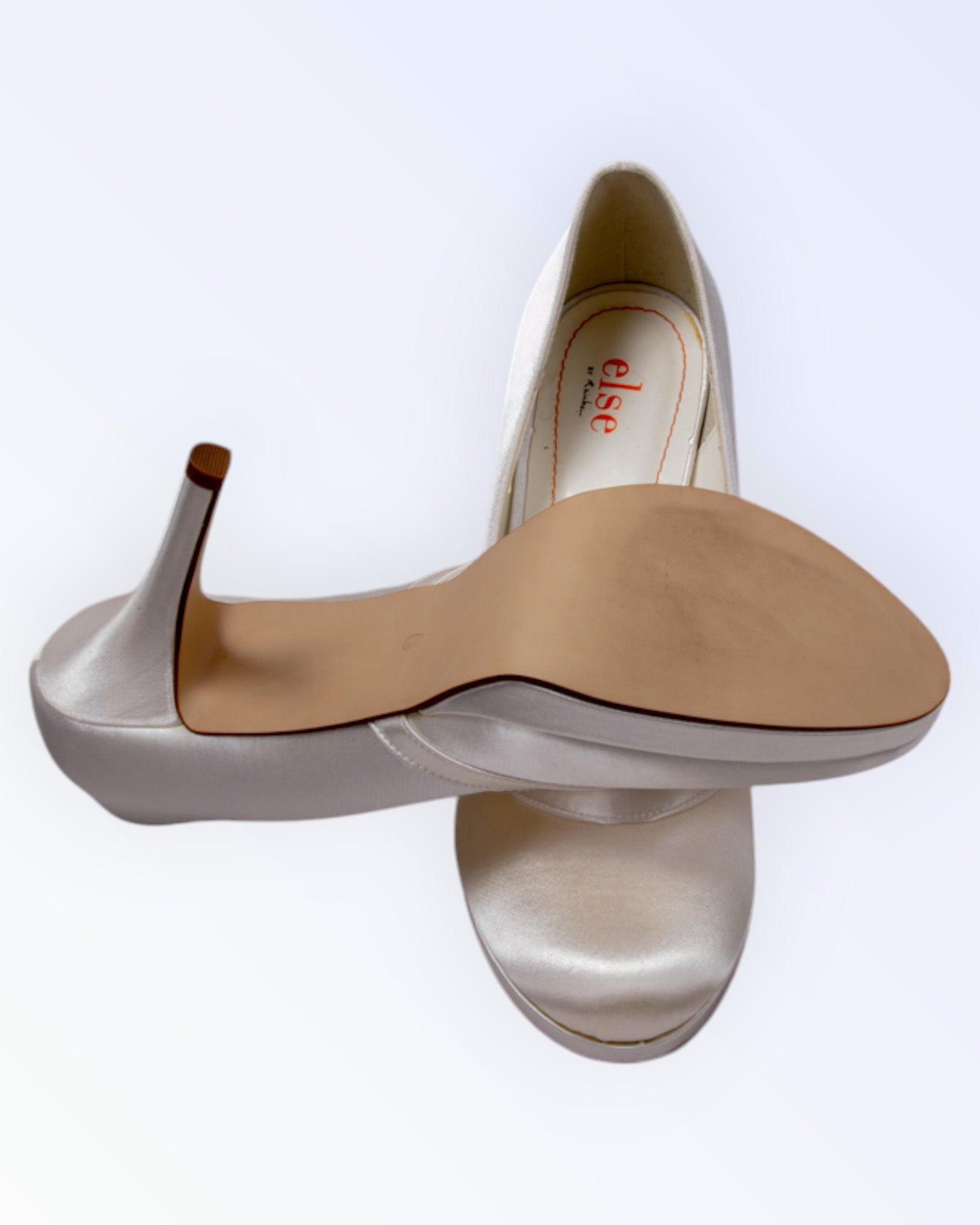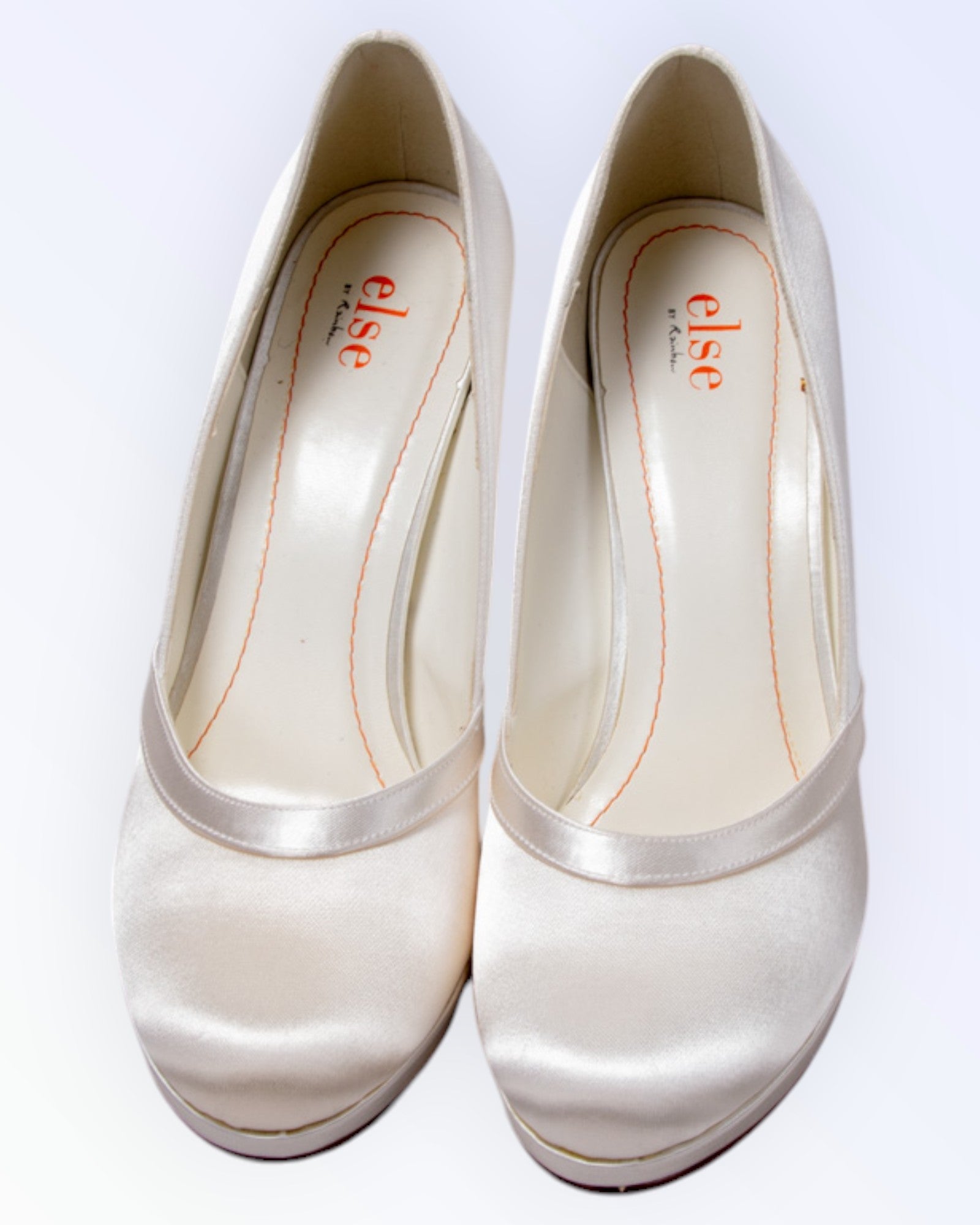 Satin wedding shoes with a round toe, which can be repainted if desired.