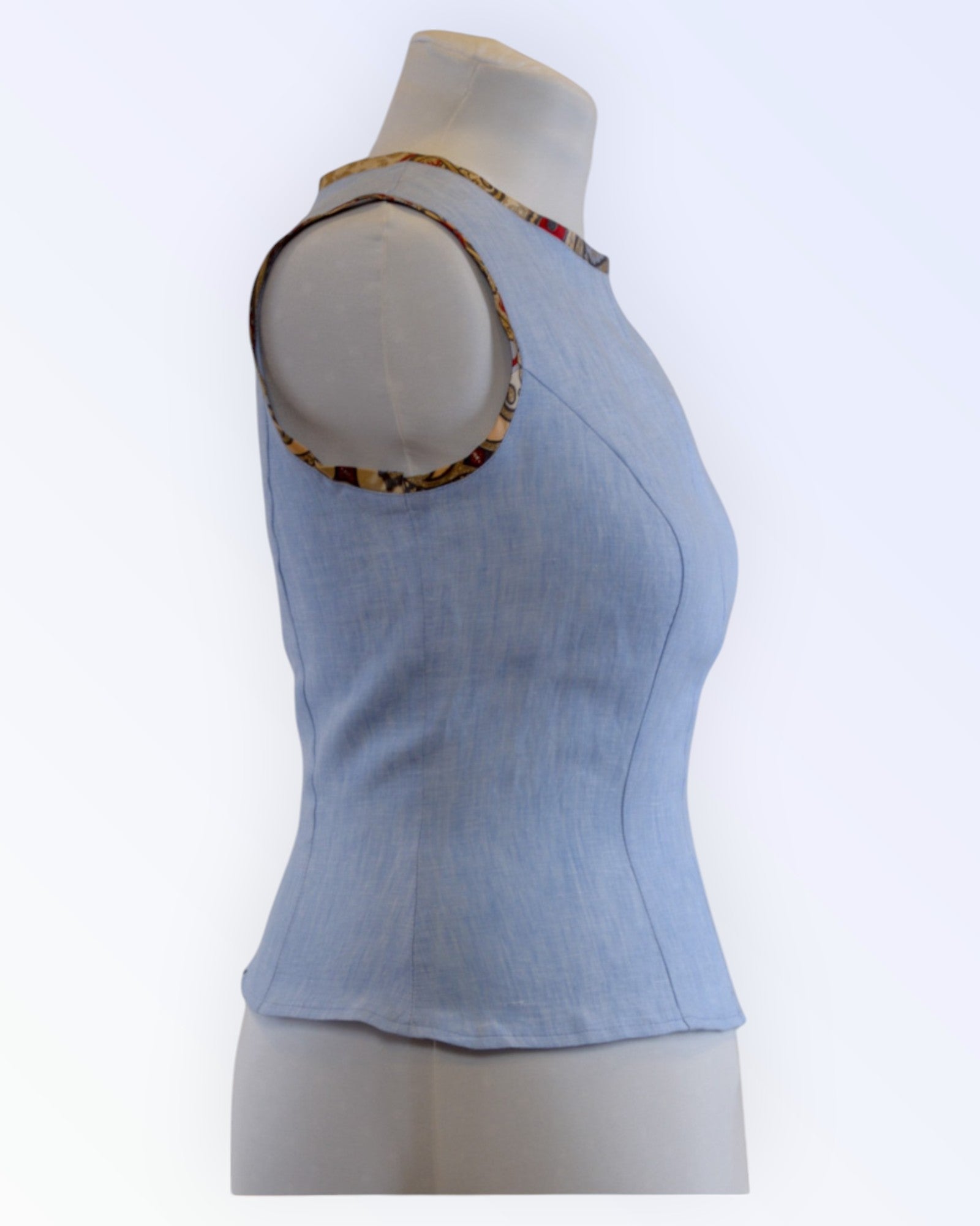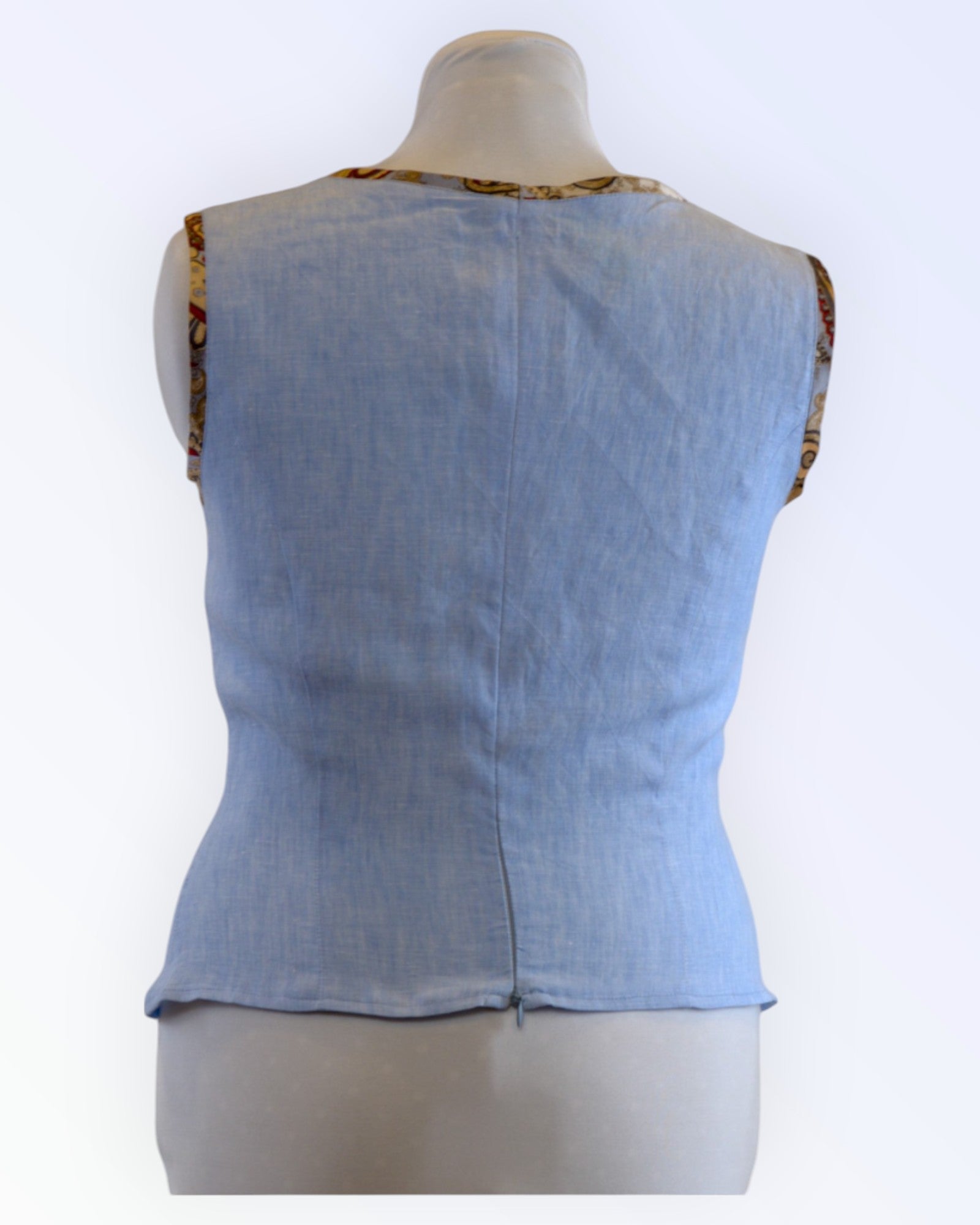 Linen top with colorful silk trim.