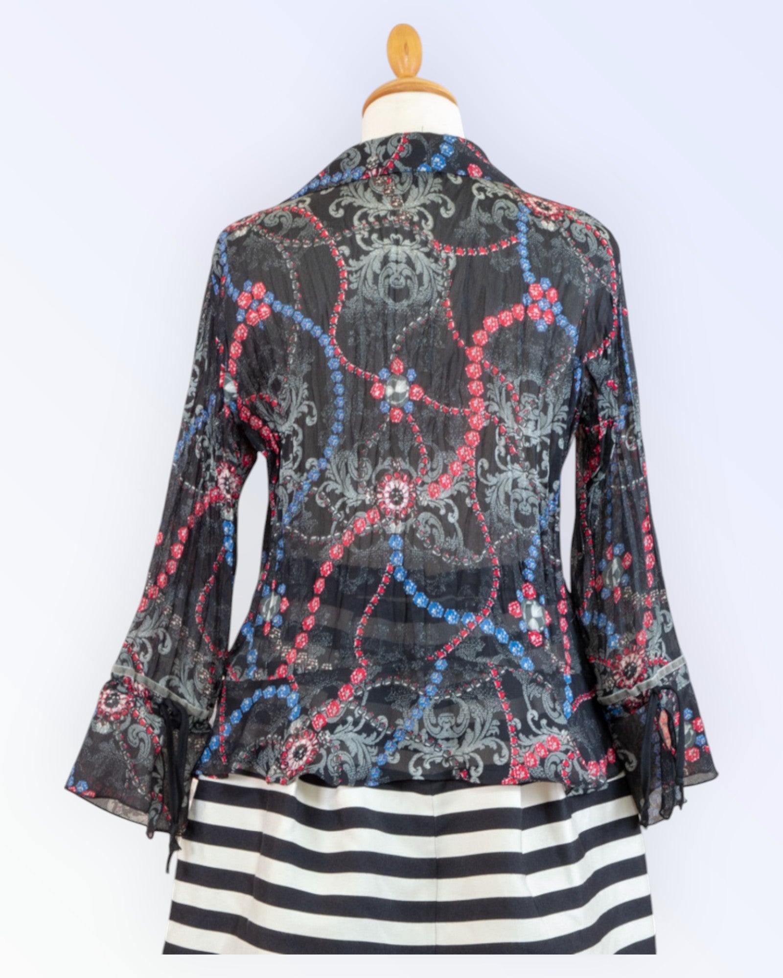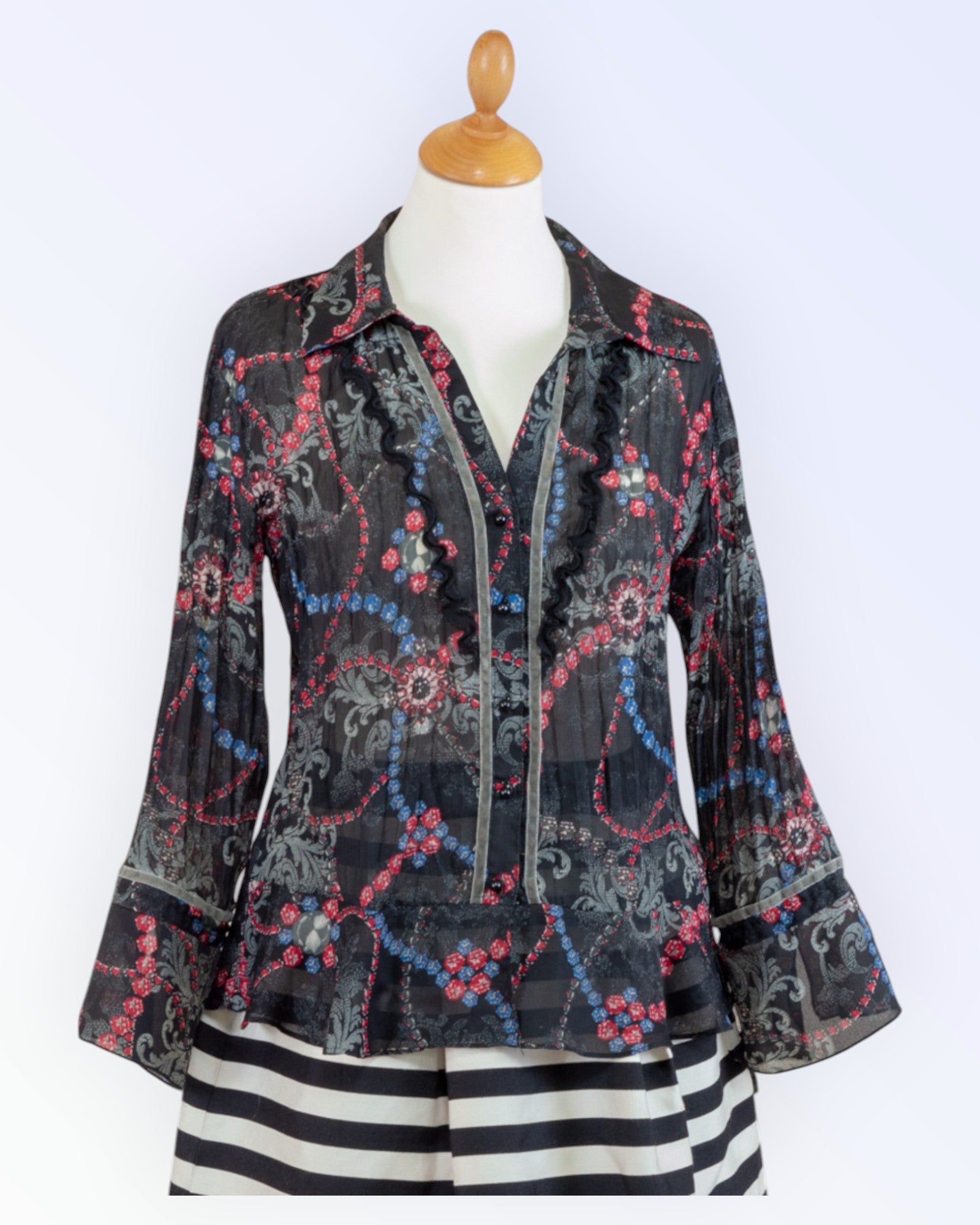 Kriss Sweden floral blouse. A romantic, work-style blouse made of corrugated fabric is suitable for both festive and everyday wear.