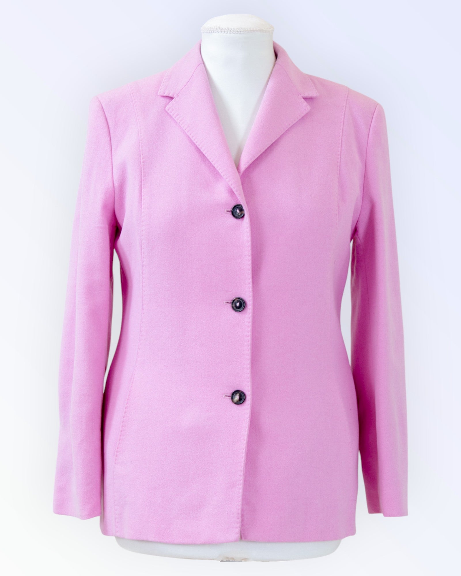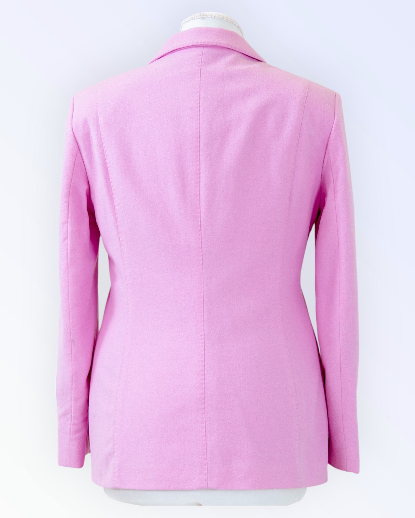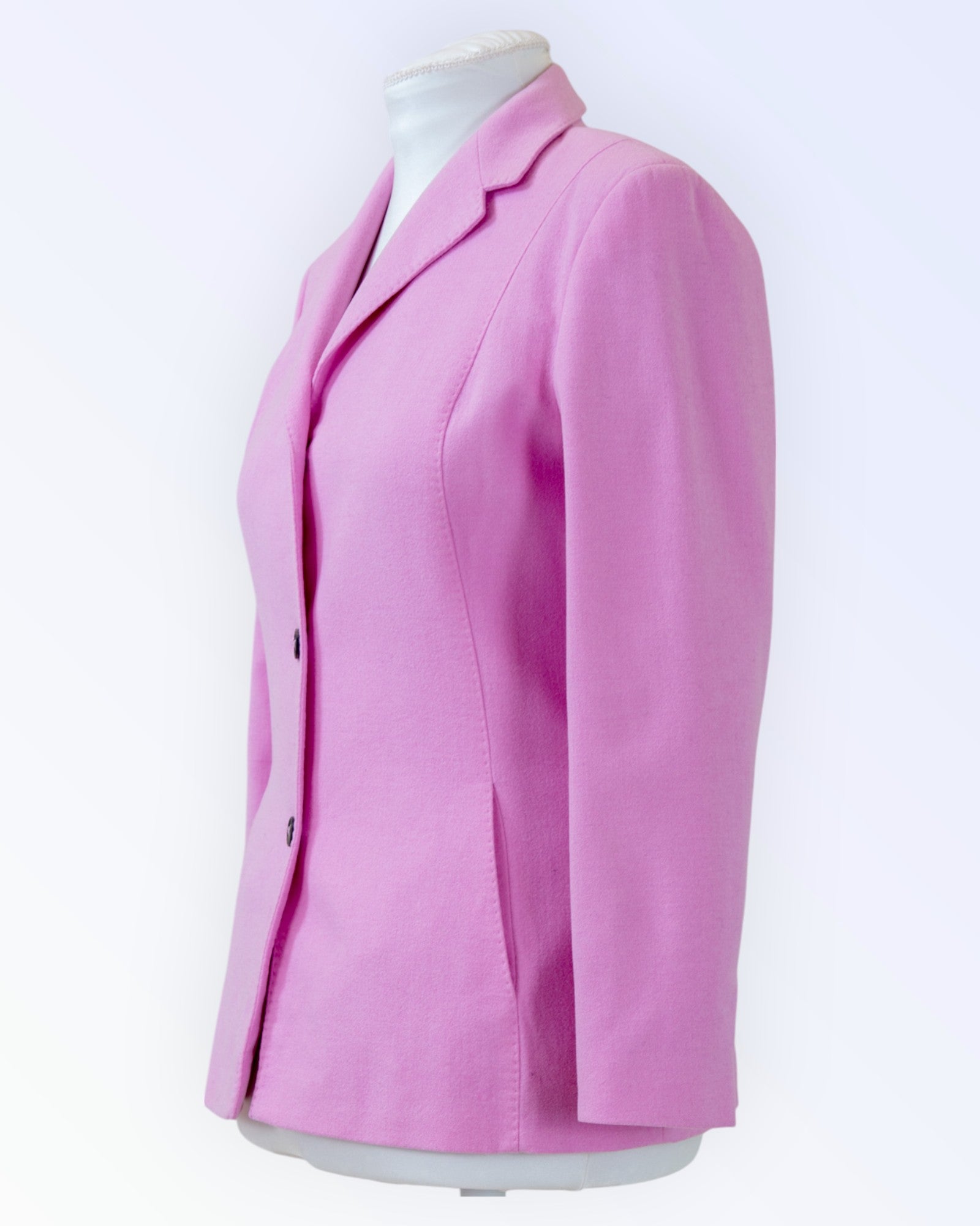 Pink blazer made of soft wool fabric.