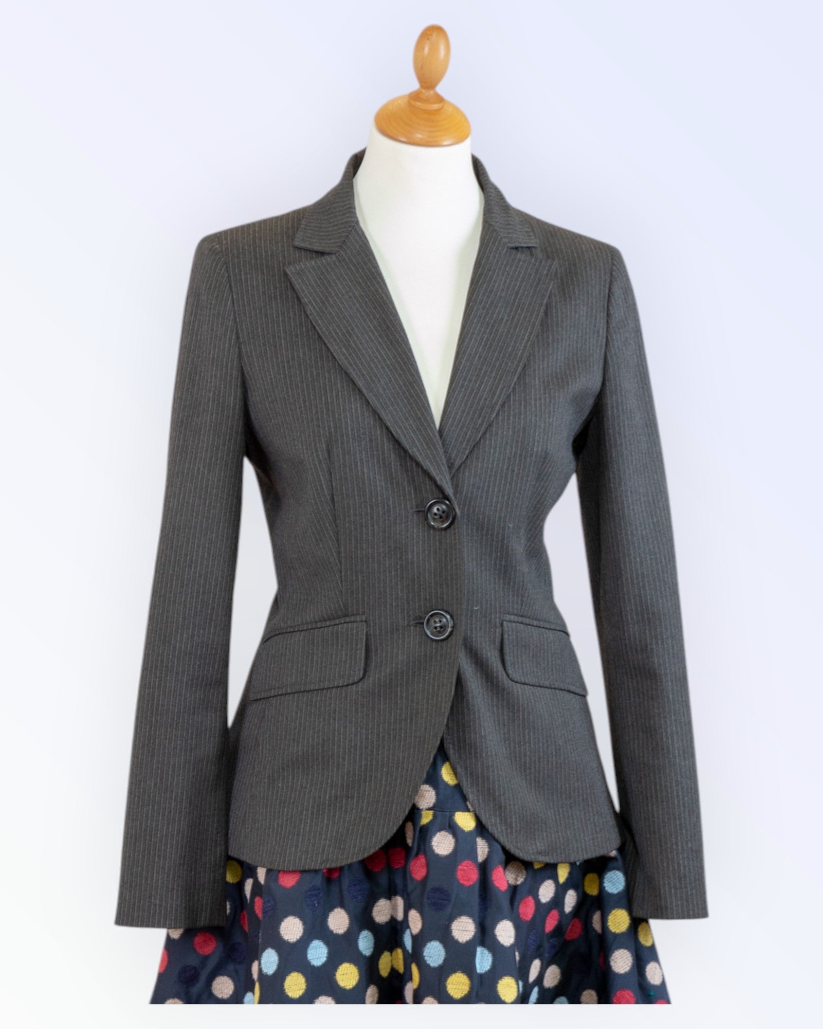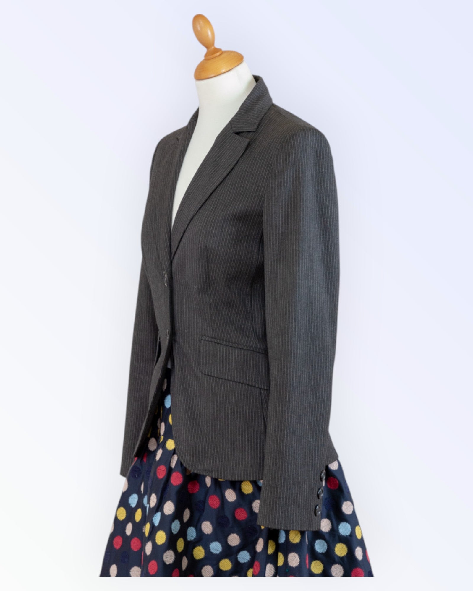 - Single-breasted button-front closure