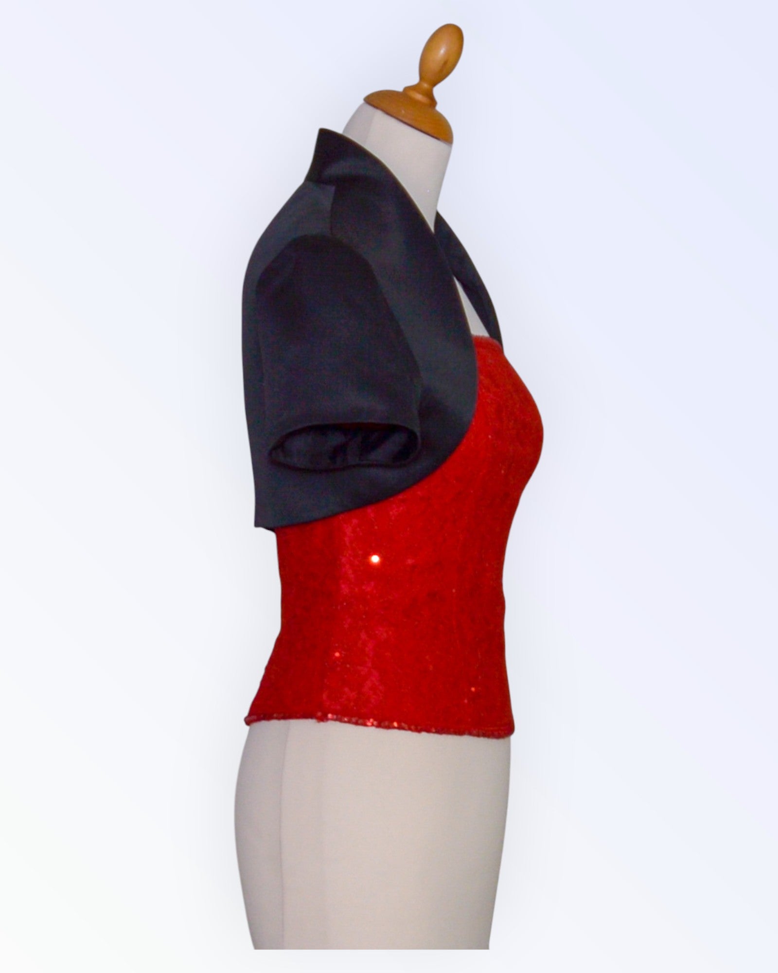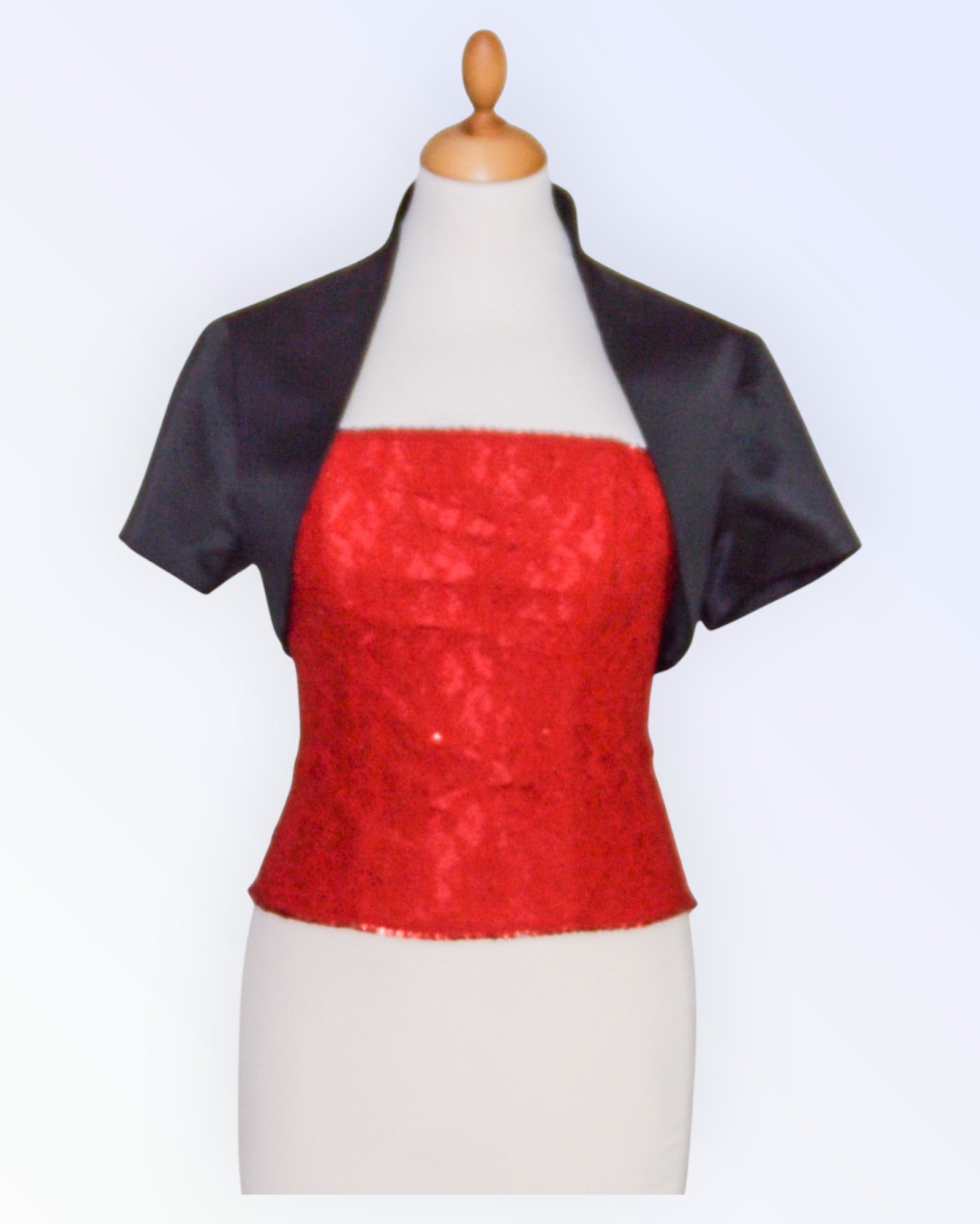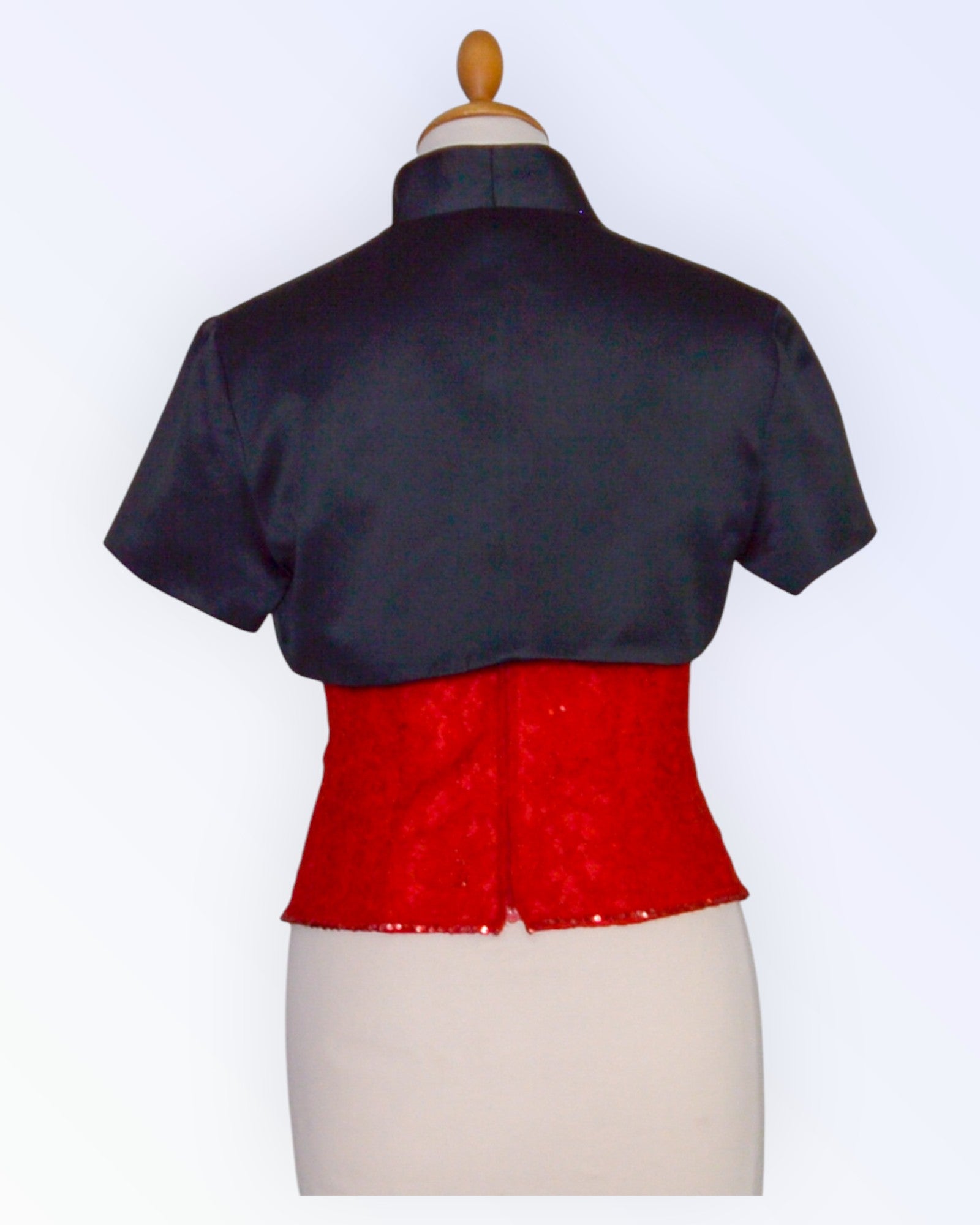 Festive black satin bolero.