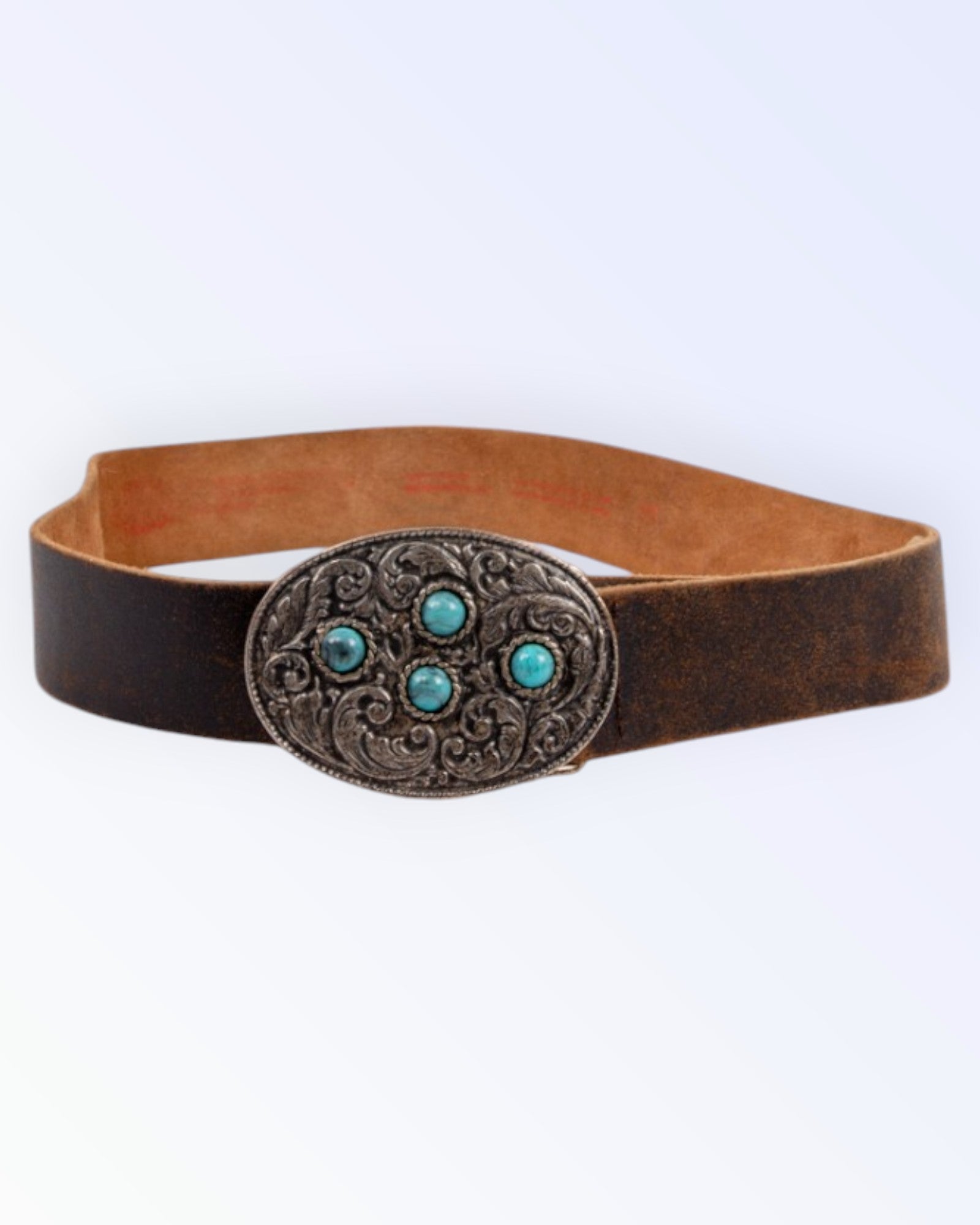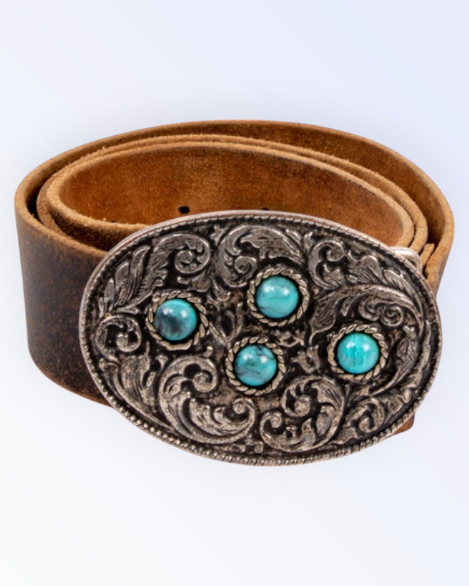 - oval silver (490) buckle, decorated with turquoises and plant ornaments