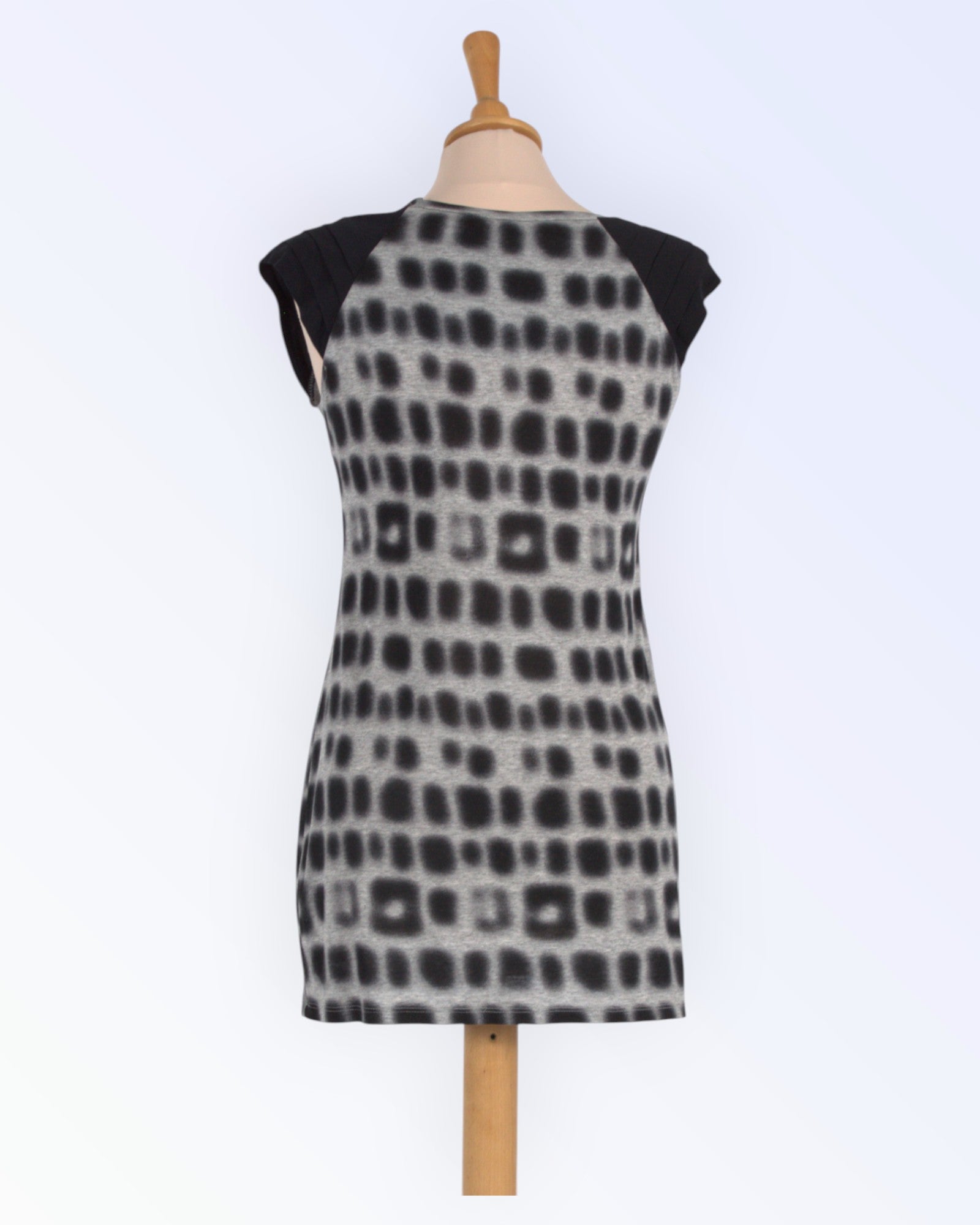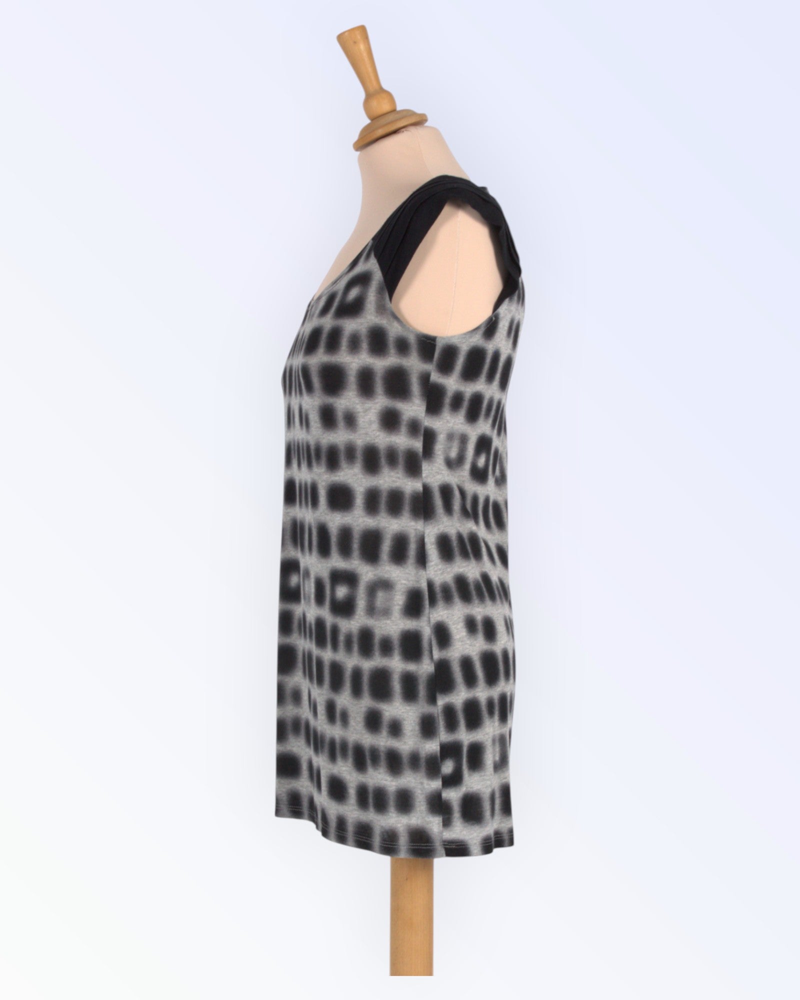 Patterned longer knit top.