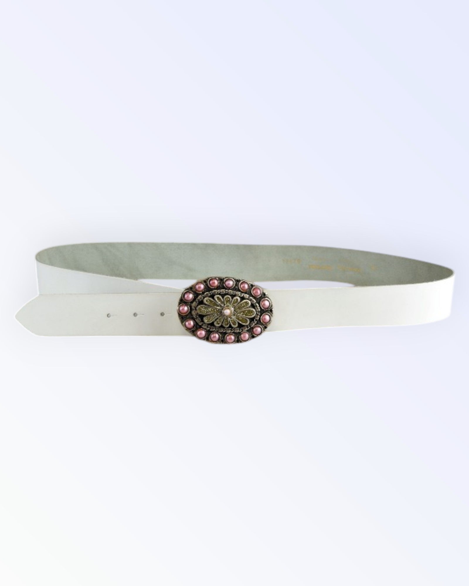 - oval silver clasp, decorated with pink pearls and plant ornaments