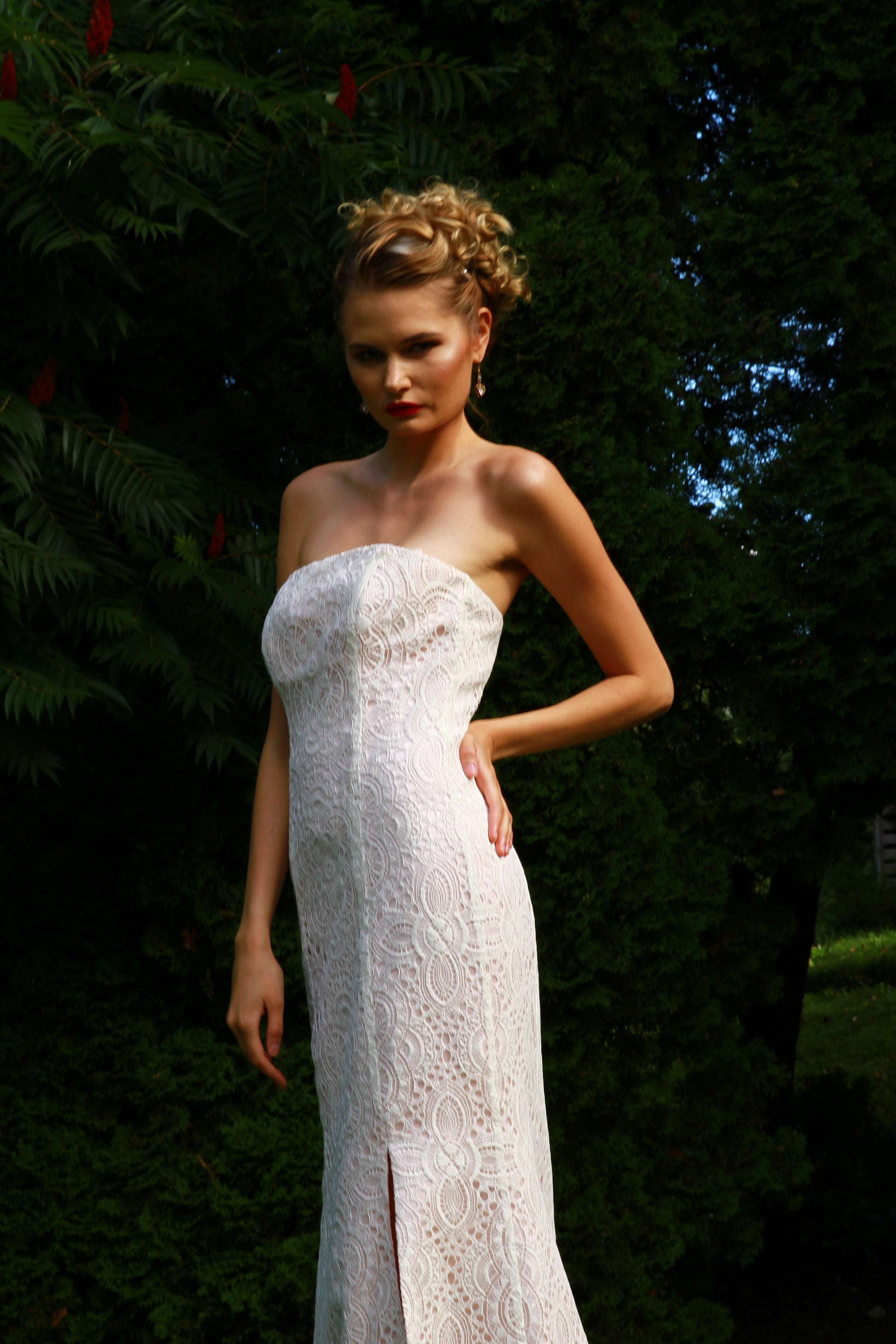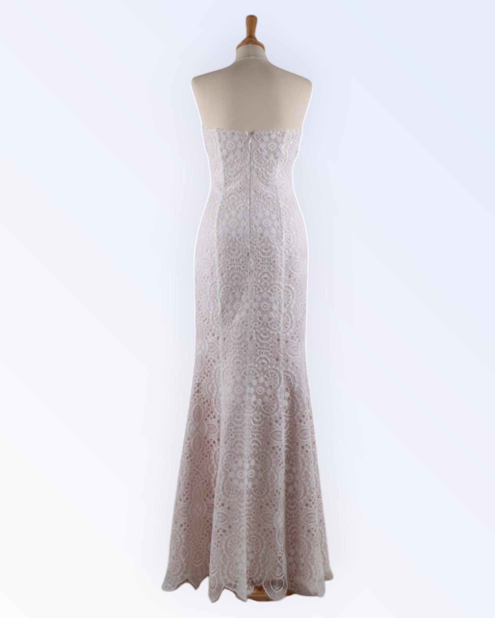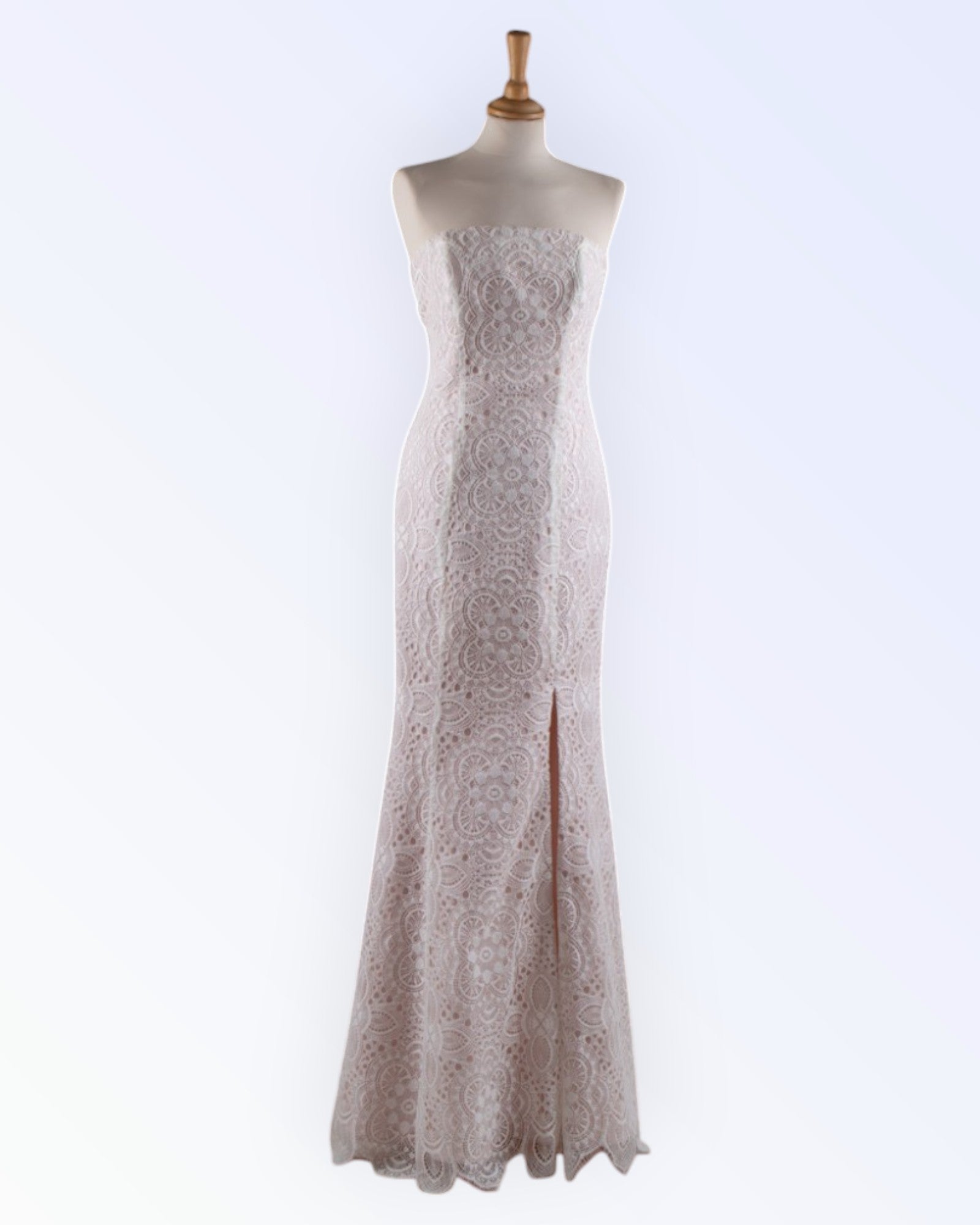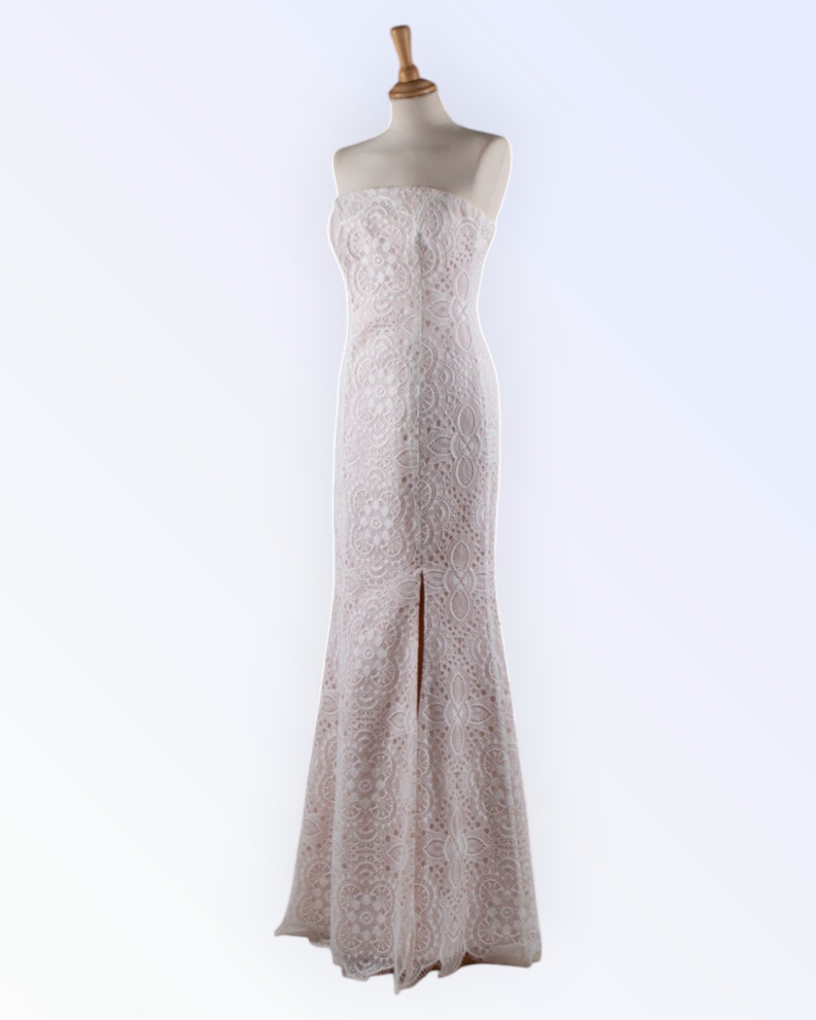 Long dress made of natural white lace with a powder pink lining.