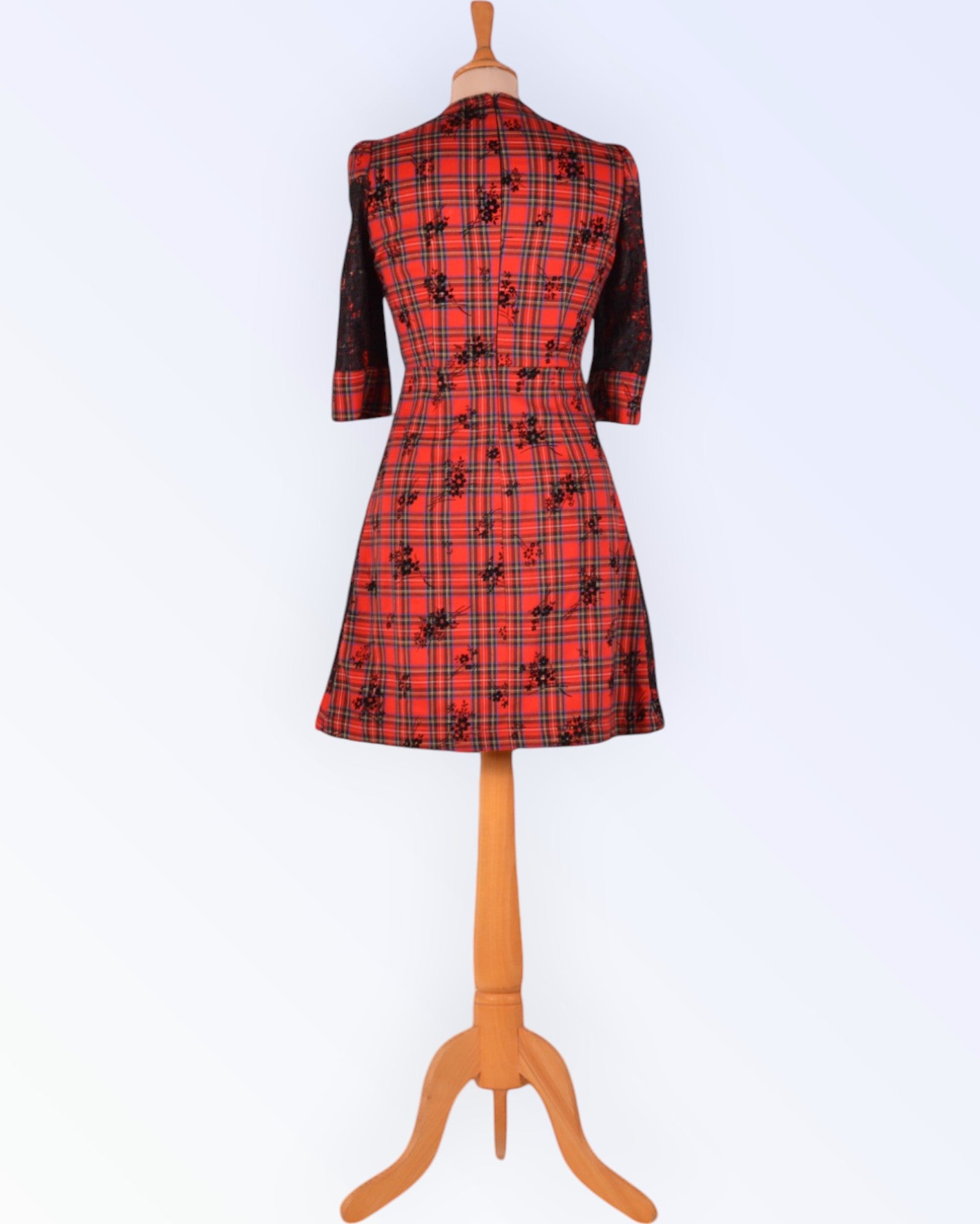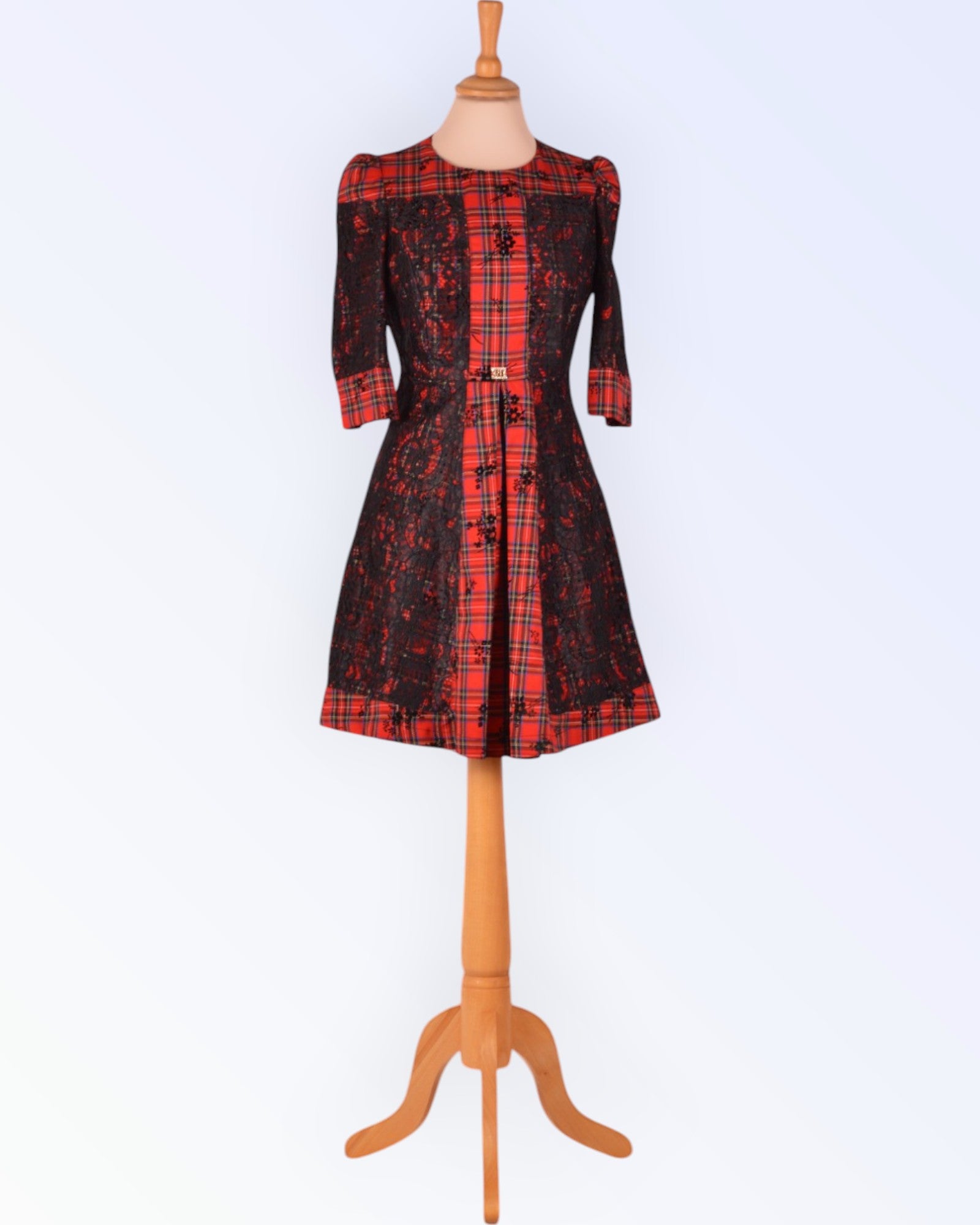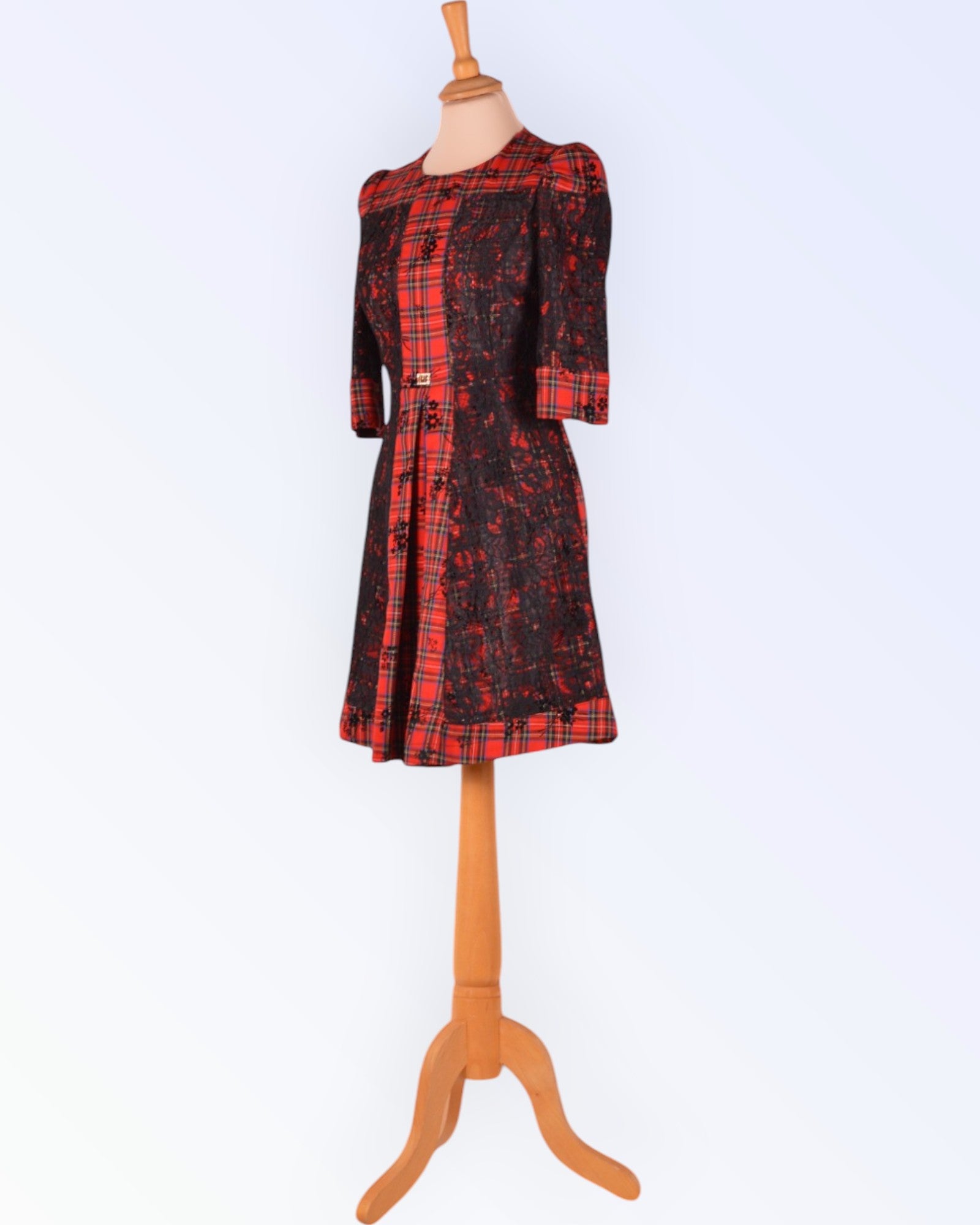 Roberta Biagi tartan dress. The front and sleeves of the dress are covered with dark blue lace.