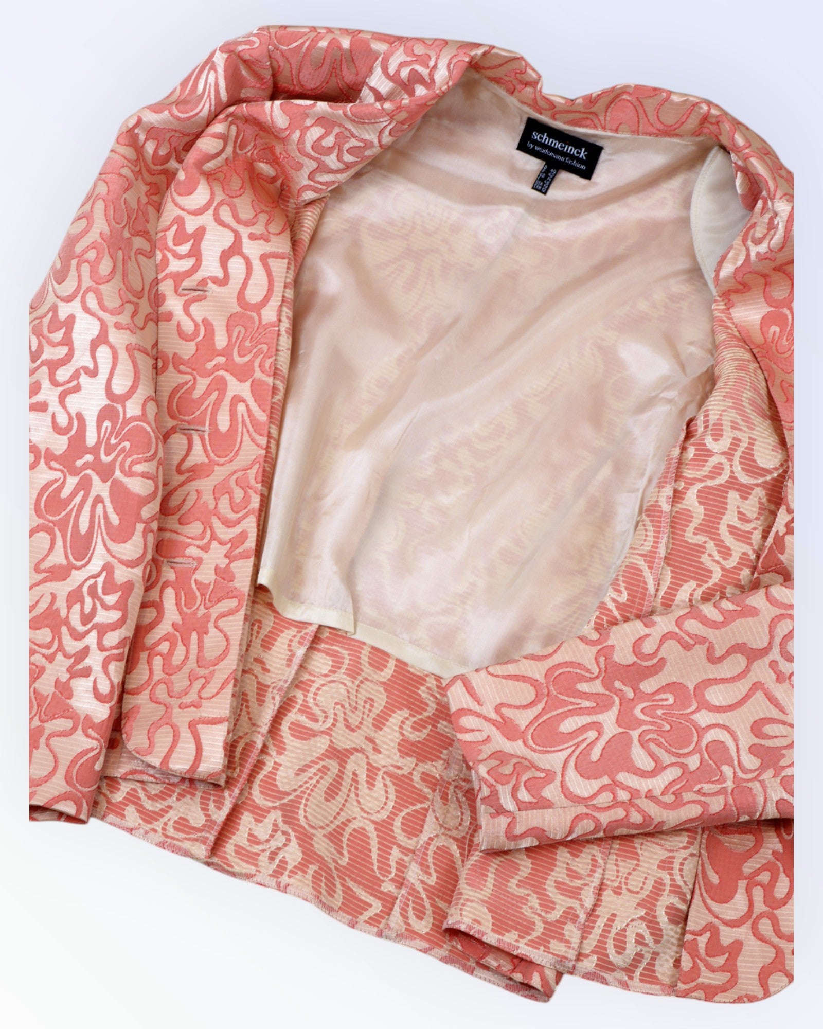 Summer suit jacket with a coral pink pattern. Branded product in very good condition, hardly used. A good addition to your summer wardrobe.