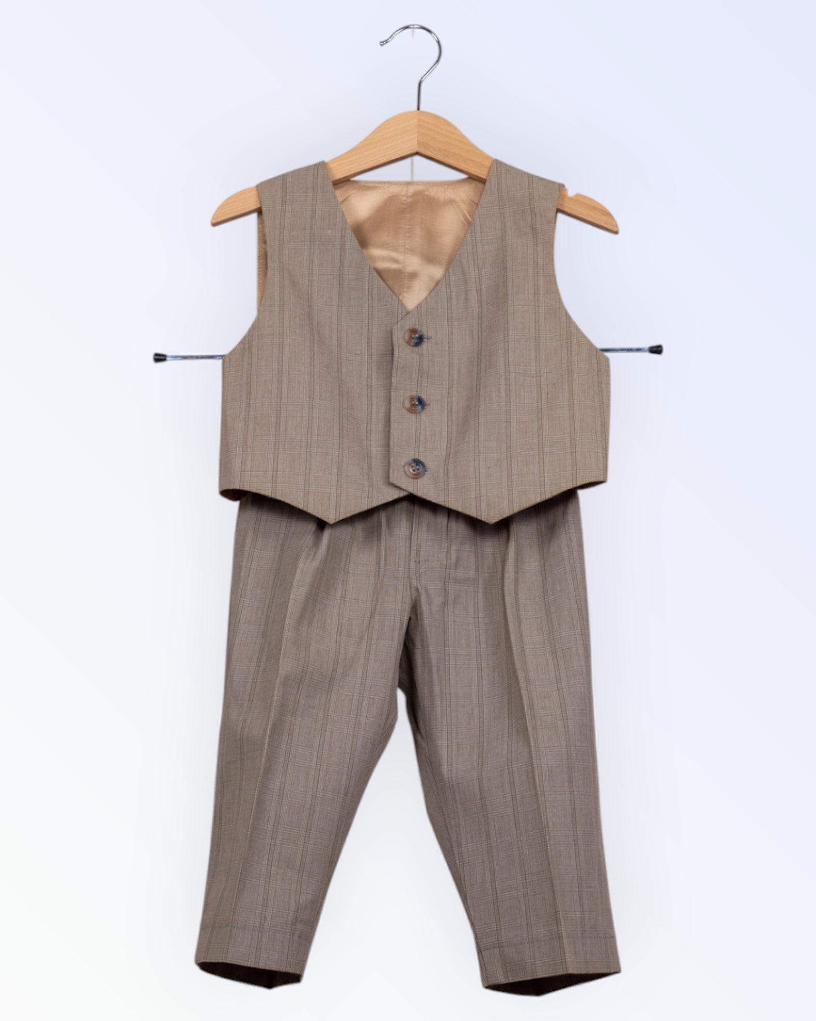Toddler's festive outfit. The set includes a vest, trousers and a hat.