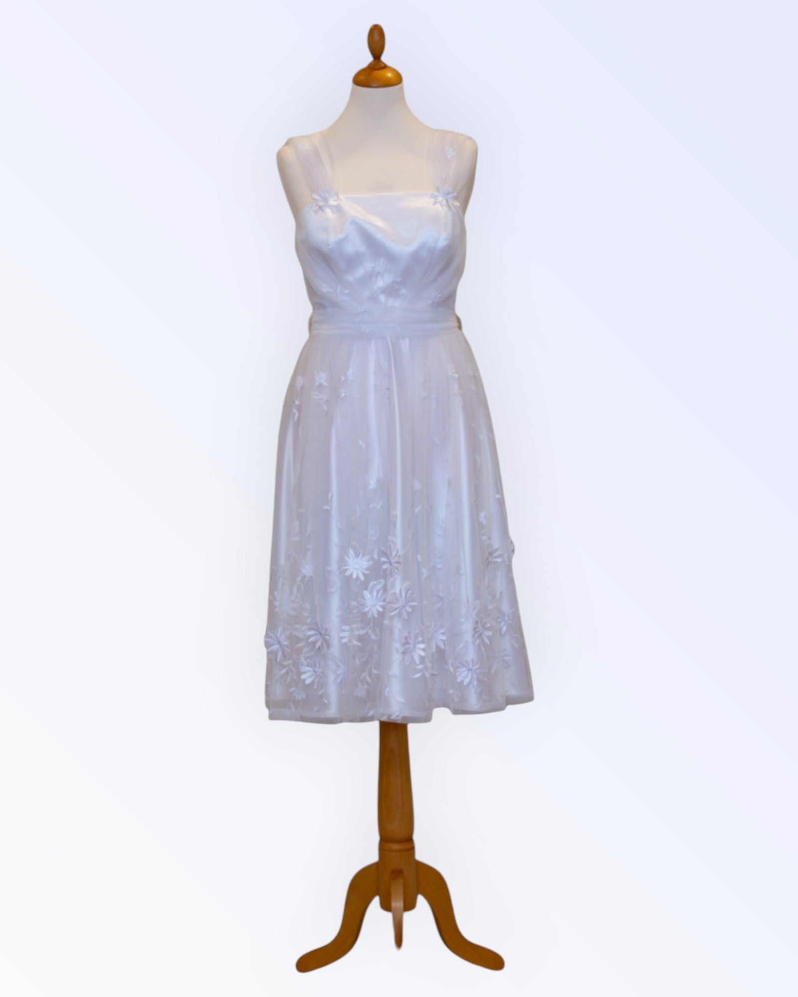 Little white dress made of tulle with 3D embroidery.