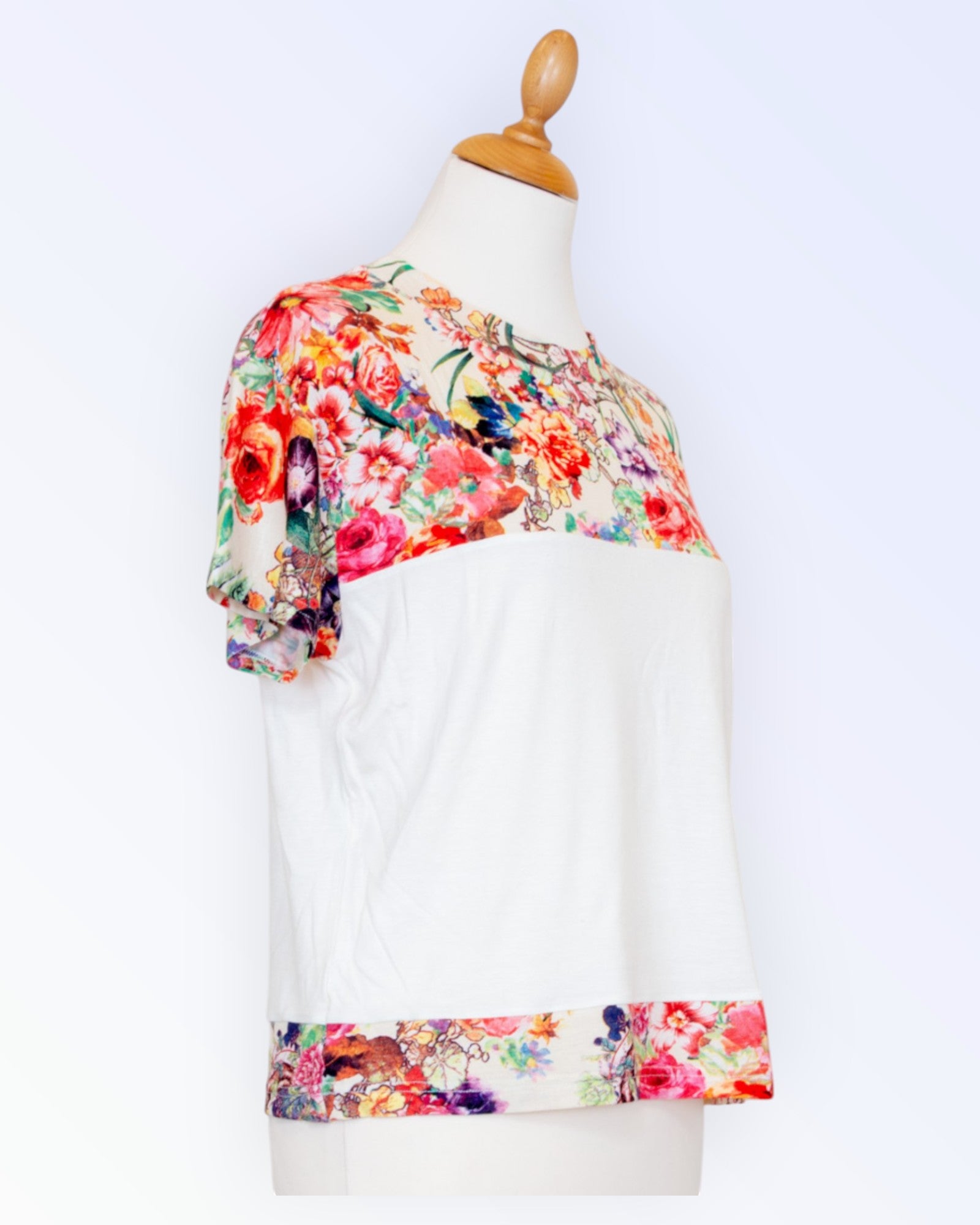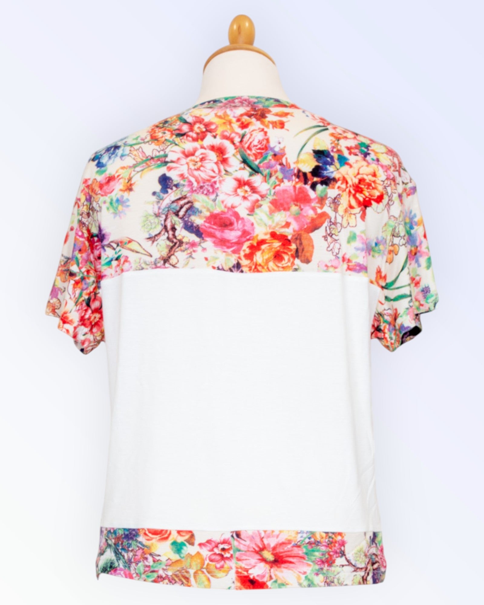 - cream viscose; yoke and sleeves in multi-colored viscose