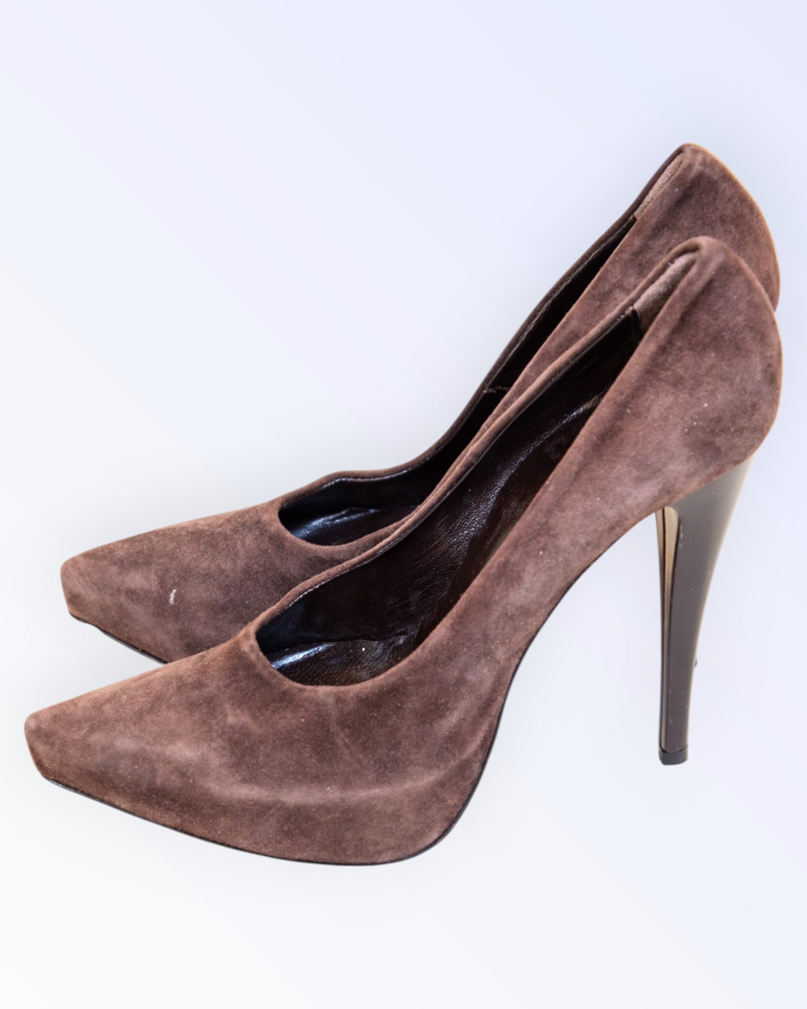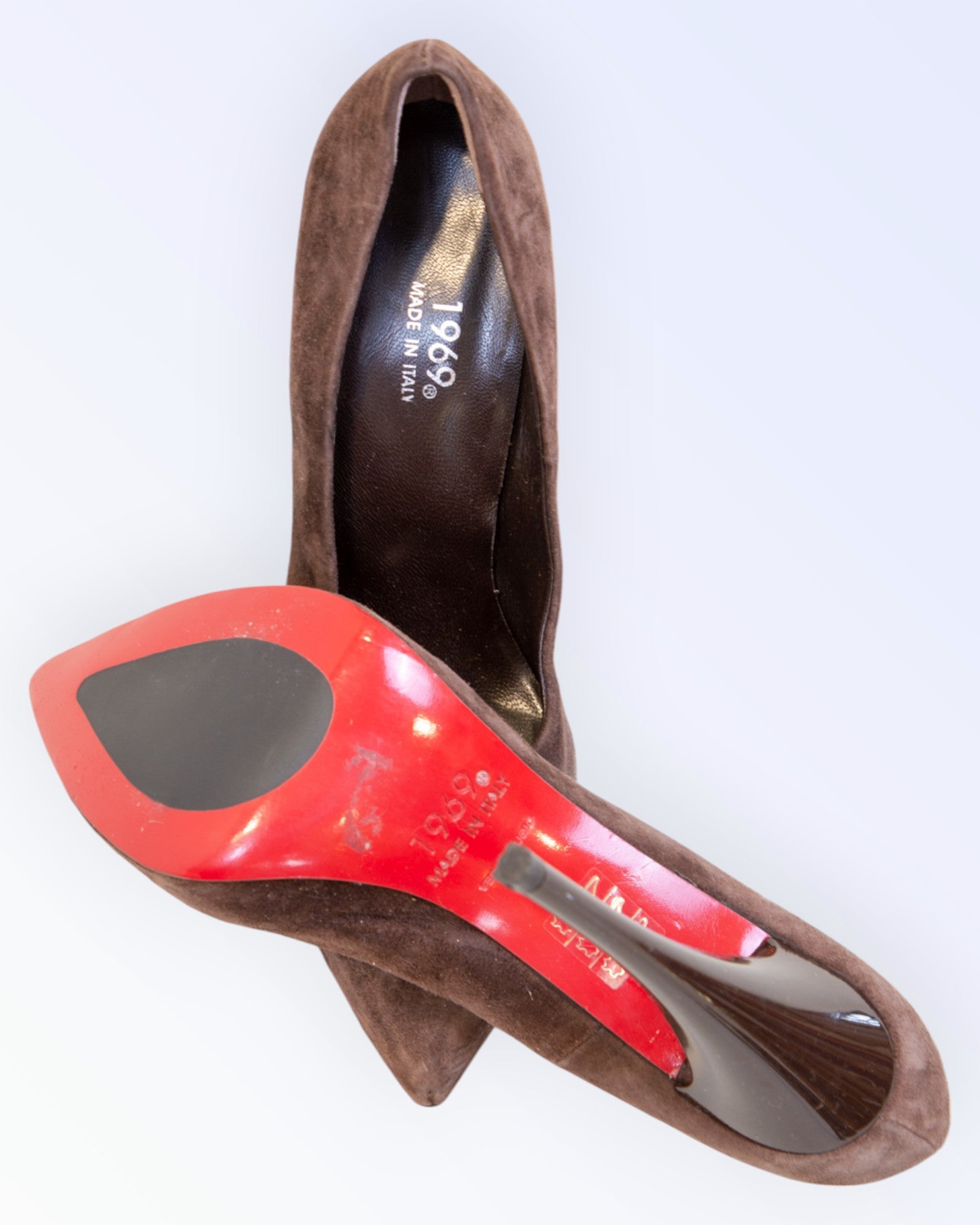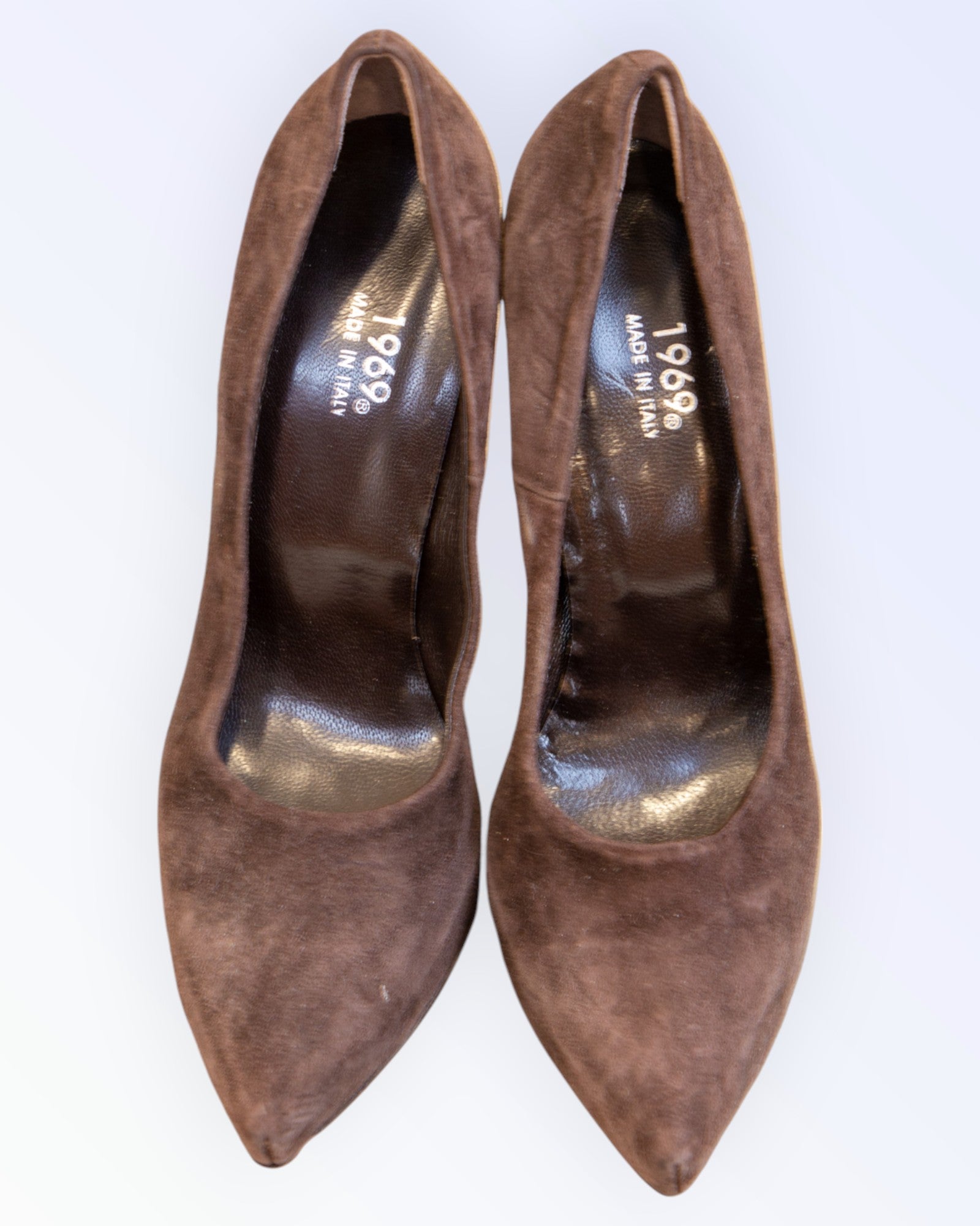 1969 eksklusiivinen ruskea mokkanahkainen platform-kengät.