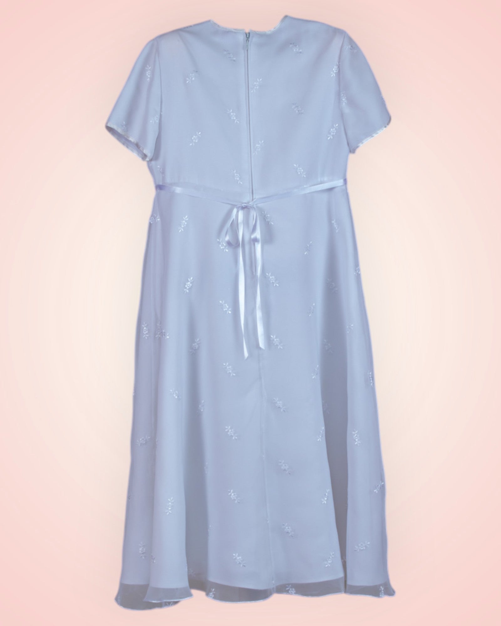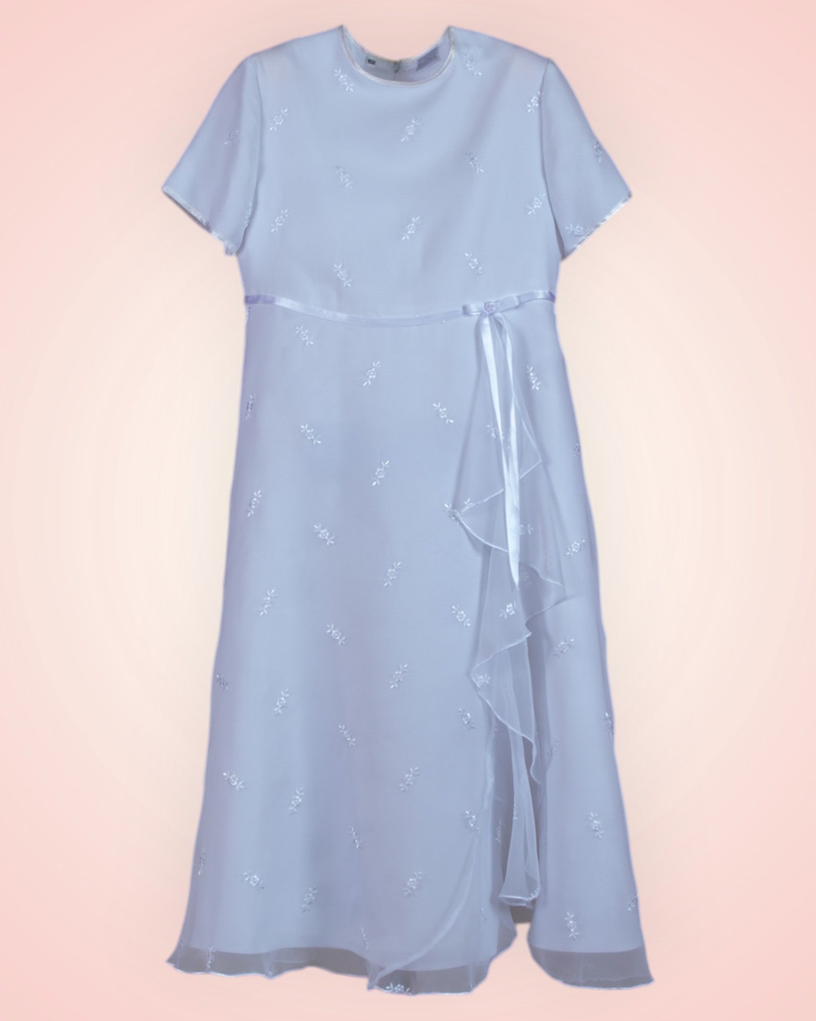 Kirjailtu sifonkijuhlamekko epäsymmetrisellä helmalla