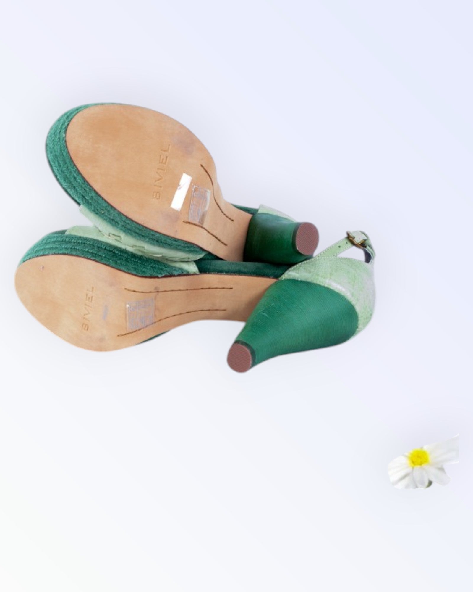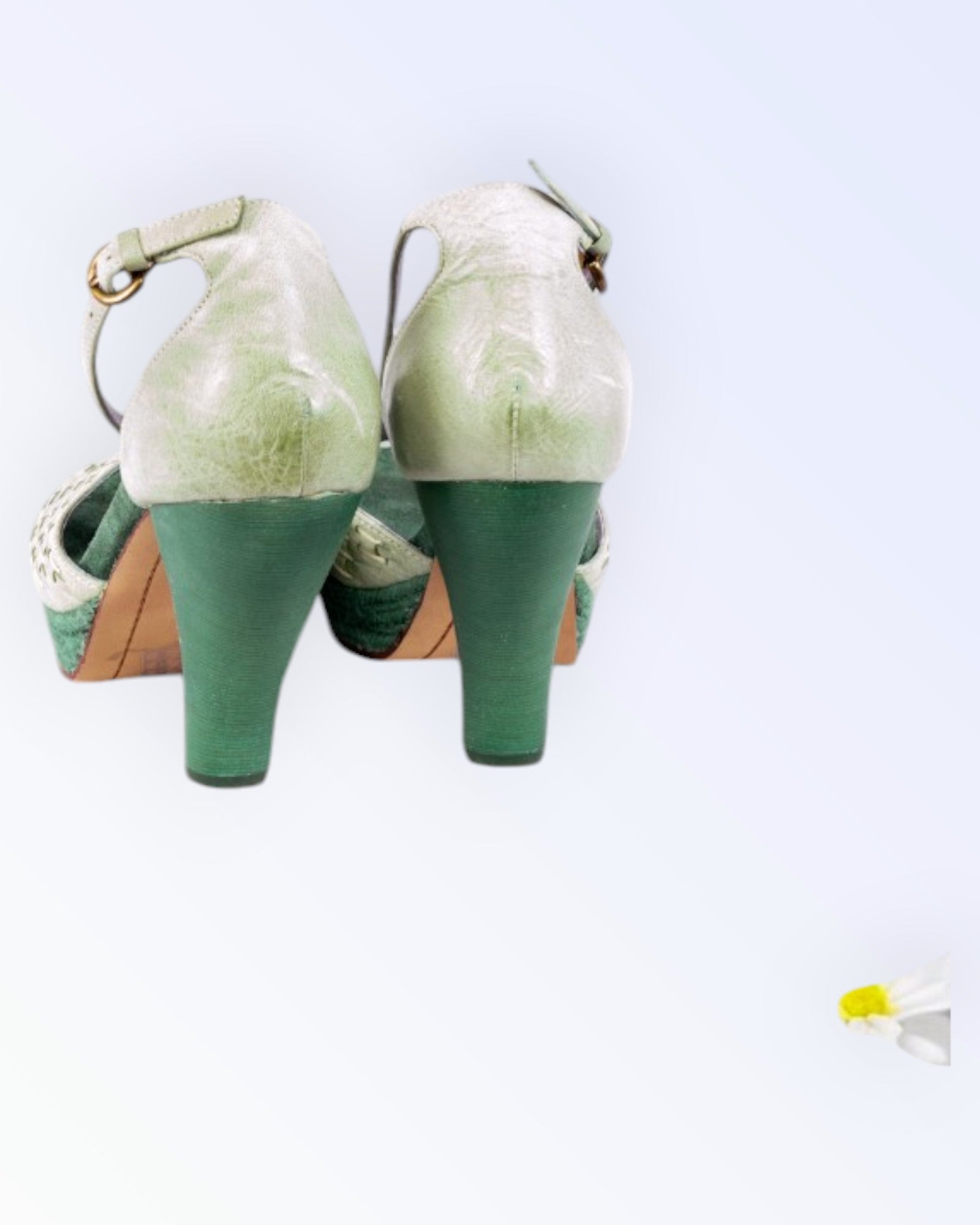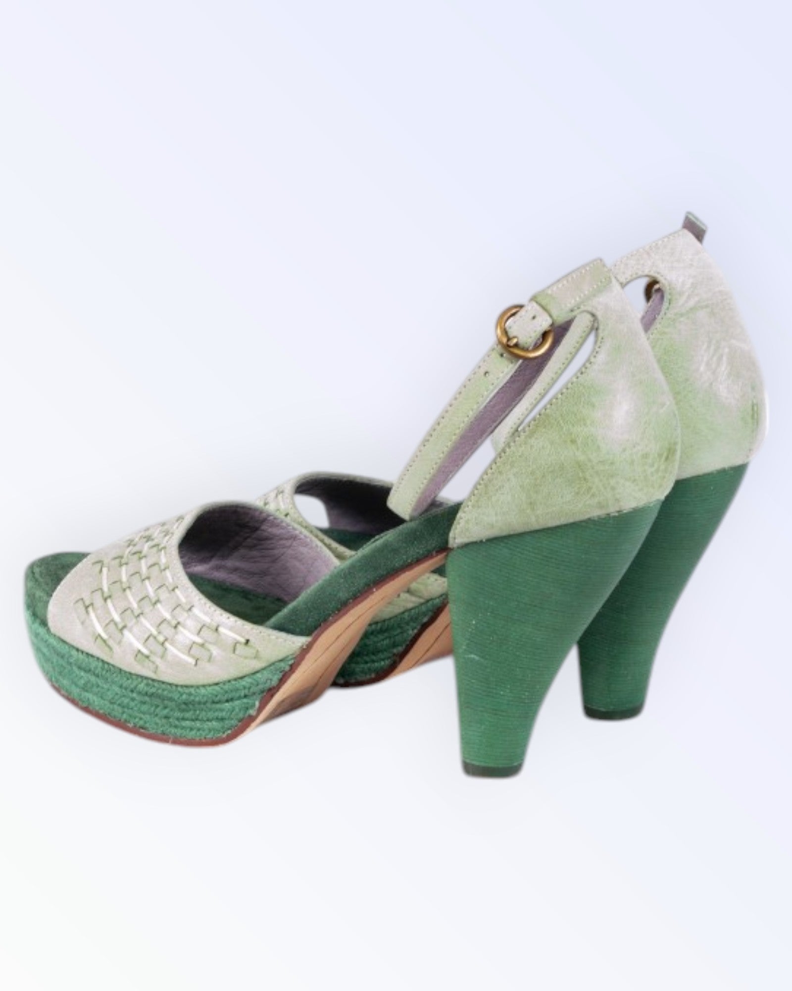 Kengät on valmistettu kahdesta vihreän sävyisestä luonnonnahasta.