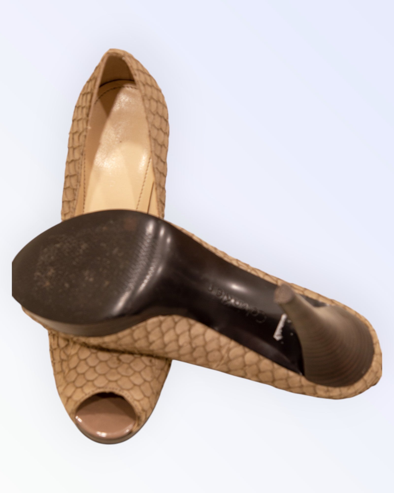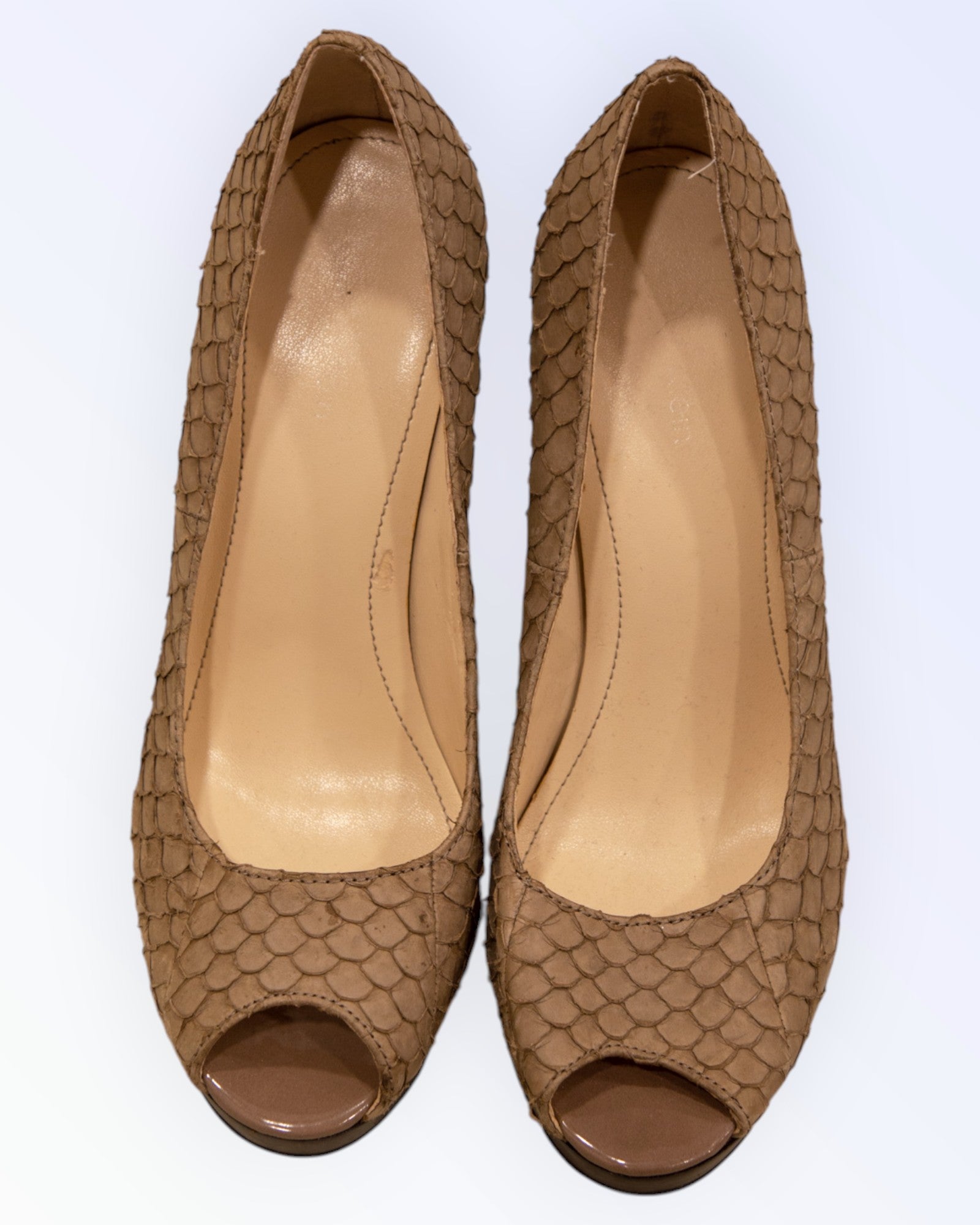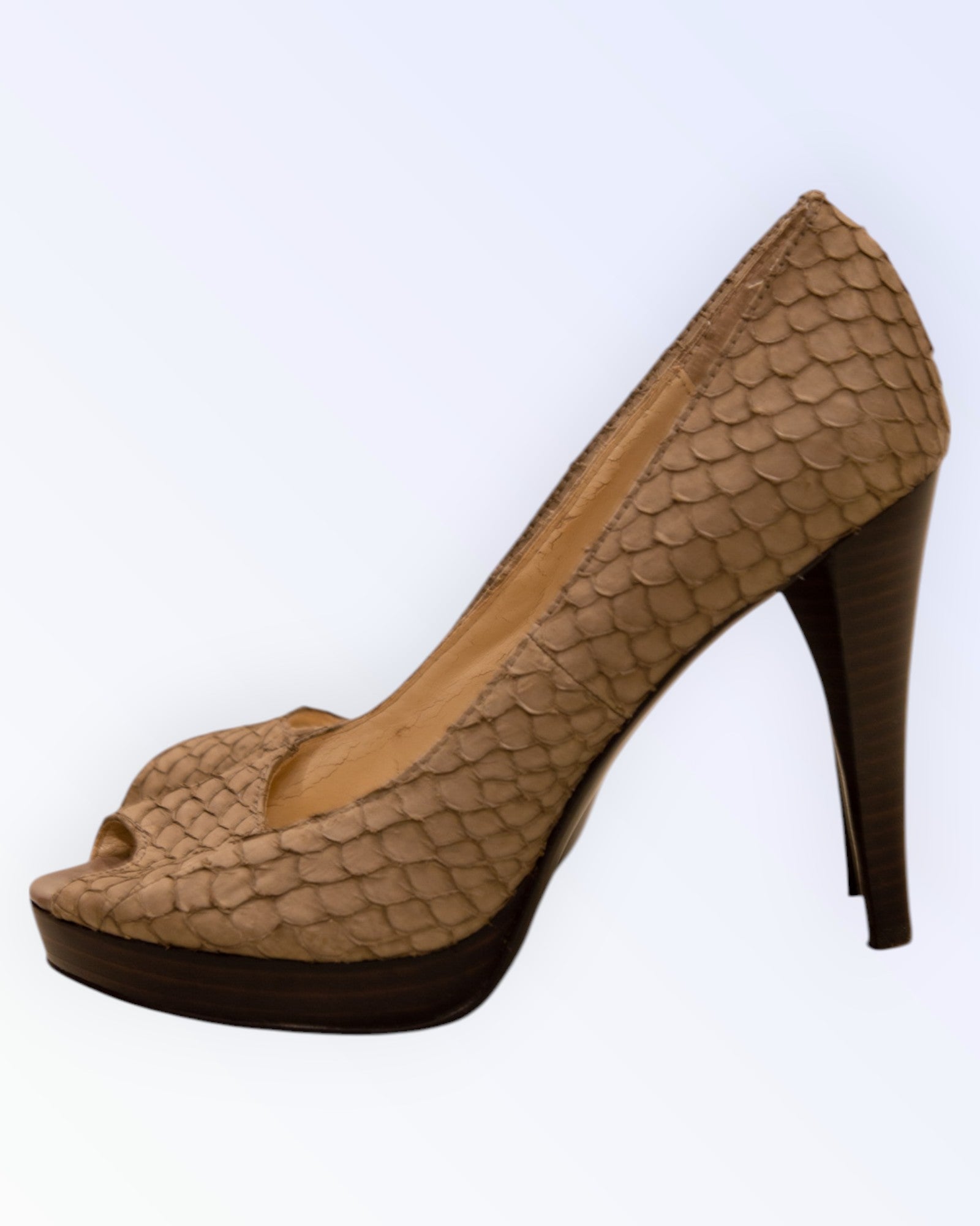 Beigenväriset avokärkiset korkokengät platform-kengissä.