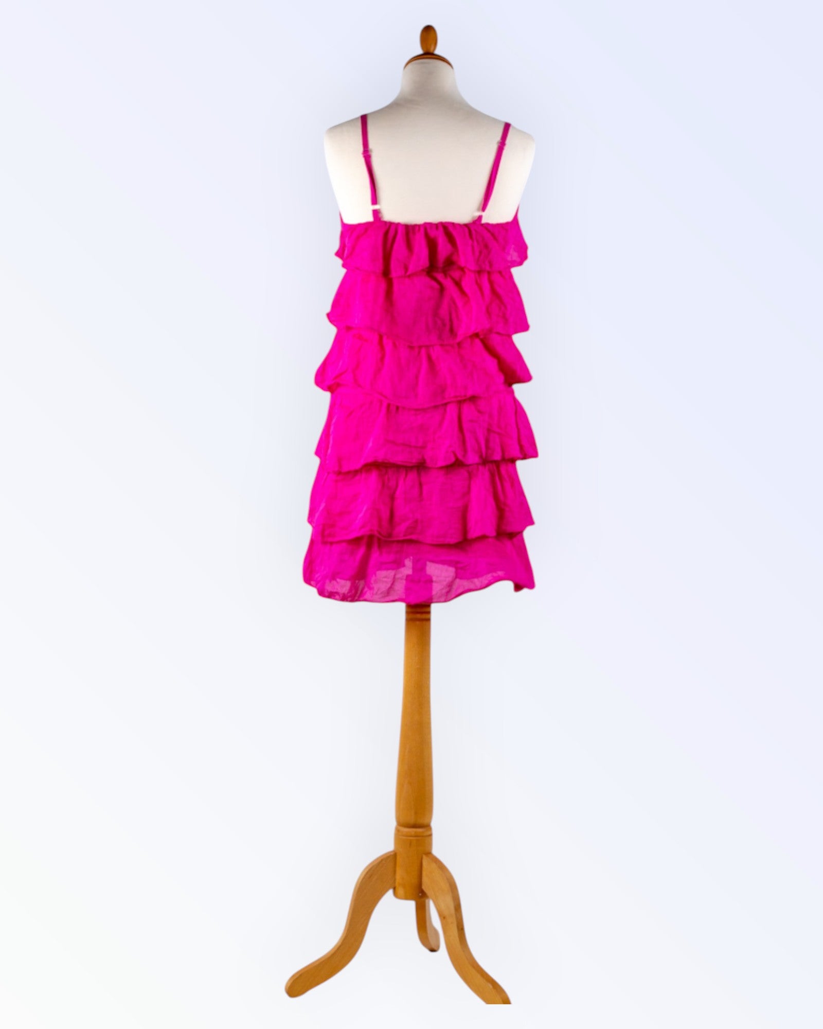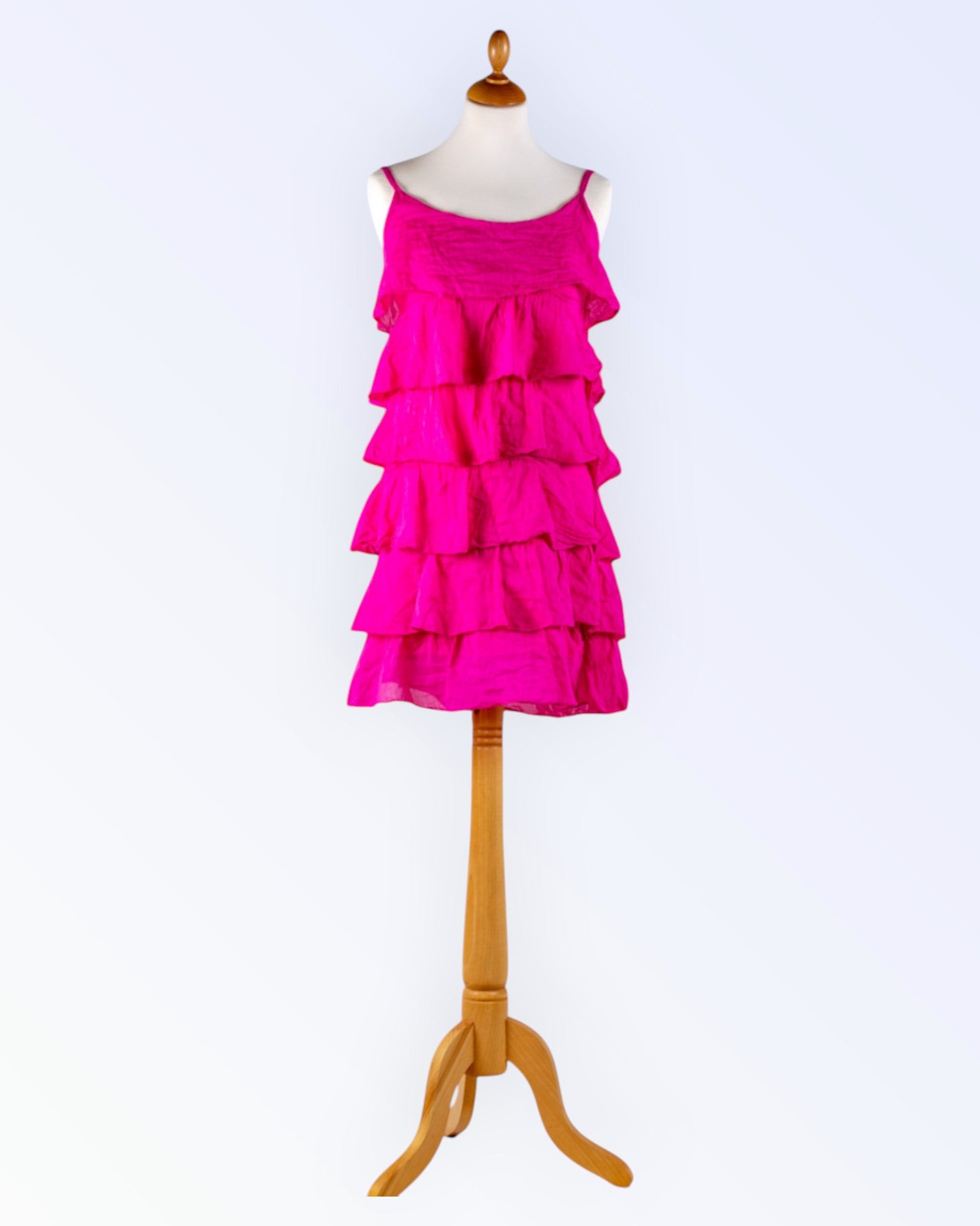 Valmistettu Italiassa, kirkkaanpinkki röyhelöinen kesämekko