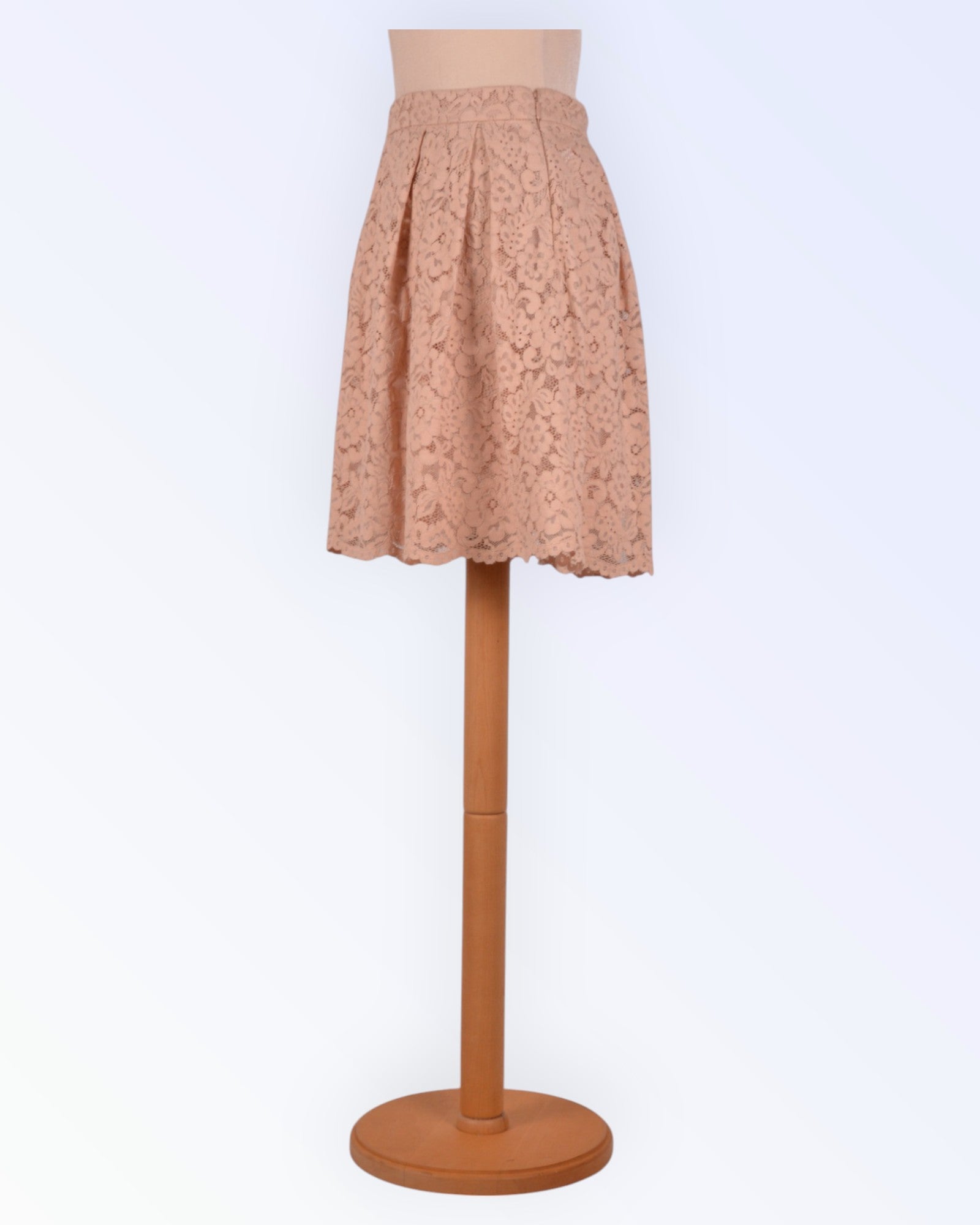 H&M pinkki pitsi lyhyt juhlahame, jossa on laskostettu vyötärö.