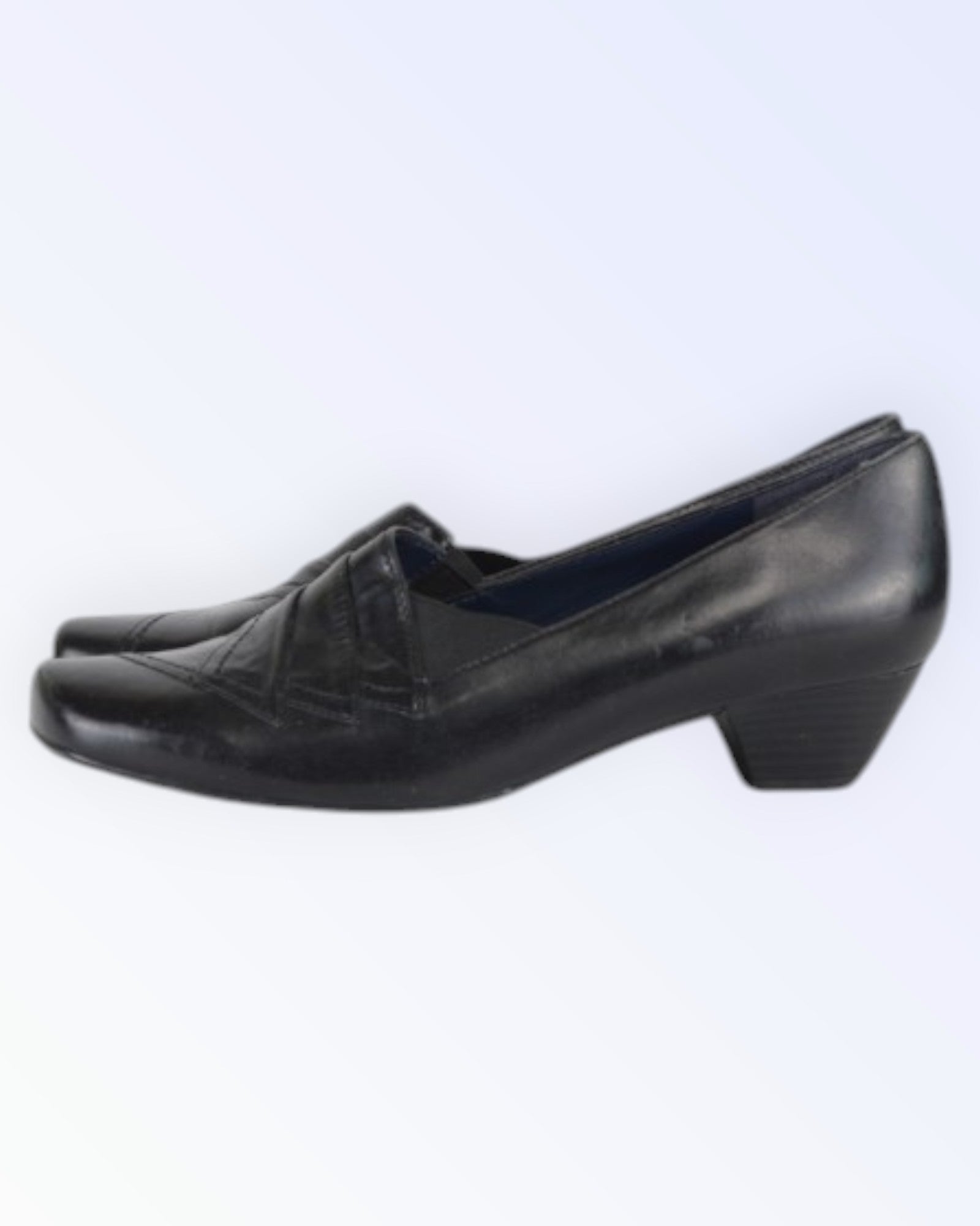 Mustat matalakorkoiset umpinaiset kengät. Sopivat käytettäväksi sekä mekkojen että housujen kanssa.