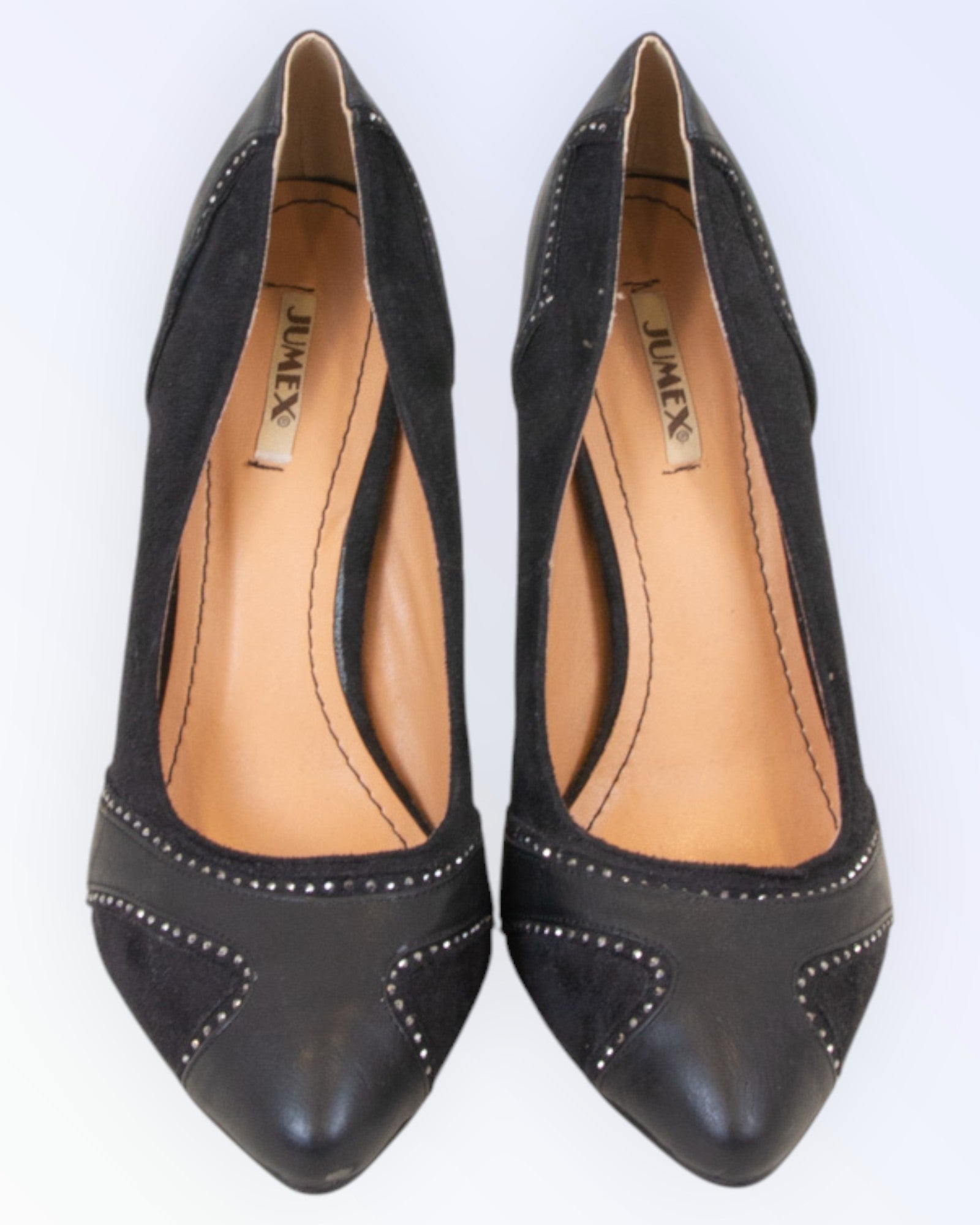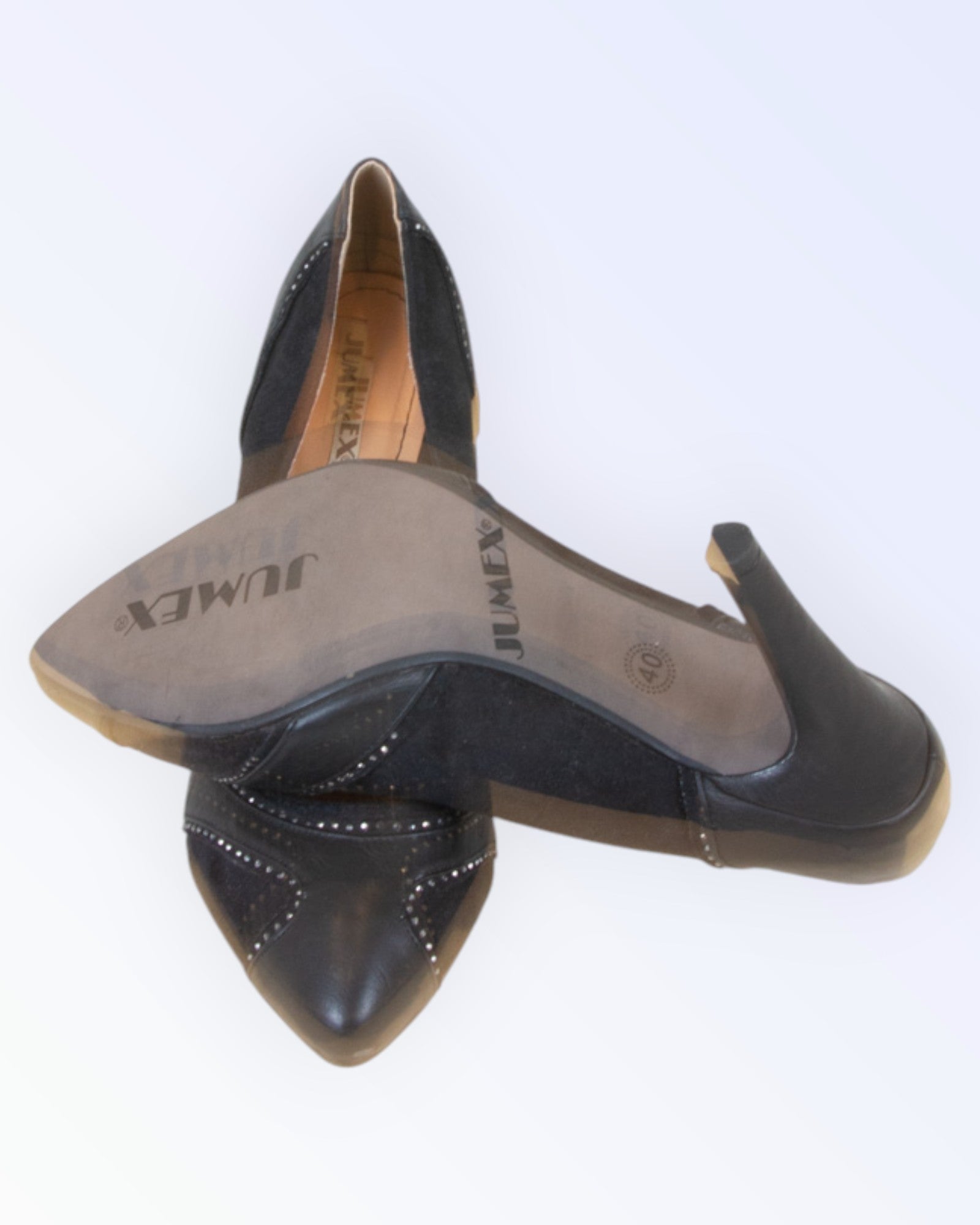 Mustat umpinaiset kengät mantelinmuotoisella kärjellä.