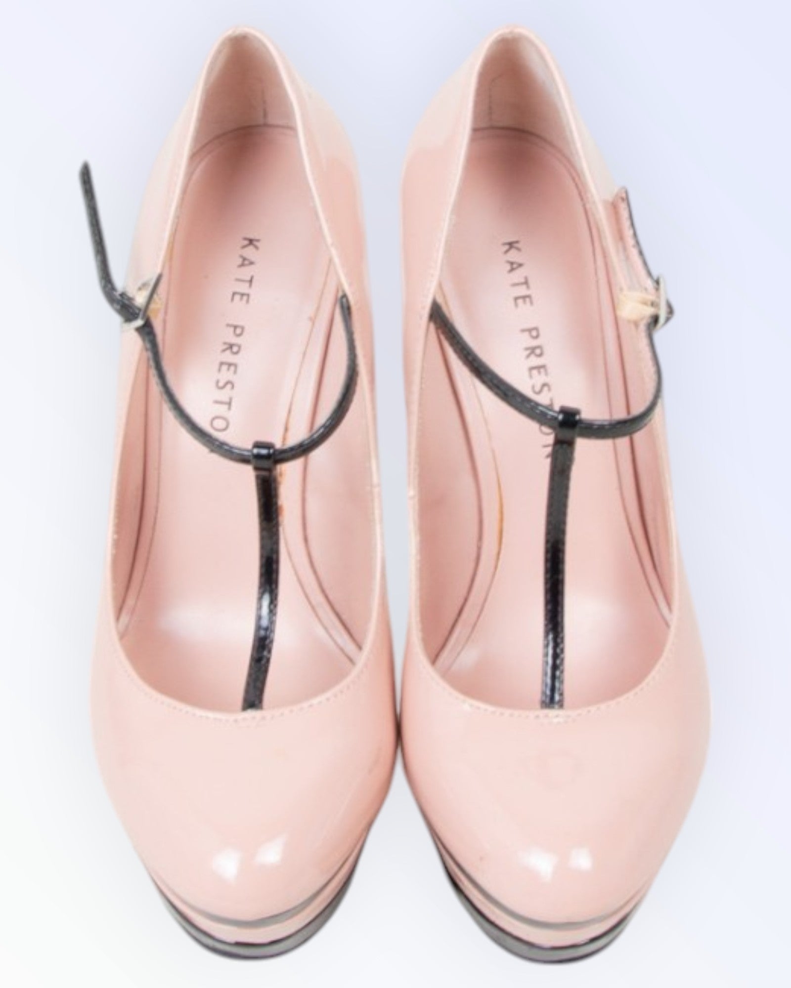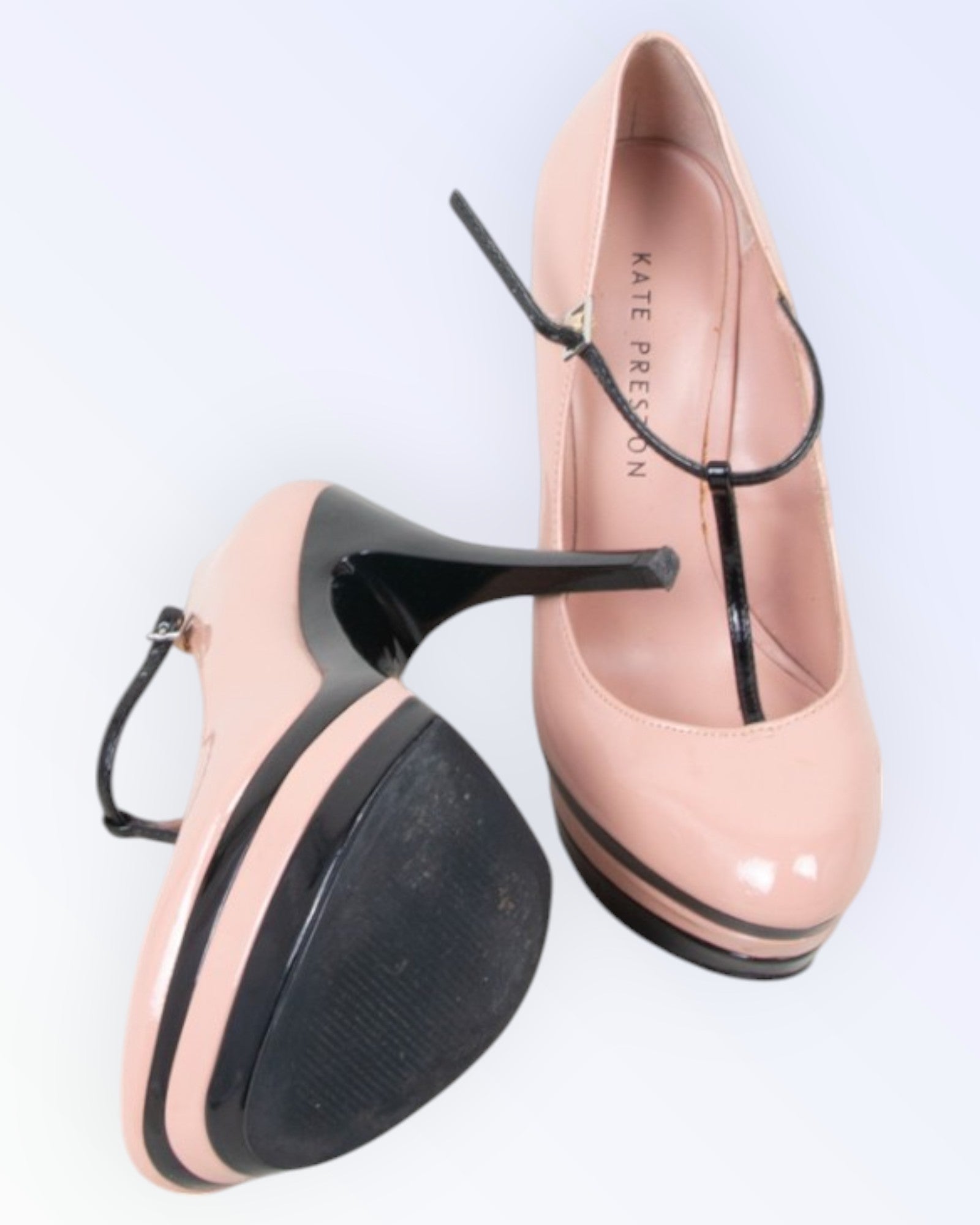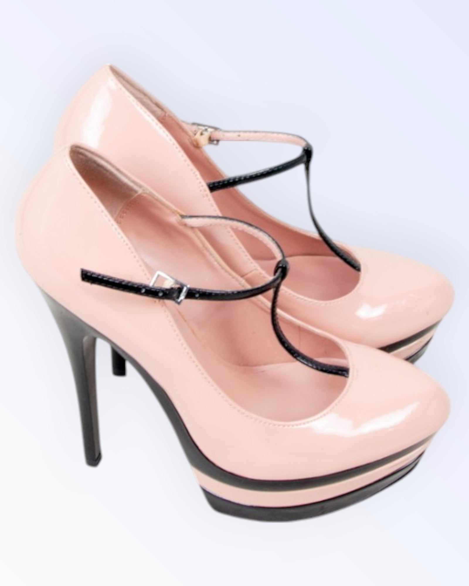 Pinkki-mustat lakkanahkaiset platform-kengät.