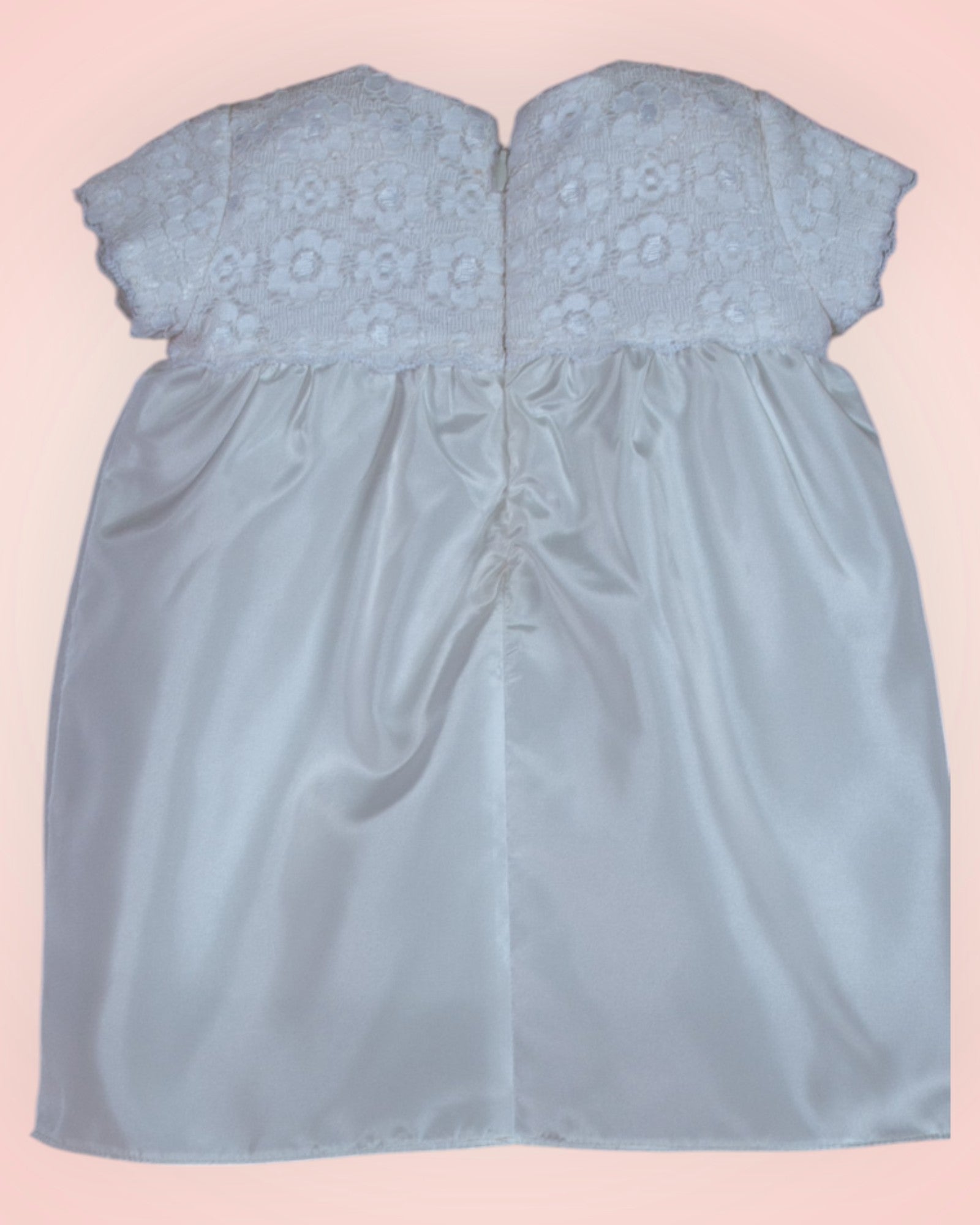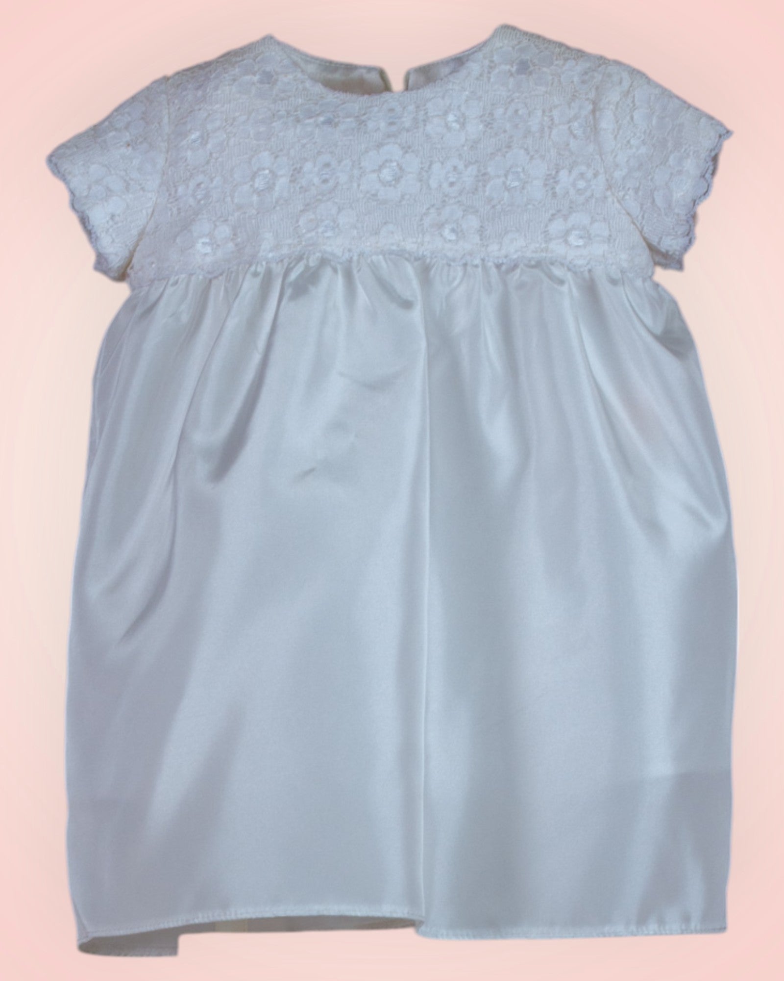 Taftikuvioinen mekko, jossa pitsipäällinen pienille tytöille