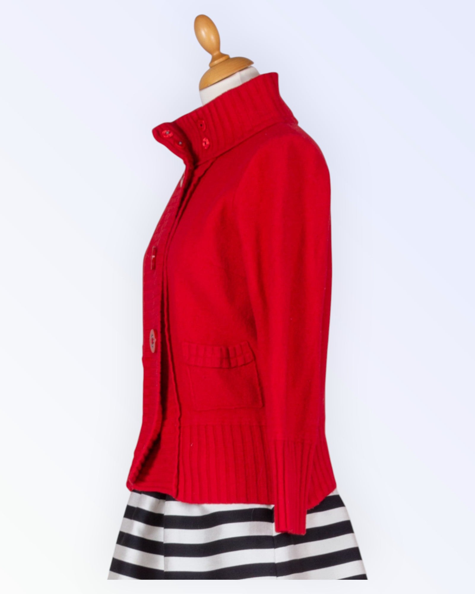 - edessä isot napit, kankaalla päällystetyt neulat kauluksessa