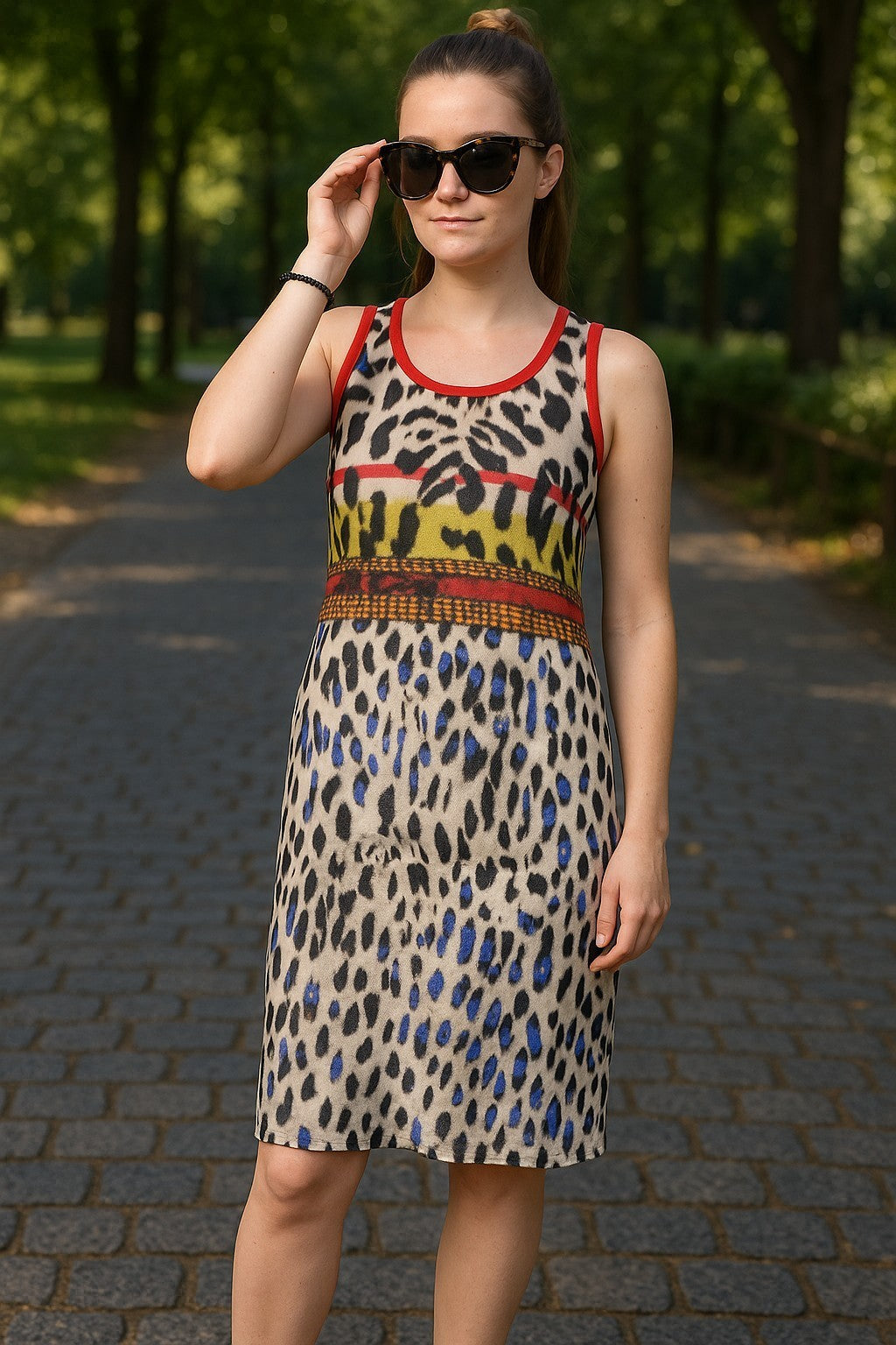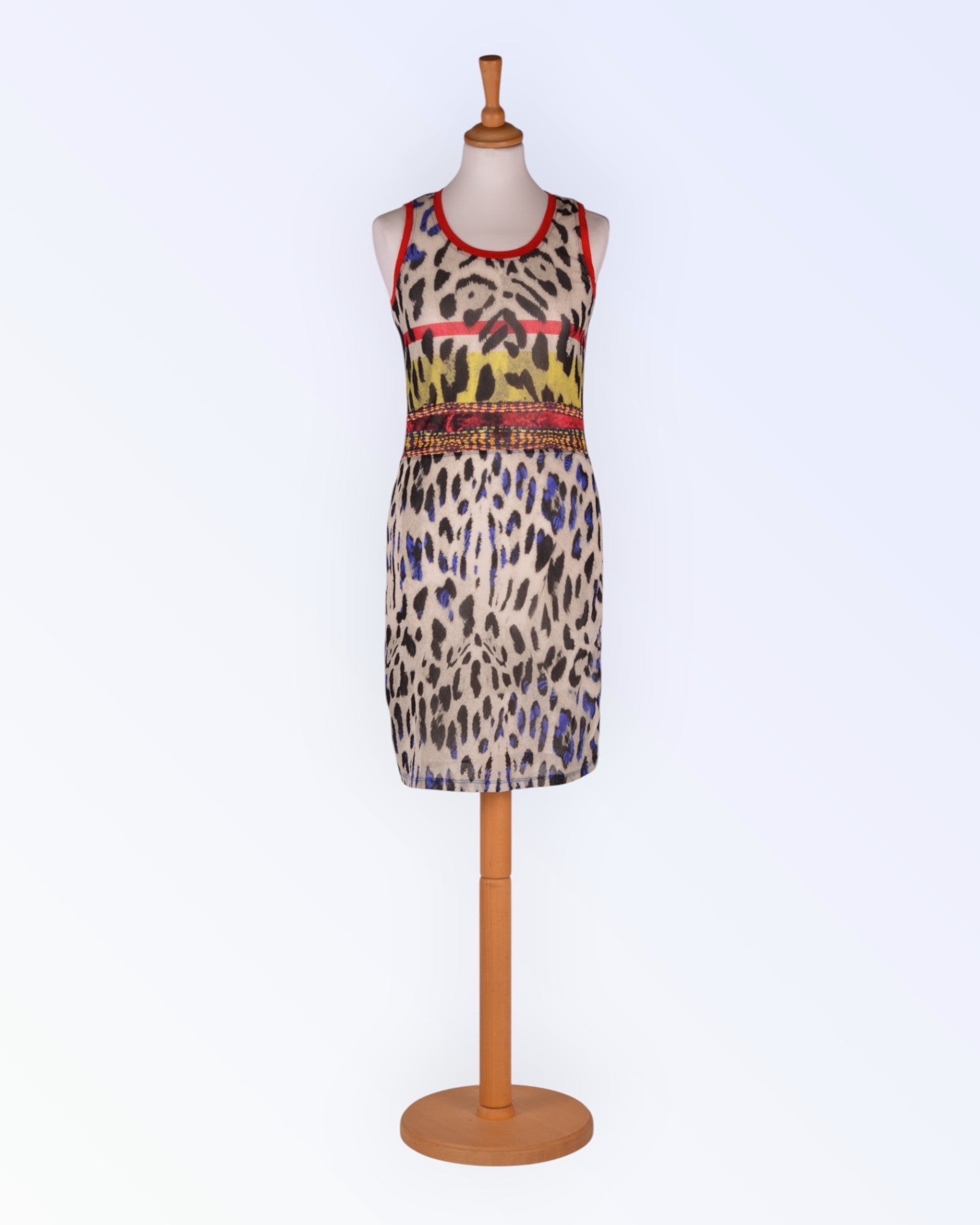 Kesämekko joustavasta, ohuesta verkkoneuleesta. Mekossa on vuori.