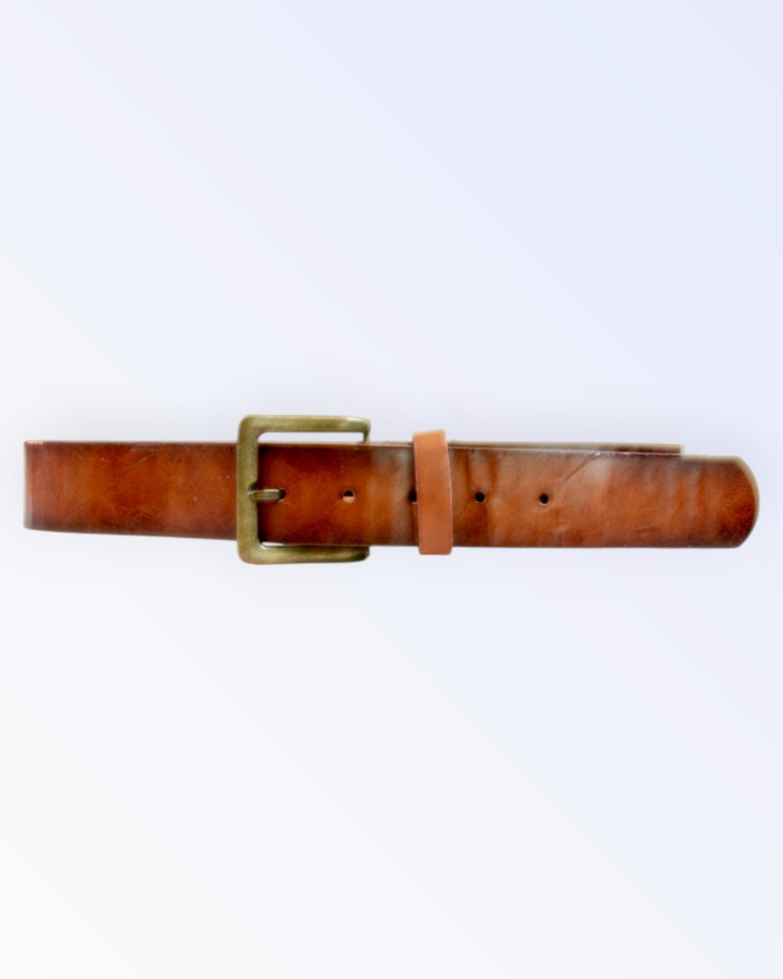 ruskea keinonahkavyö neliönmuotoisella soljella