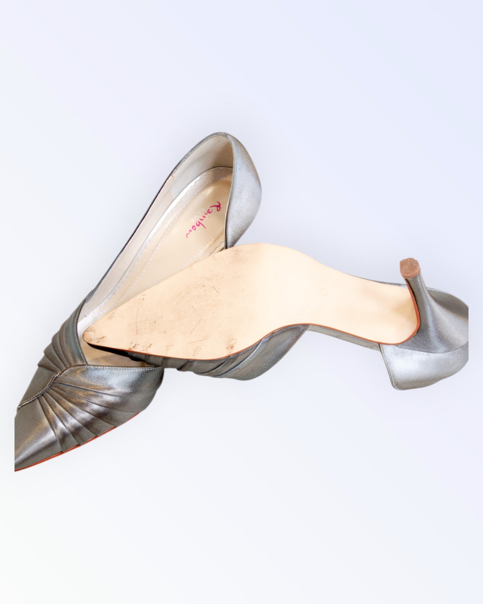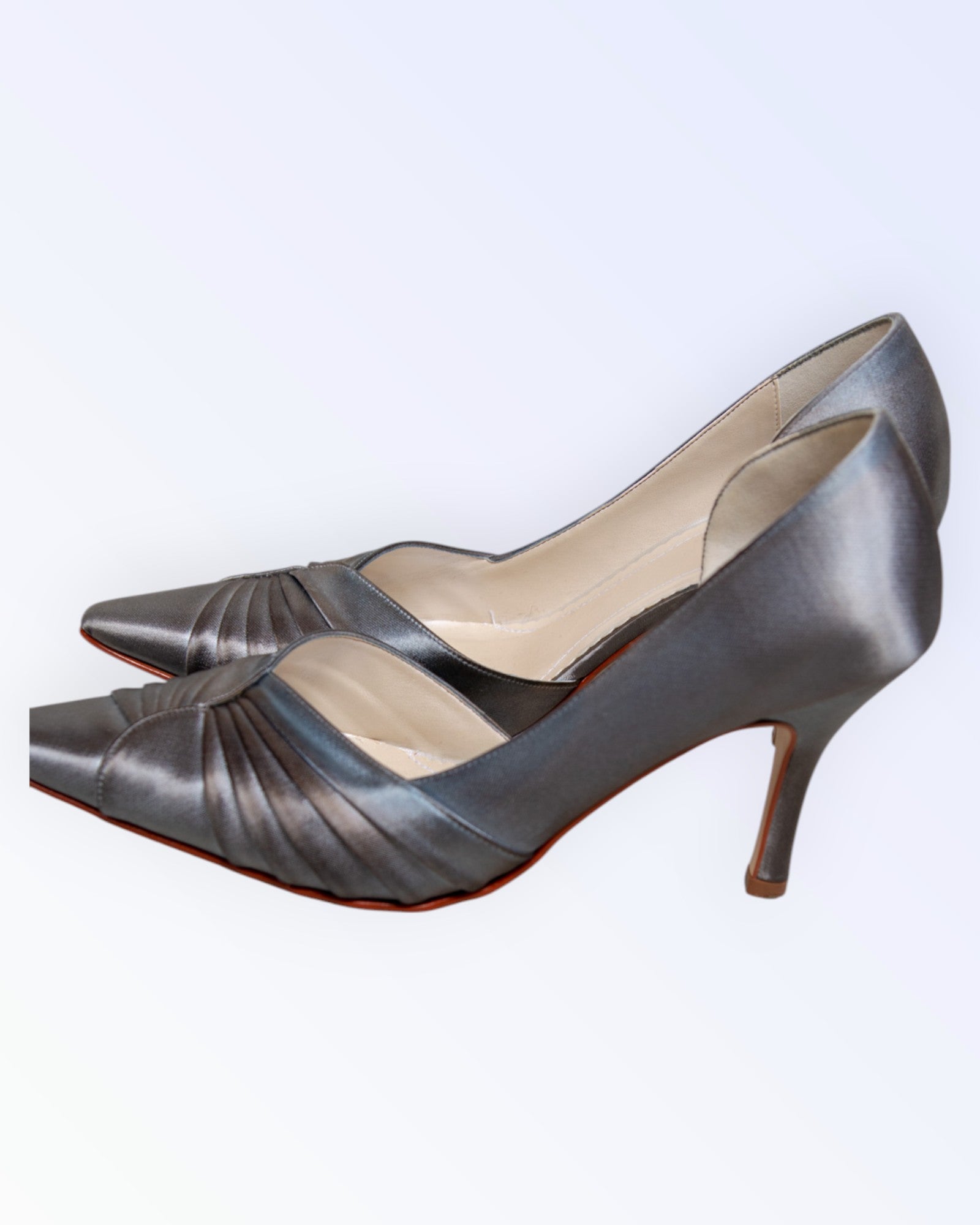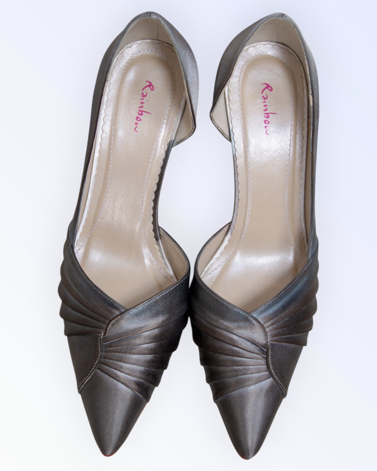 Rainbow harmaaksi värjätty tyylikkäät tekstiilikengät. Kengissä on teräväkärkinen ja drapeerattu muotoilu.