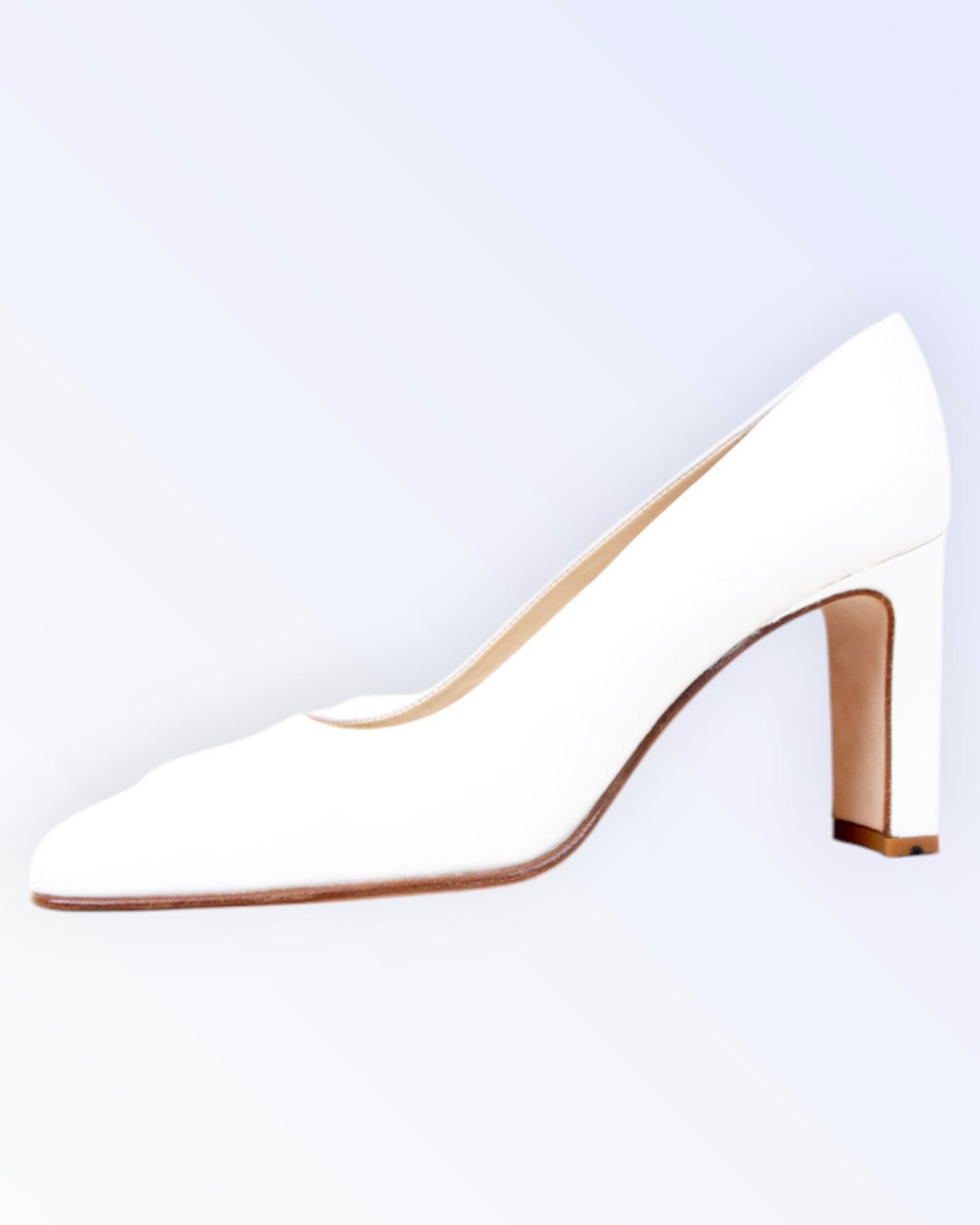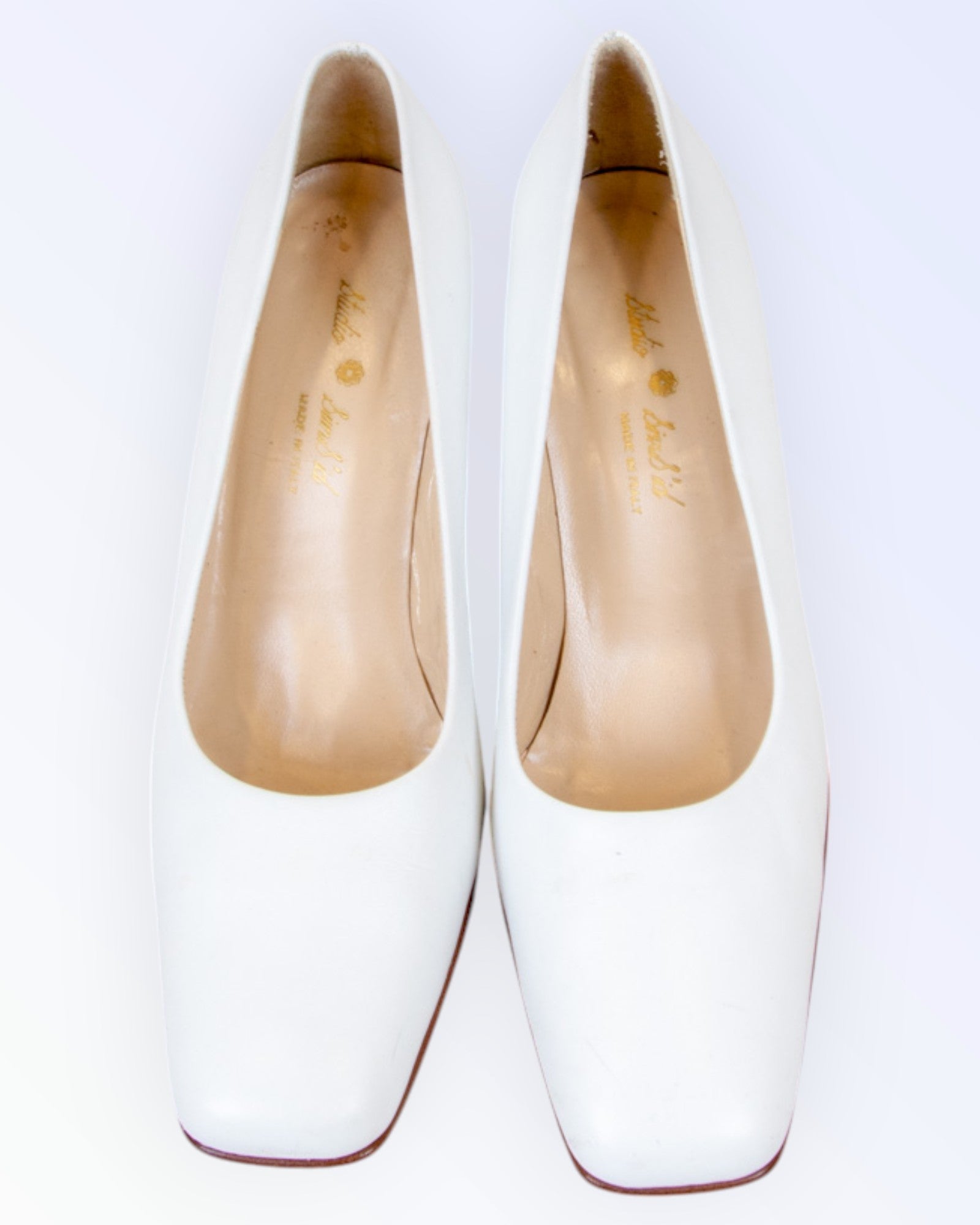 Studio Sims valkoiset nahkaiset umpinaiset kengät. Korko nahkaa. Laadukkaat kengät, sopivat hääkengiksi.