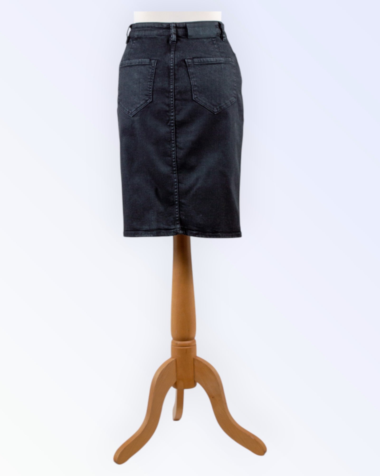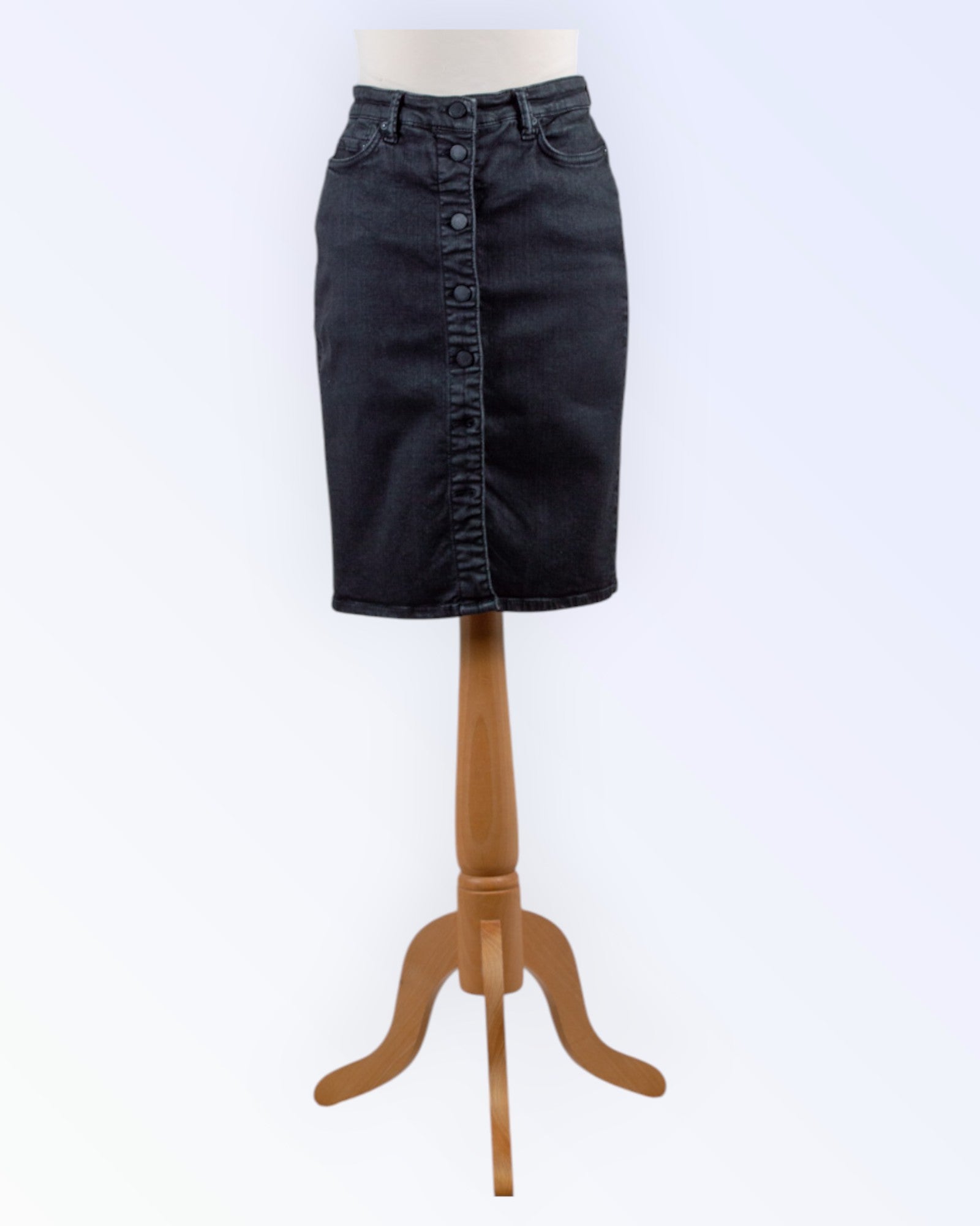 AllSaints mustast teksariidest eest nööbitav miniseelik.