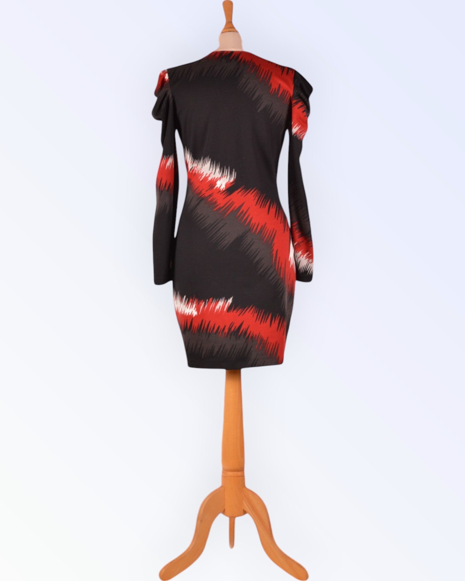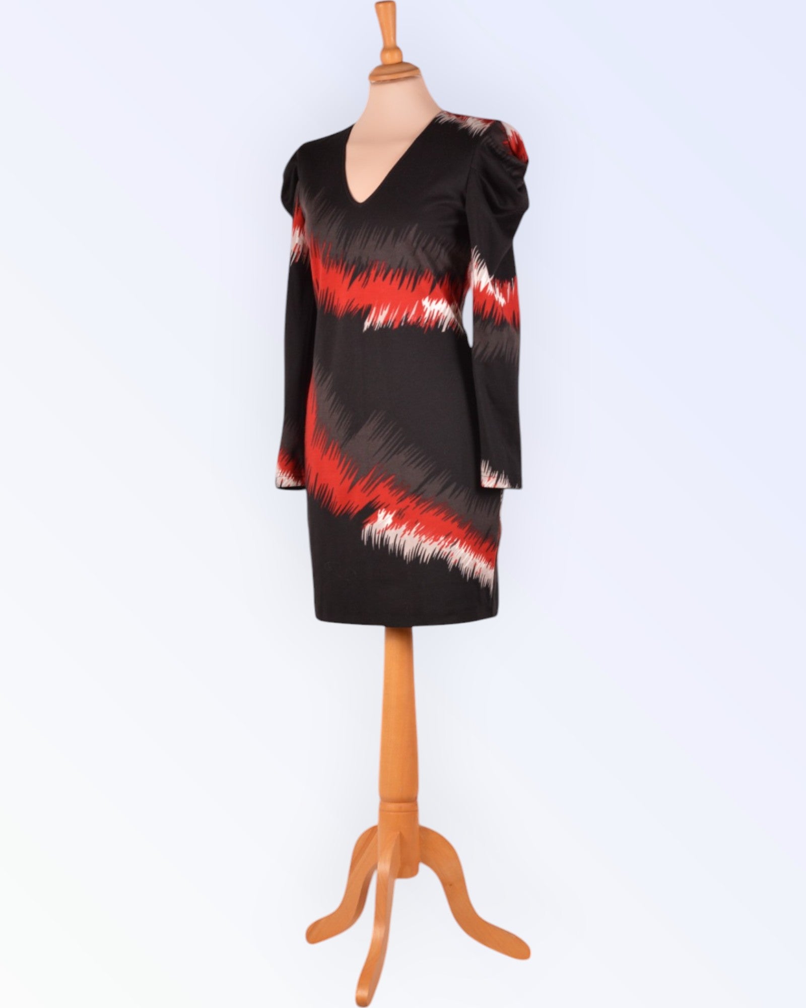 Pikkade puhv-varrukatega kergelt taljesse töödeldud trikotaažkleit.