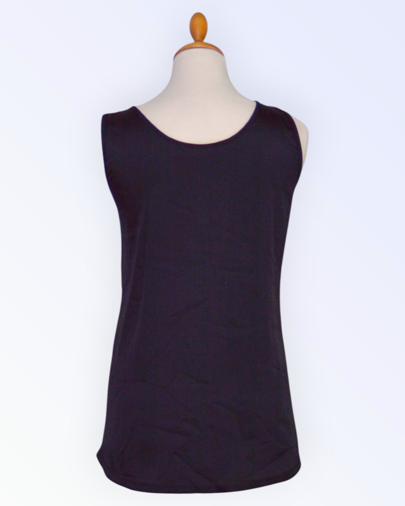 Varrukateta top mustast satiinist seljaosa ja hõbedasest litrikangast esiosaga.