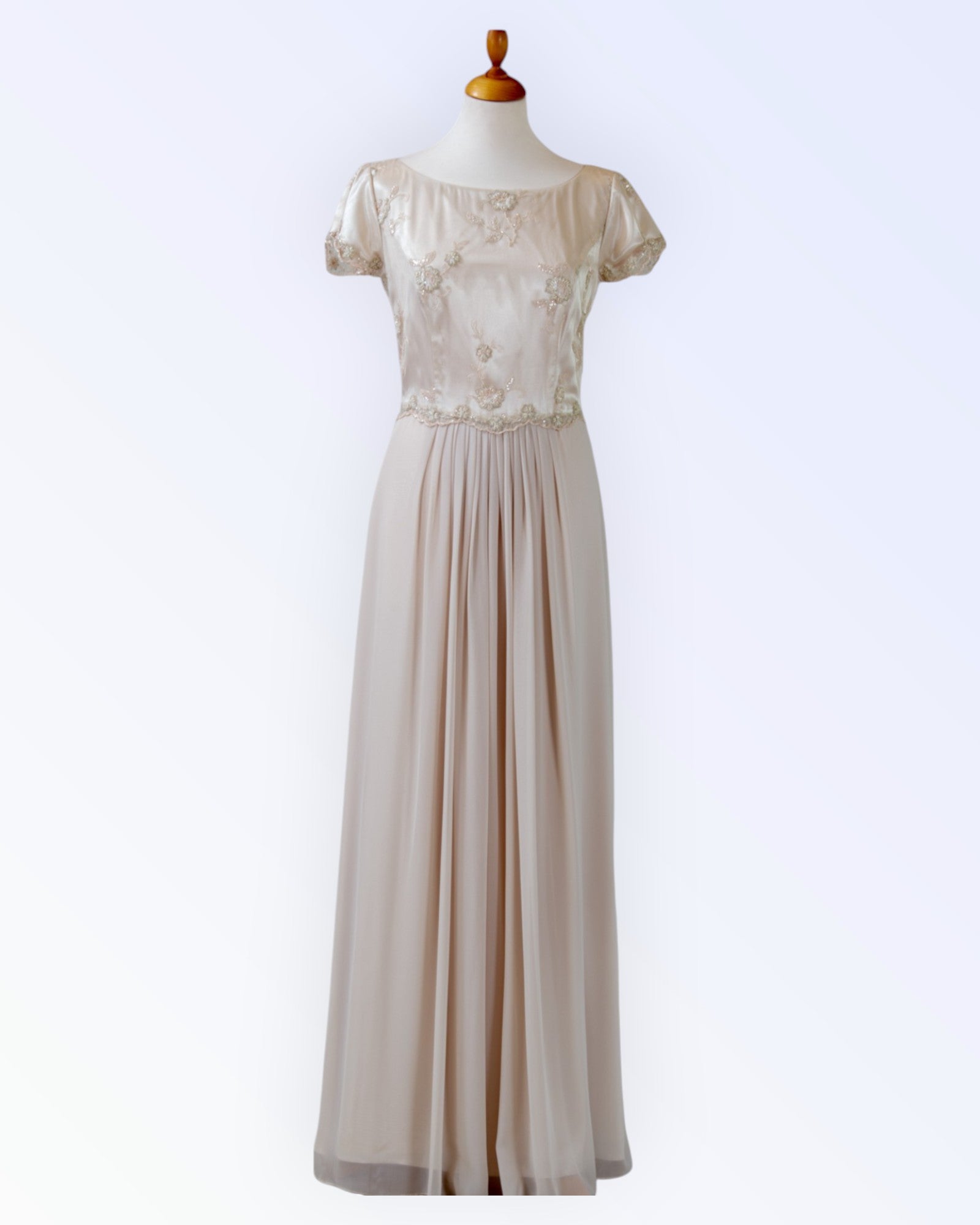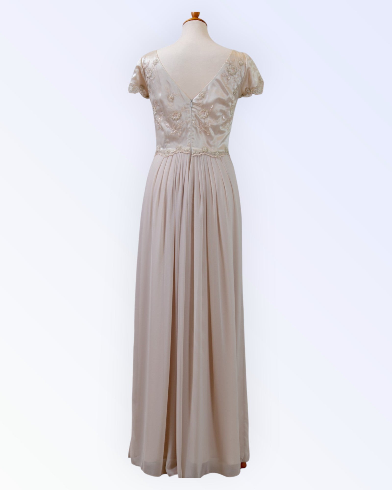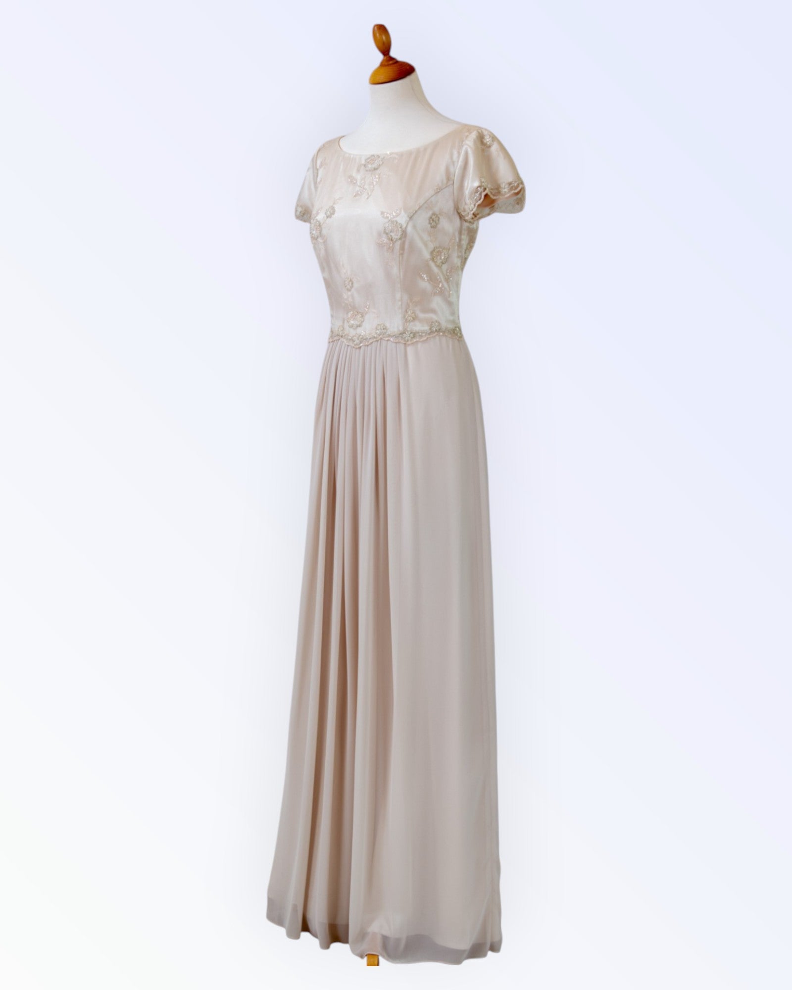 Beeź lühikeste varrukatega pidulik śifoonkleit.