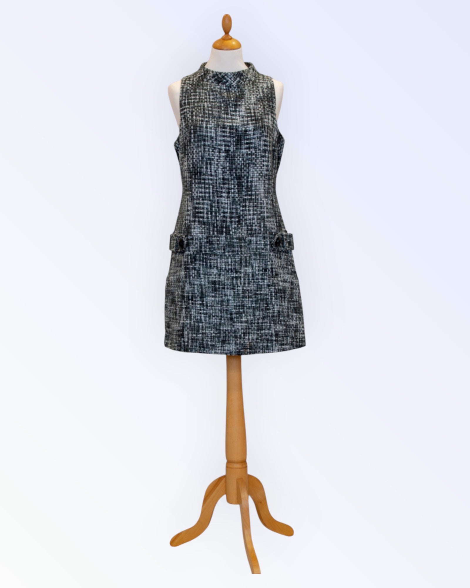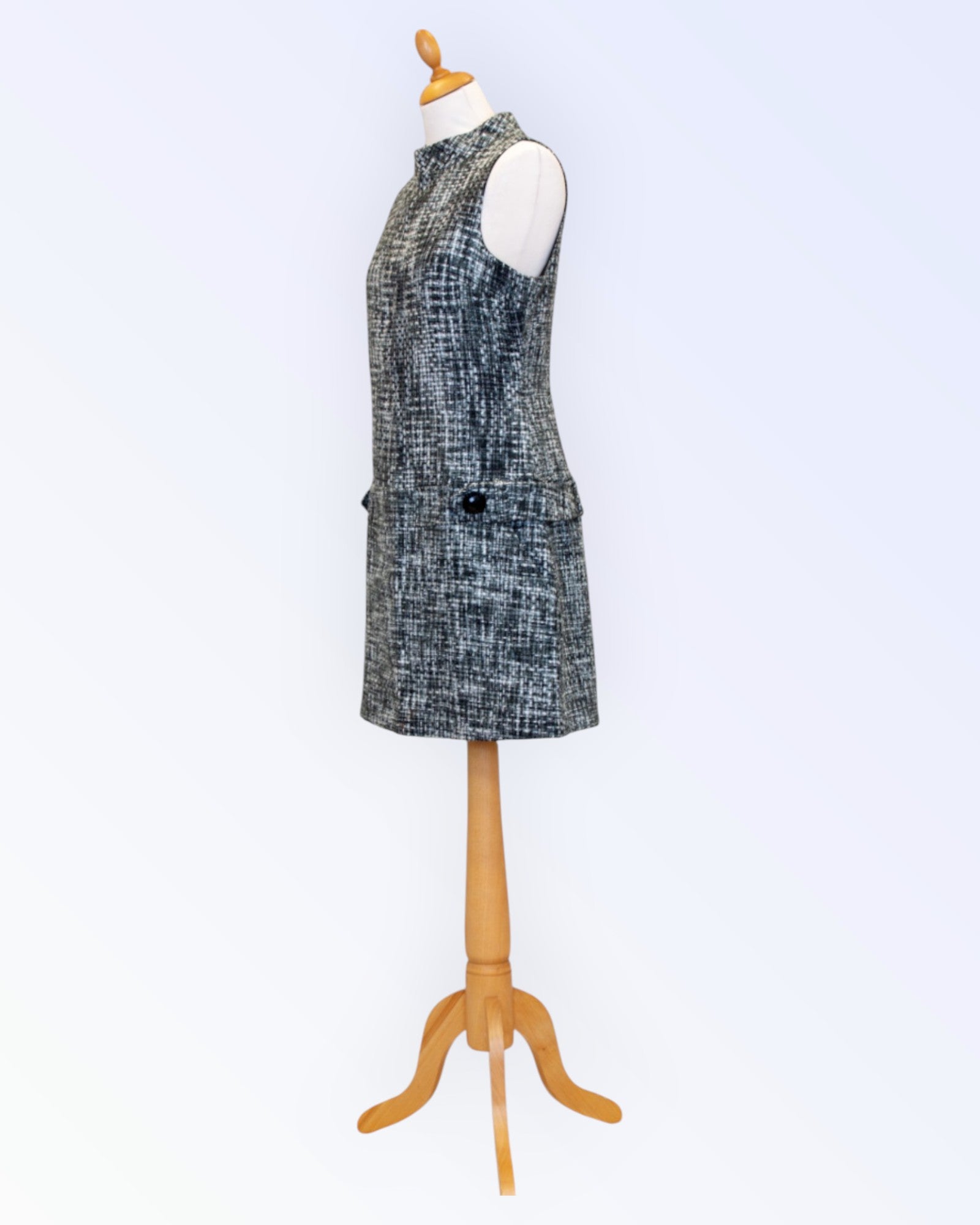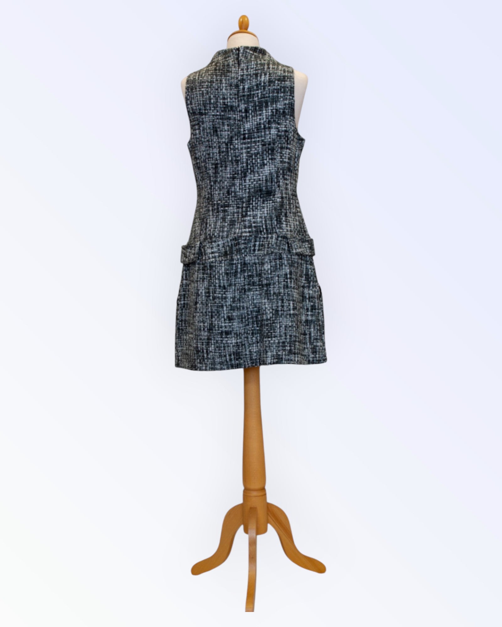 Buklee-kangast kleit on hea valik kontorisse. Klassikalise disainiga kleidil on pikendatud pihaosa ja puusal kaunistuseks suured dekoratiivsed nööbid.
