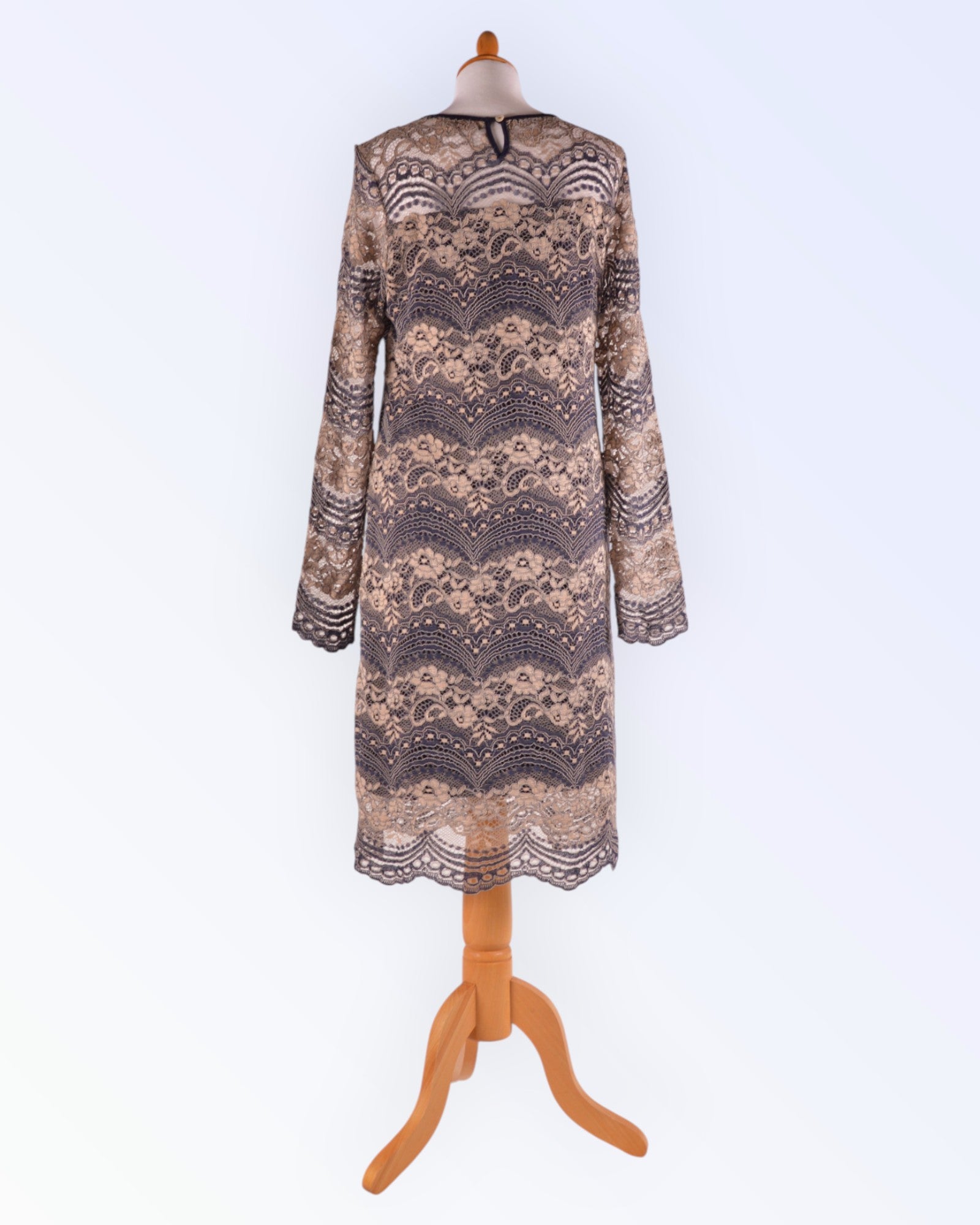 Pikkade varrukatega venivast pitist sirgelõikeline kleit. Voodriga toode.