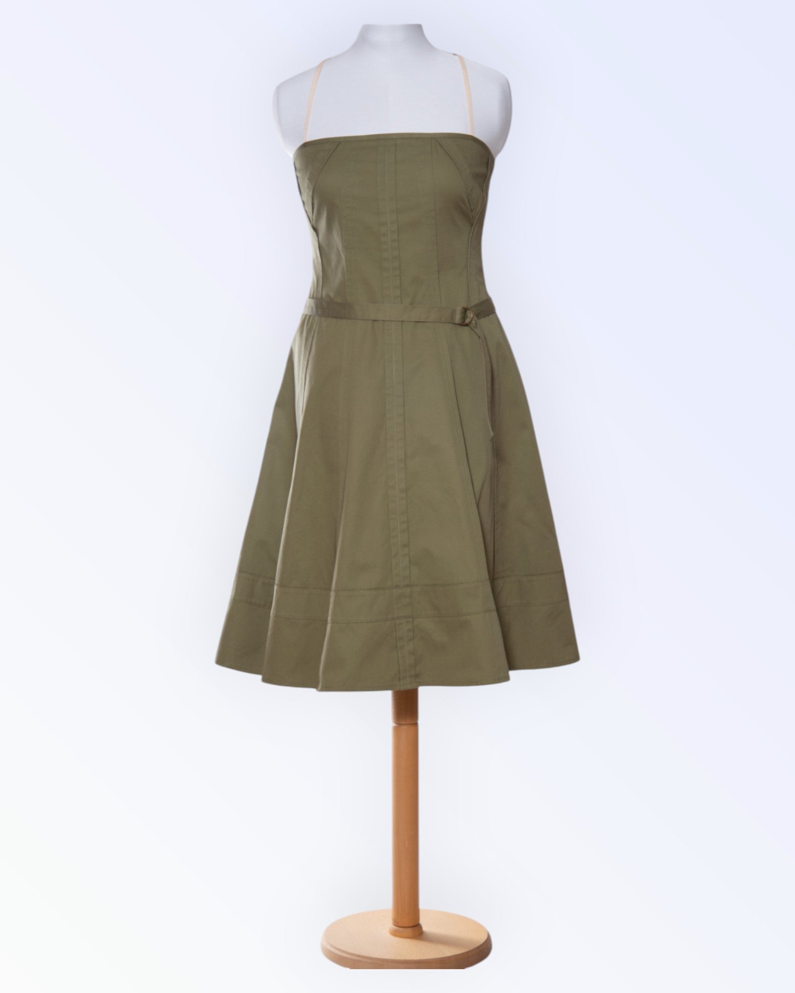 DKNY oliivroheline huvitava disainiga puuvillane kleit
