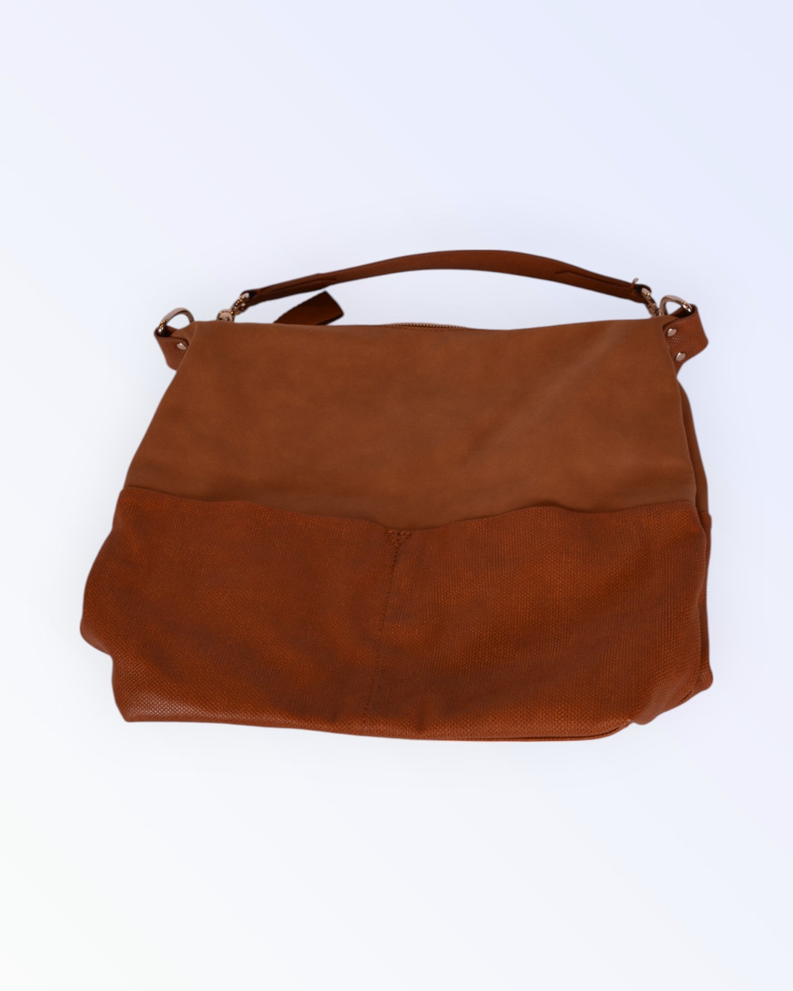 Kahest erinevast kunstnahast valmistatud mahukas õlakott. Sulgub metalse tõmblukuga. Sees lukuga sisetasku.