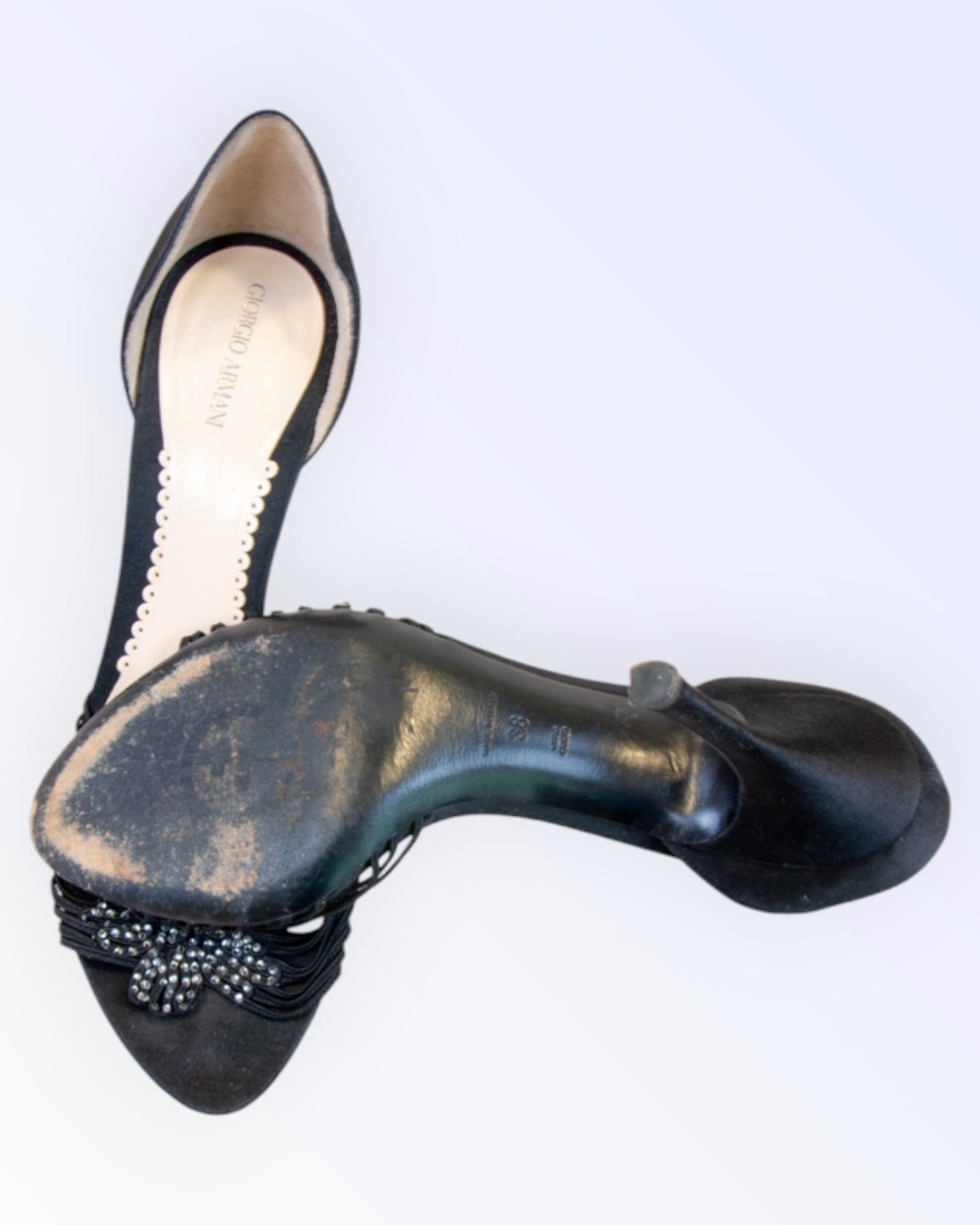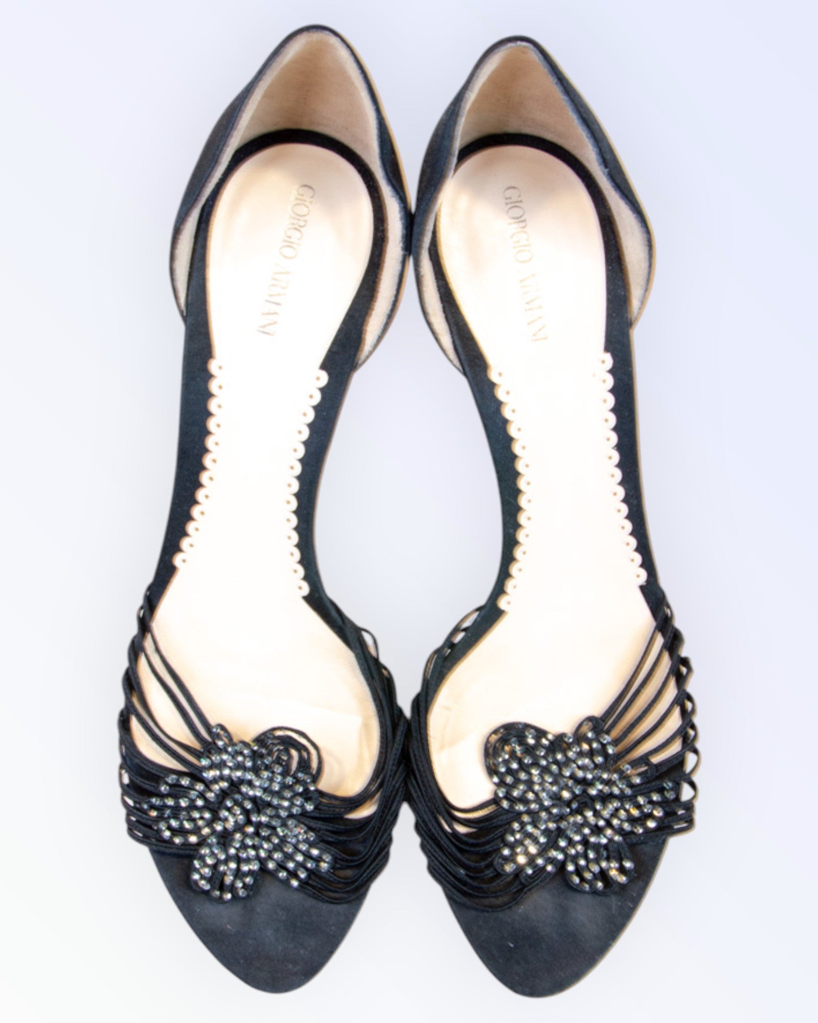Giorgio Armani sädelevate kivikestega pidulikud tekstiilkingad.