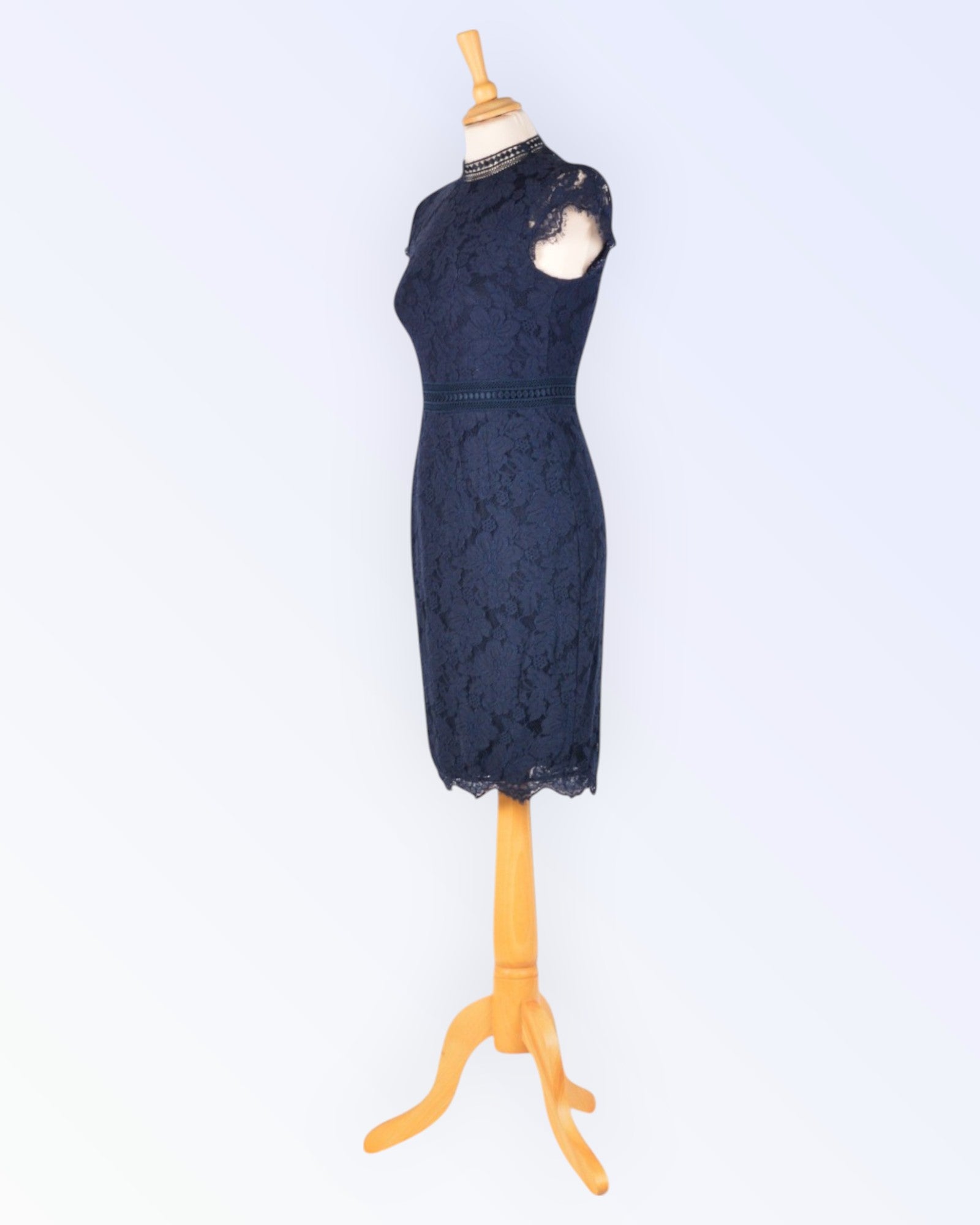 Tumesinisest pitsist pidulik pliiats-stiilis kleit.