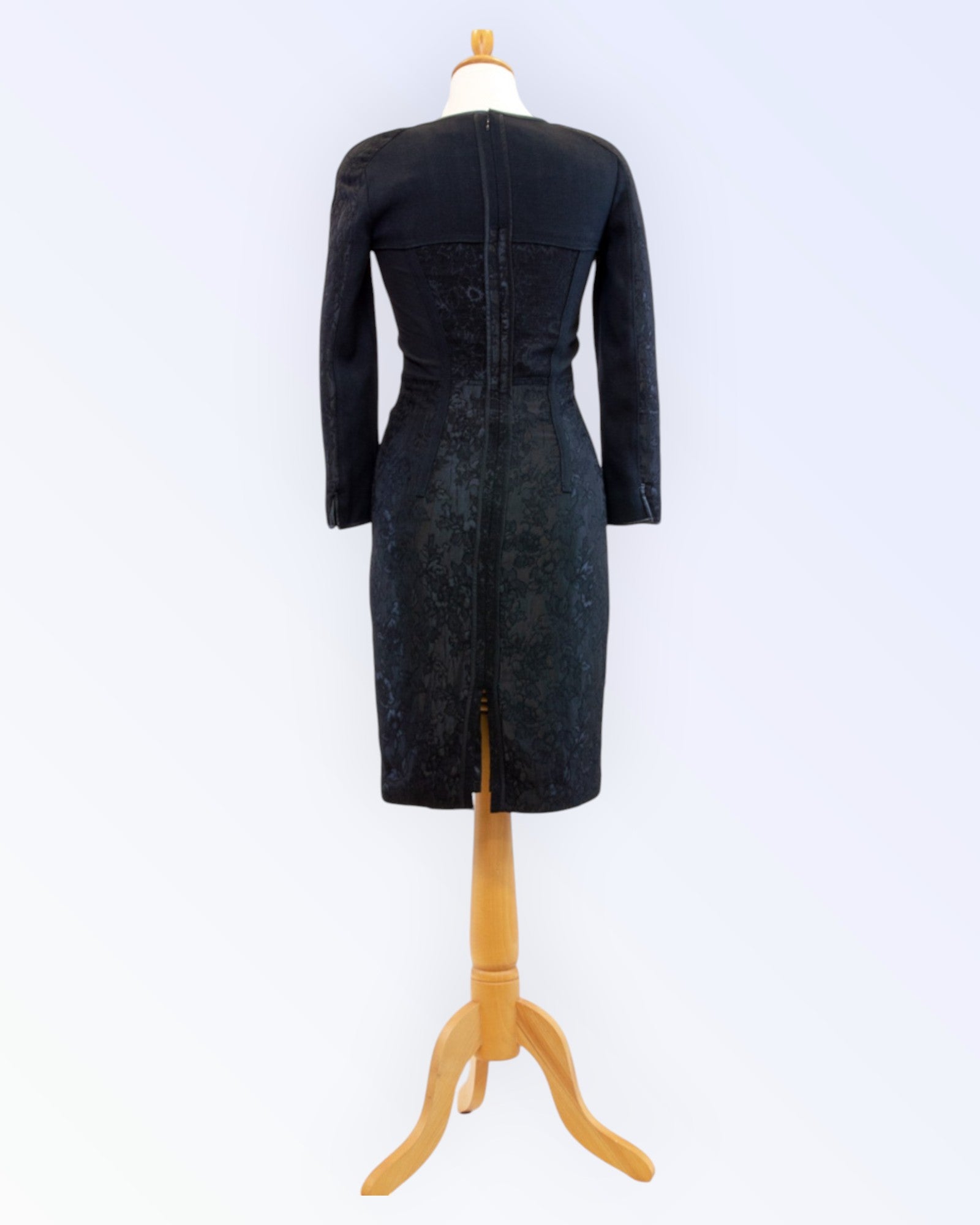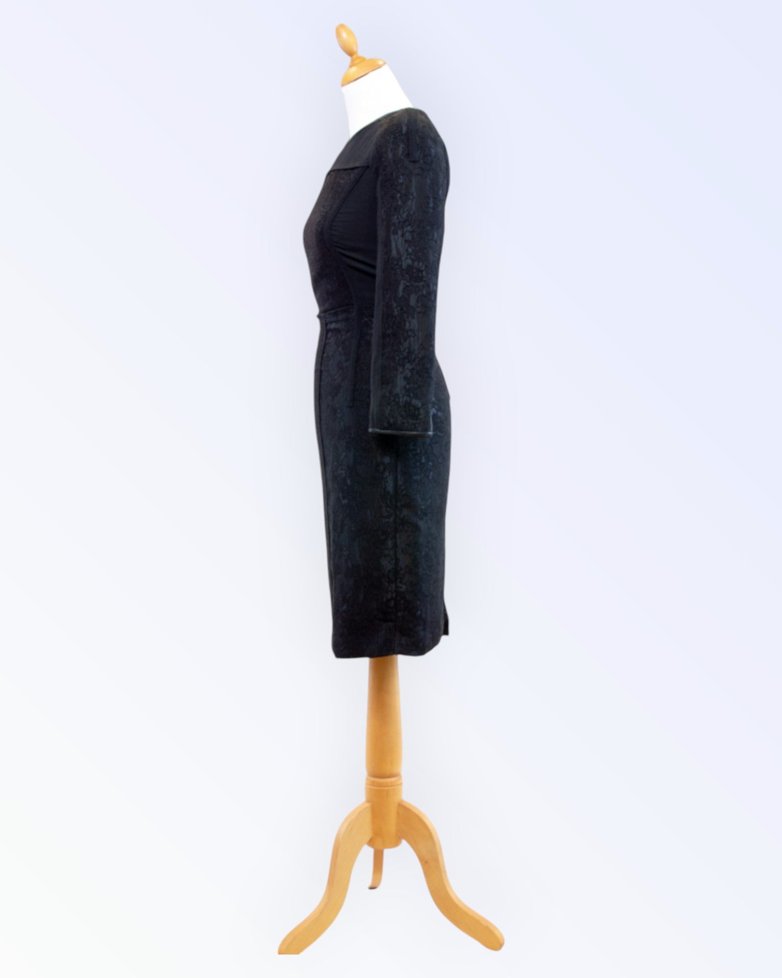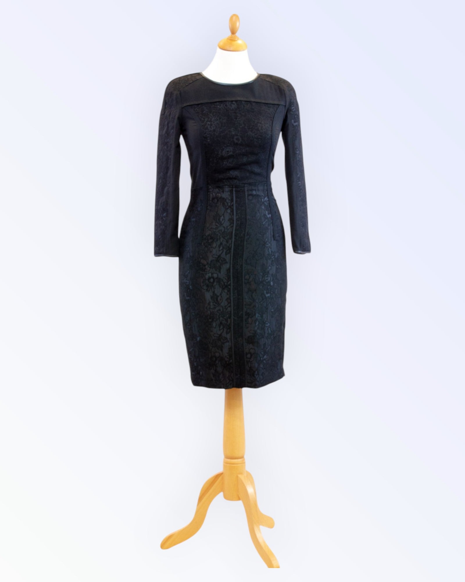 Must pikkade varrukatega erinevatest materjalidest disainitud kleit. Selline huvitava disainiga klassikaline kleit on iga daami garderoobi nurgakivi.