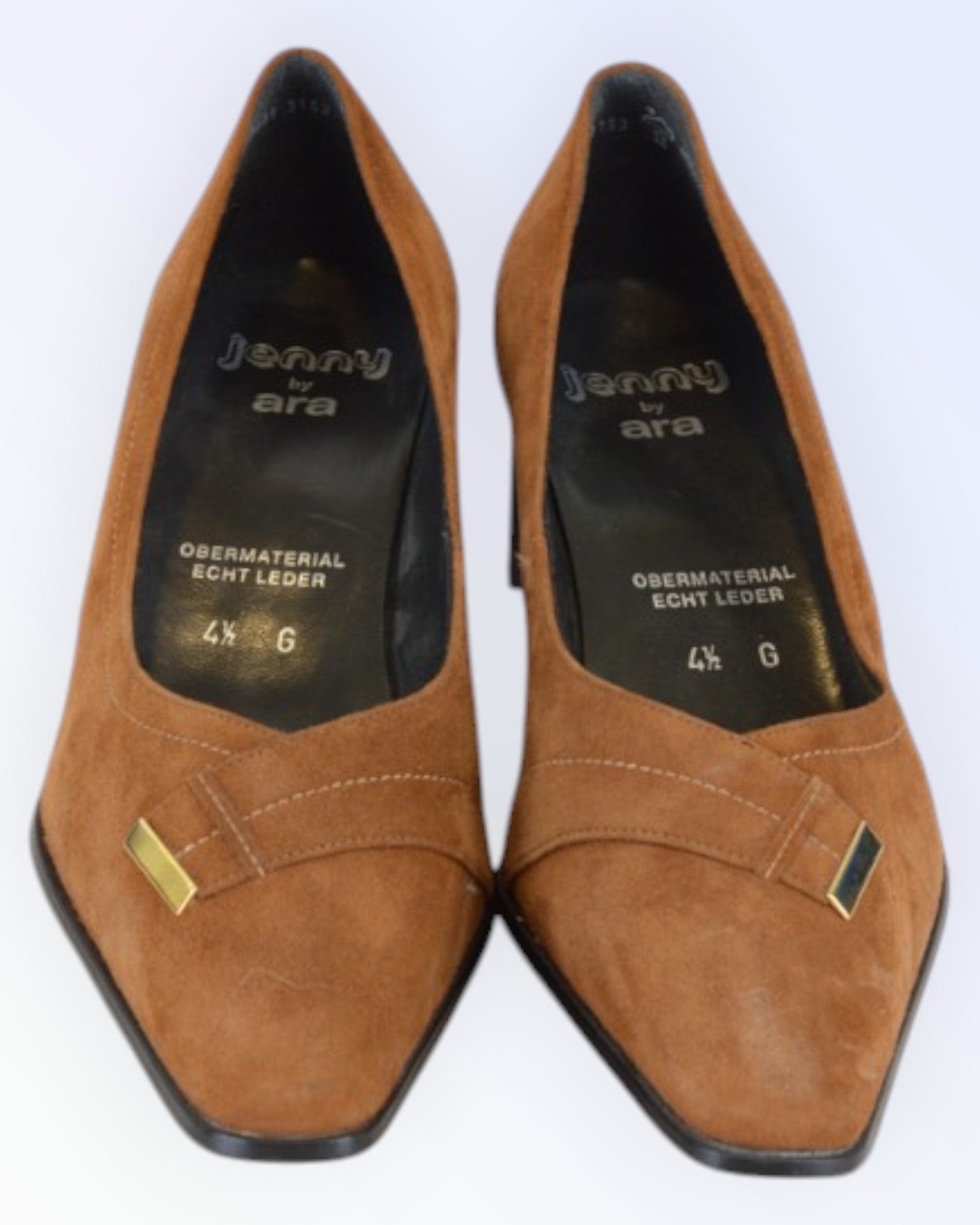 Jenny by Ara pruunist seemisnahast kuldse ornamendiga kingad.