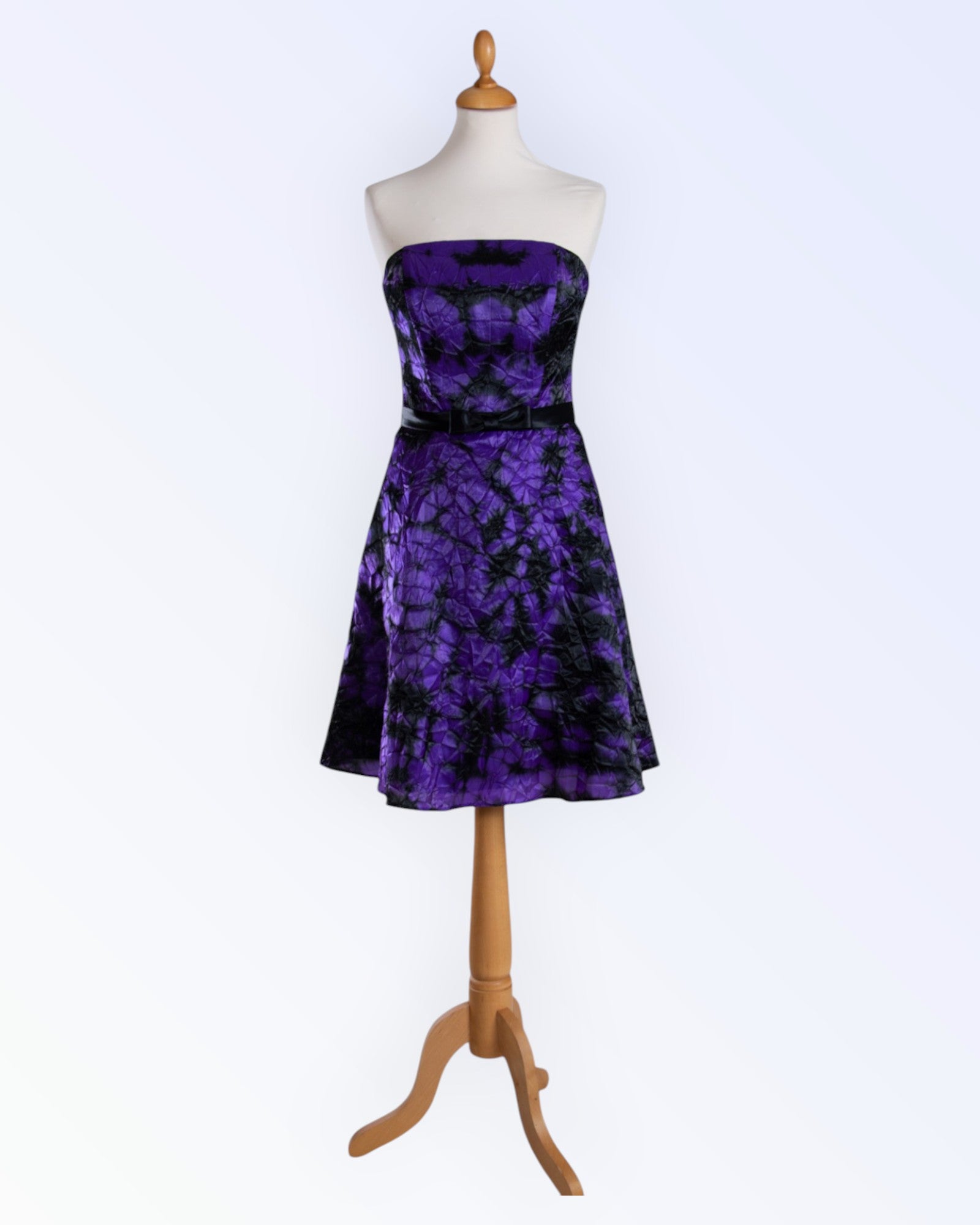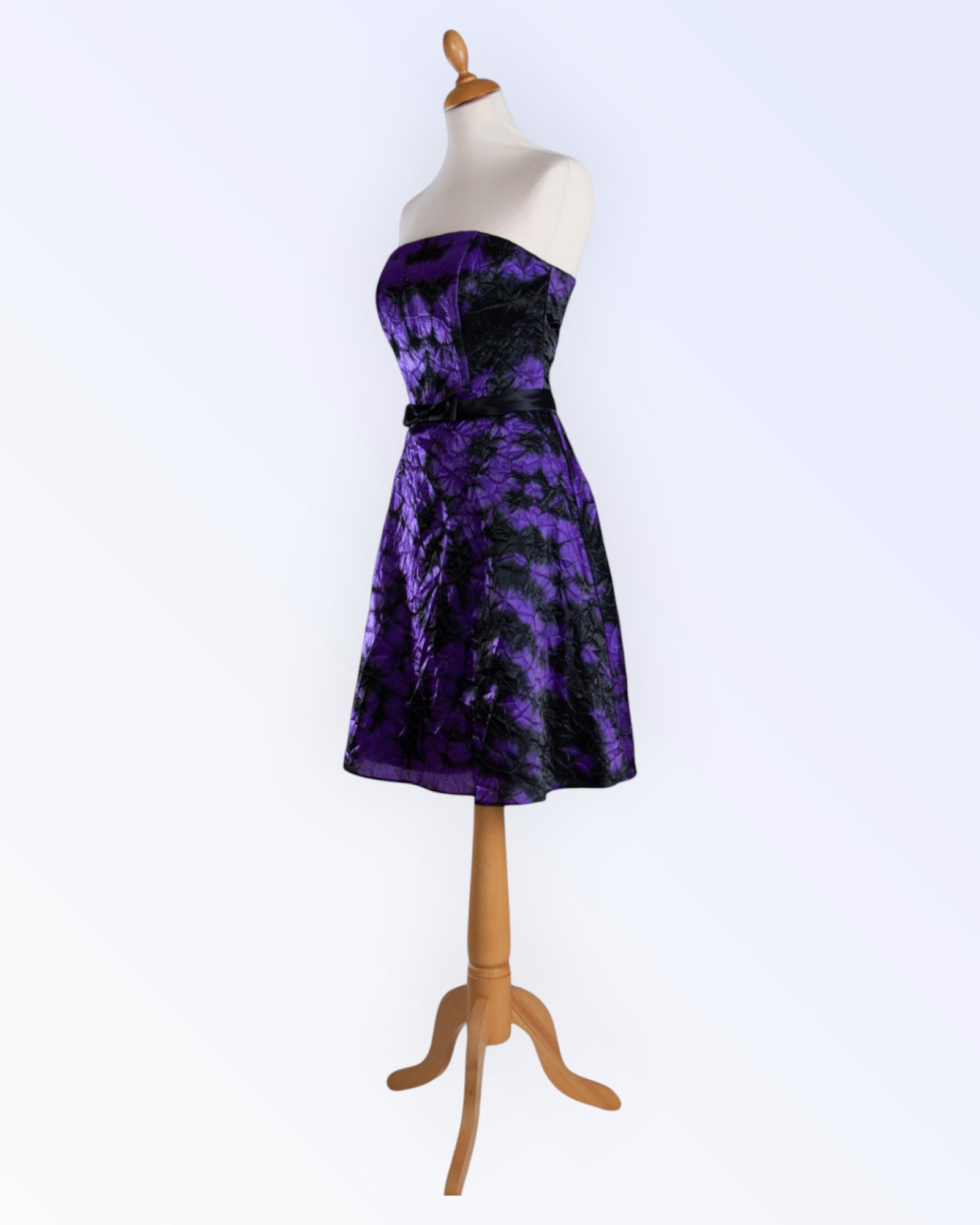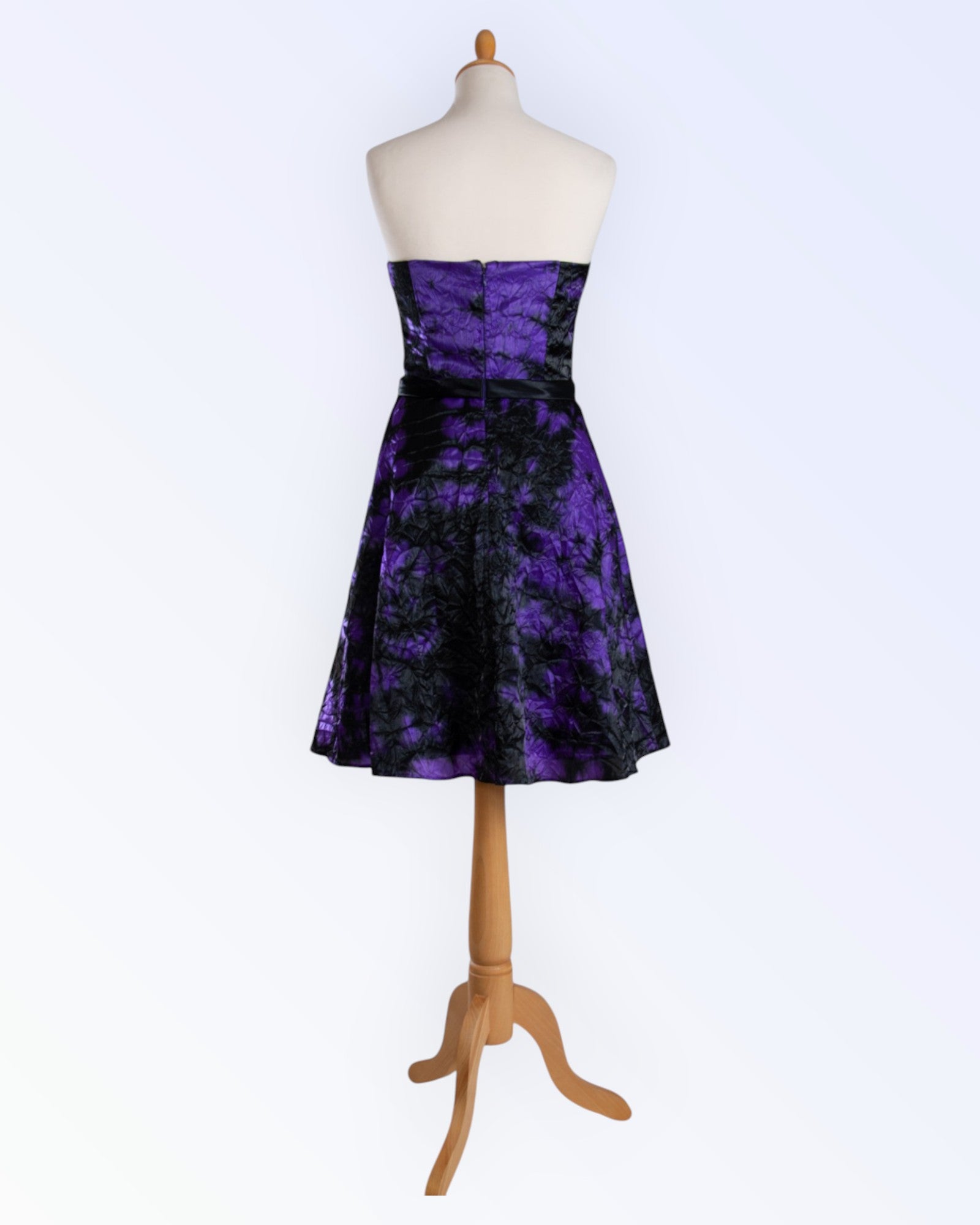 Kahevärvilisest satiinorganzast korsetiga kokteilkleit.