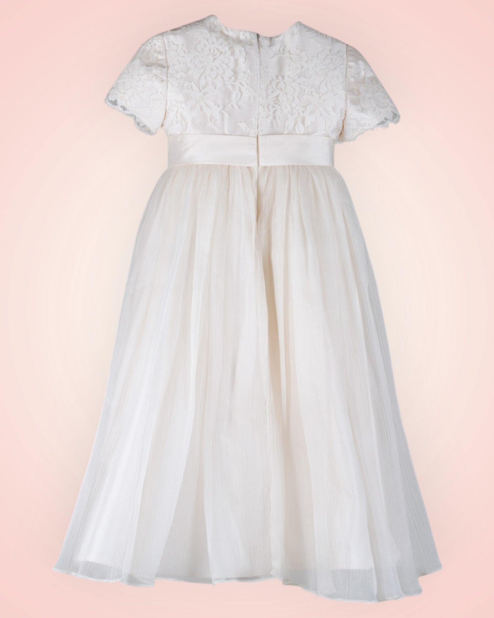 prantsuse pitsist ülaosa ja koheva seelikuga pidulik kleit