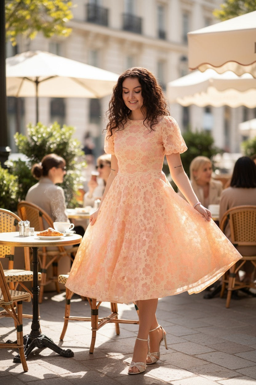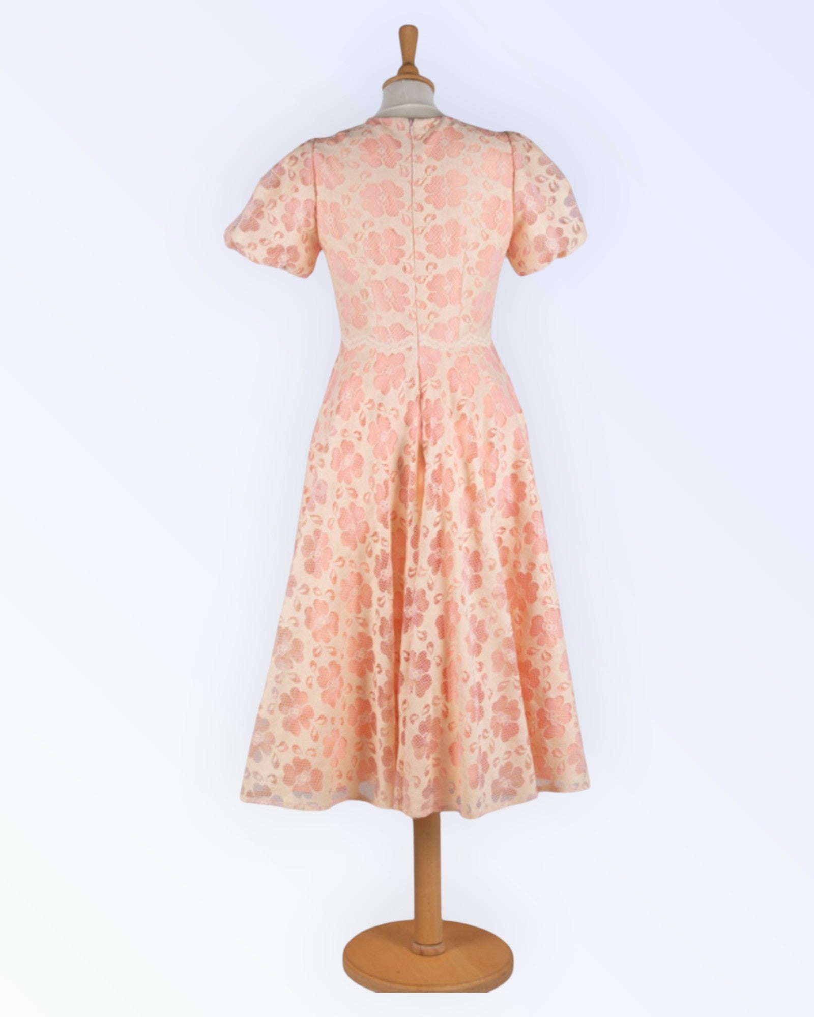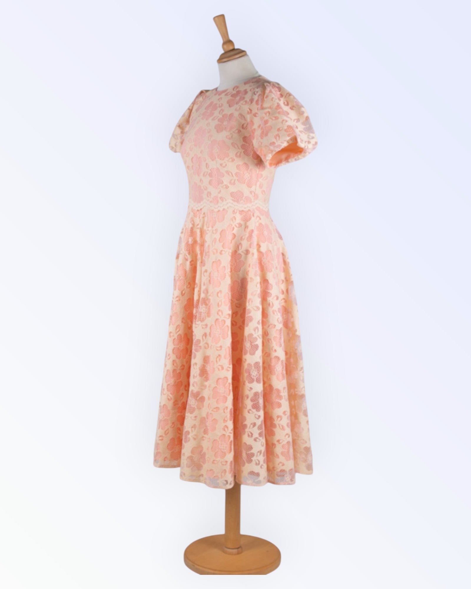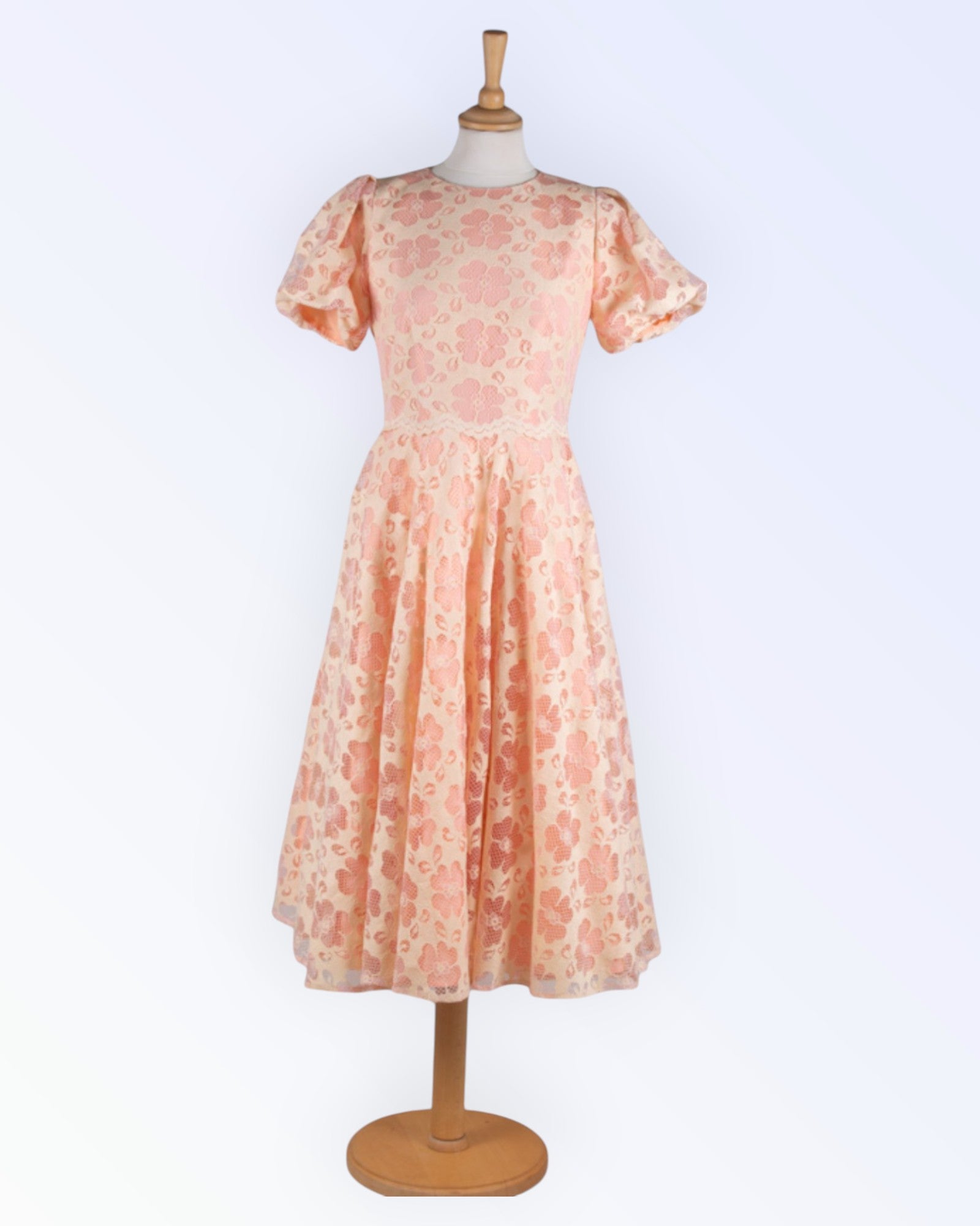 Lillelisest pitsist puhv-varrukatega retro-stiilis kleit