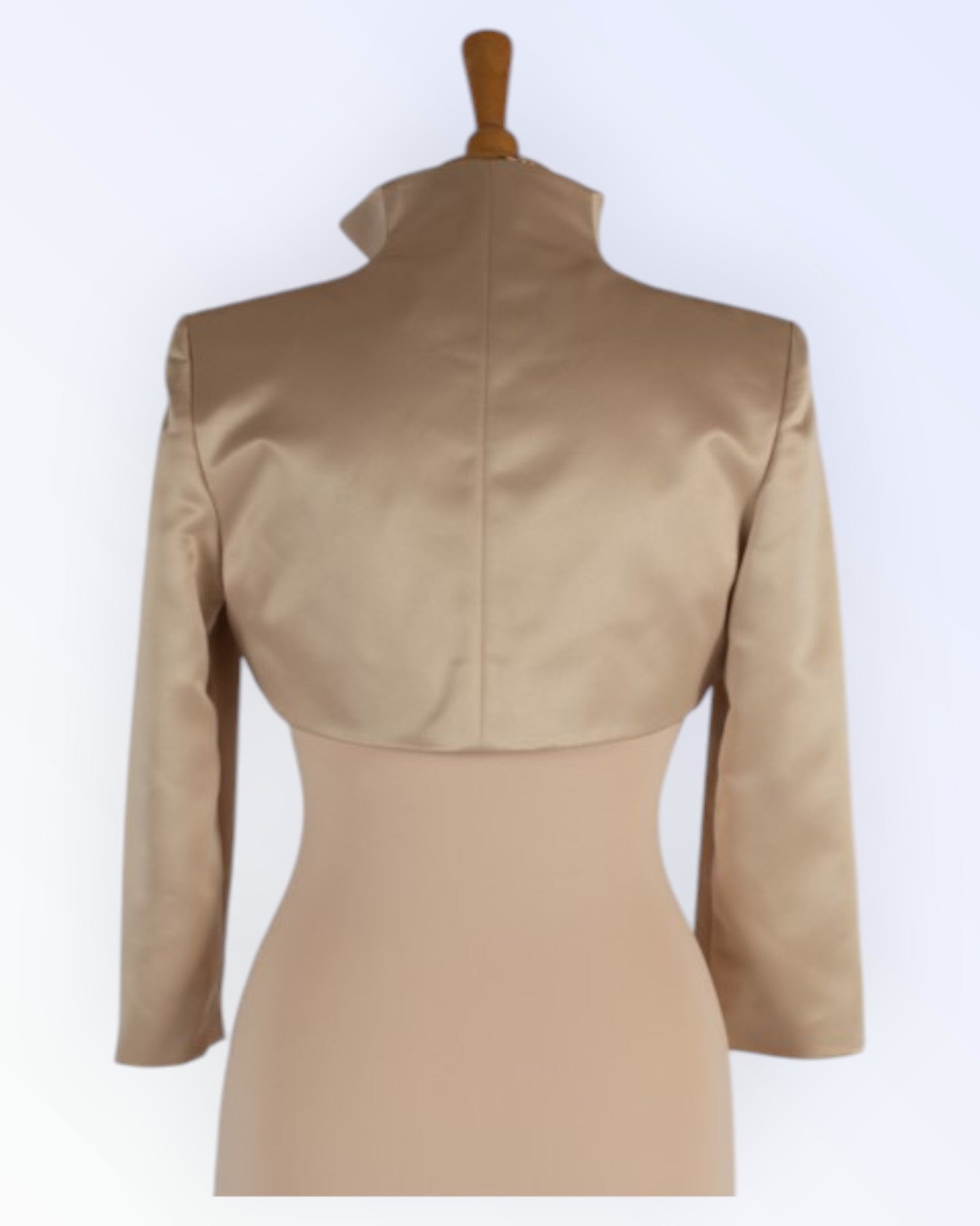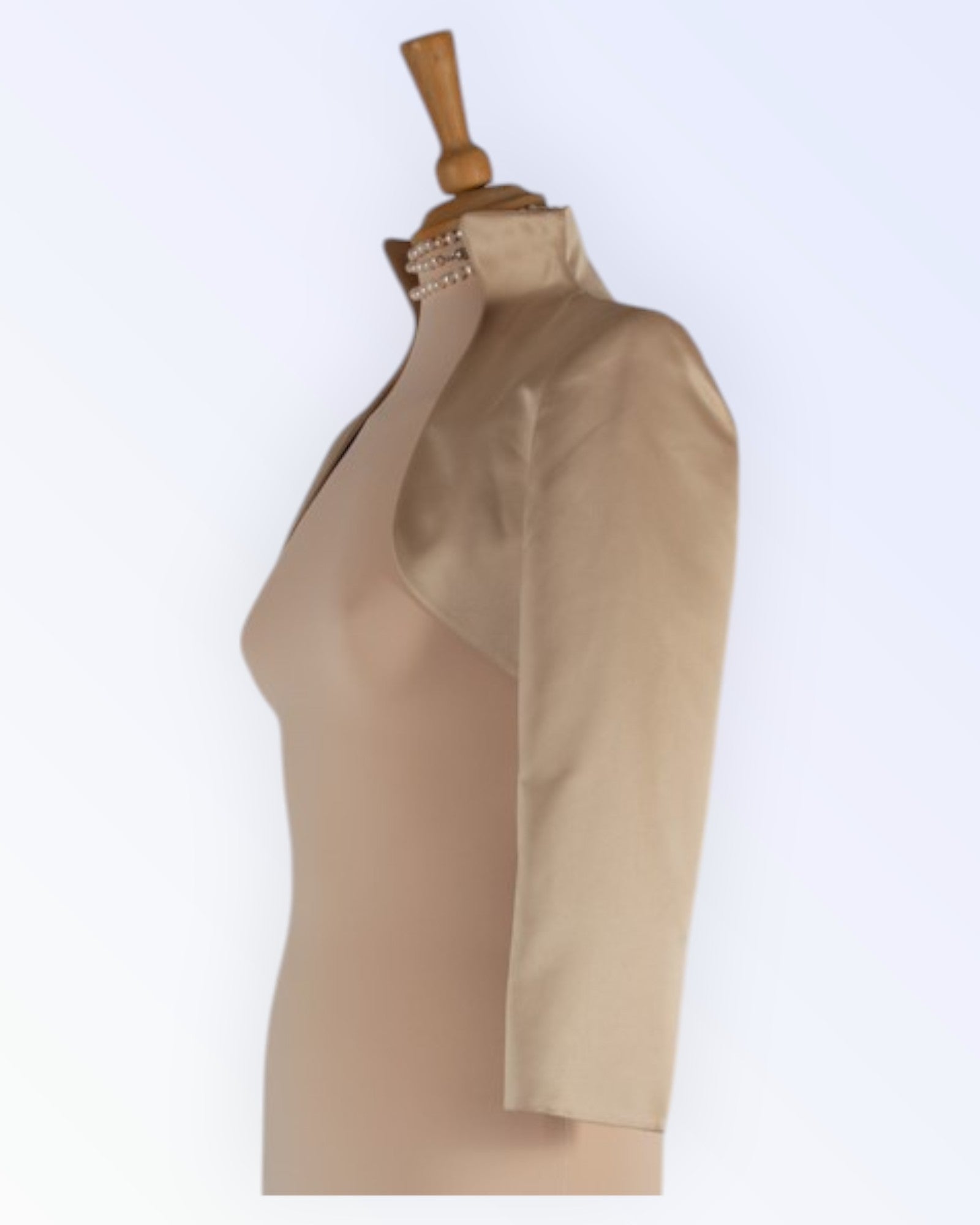 Beež satiinist pidulik püstkraega boolero.