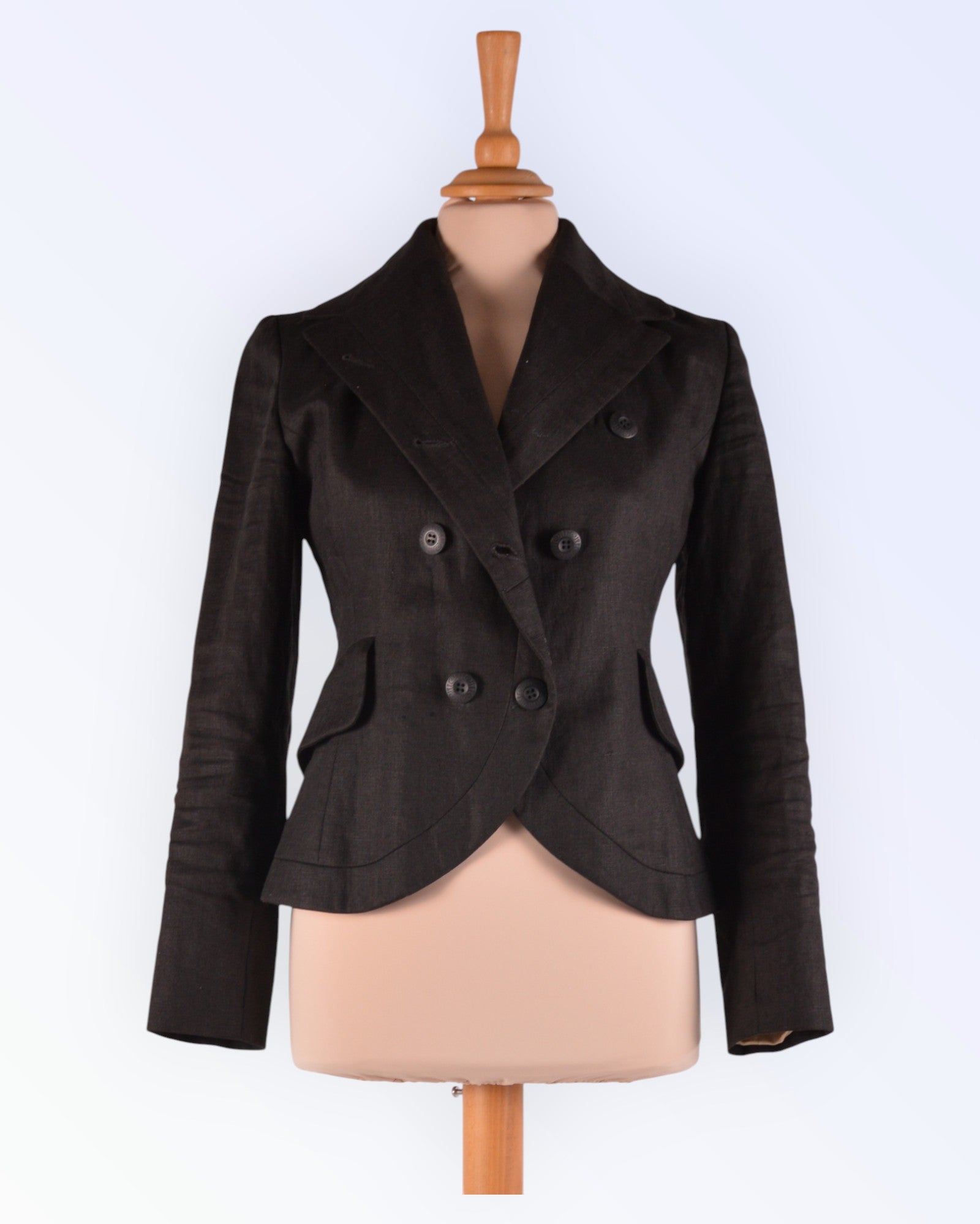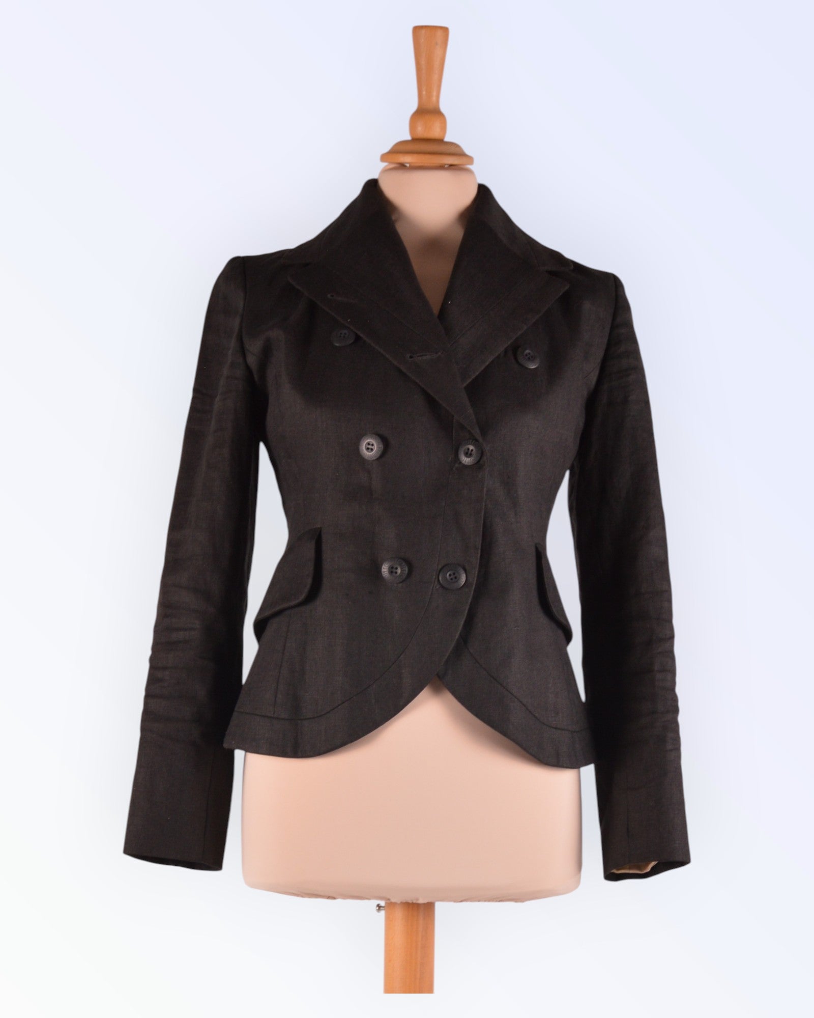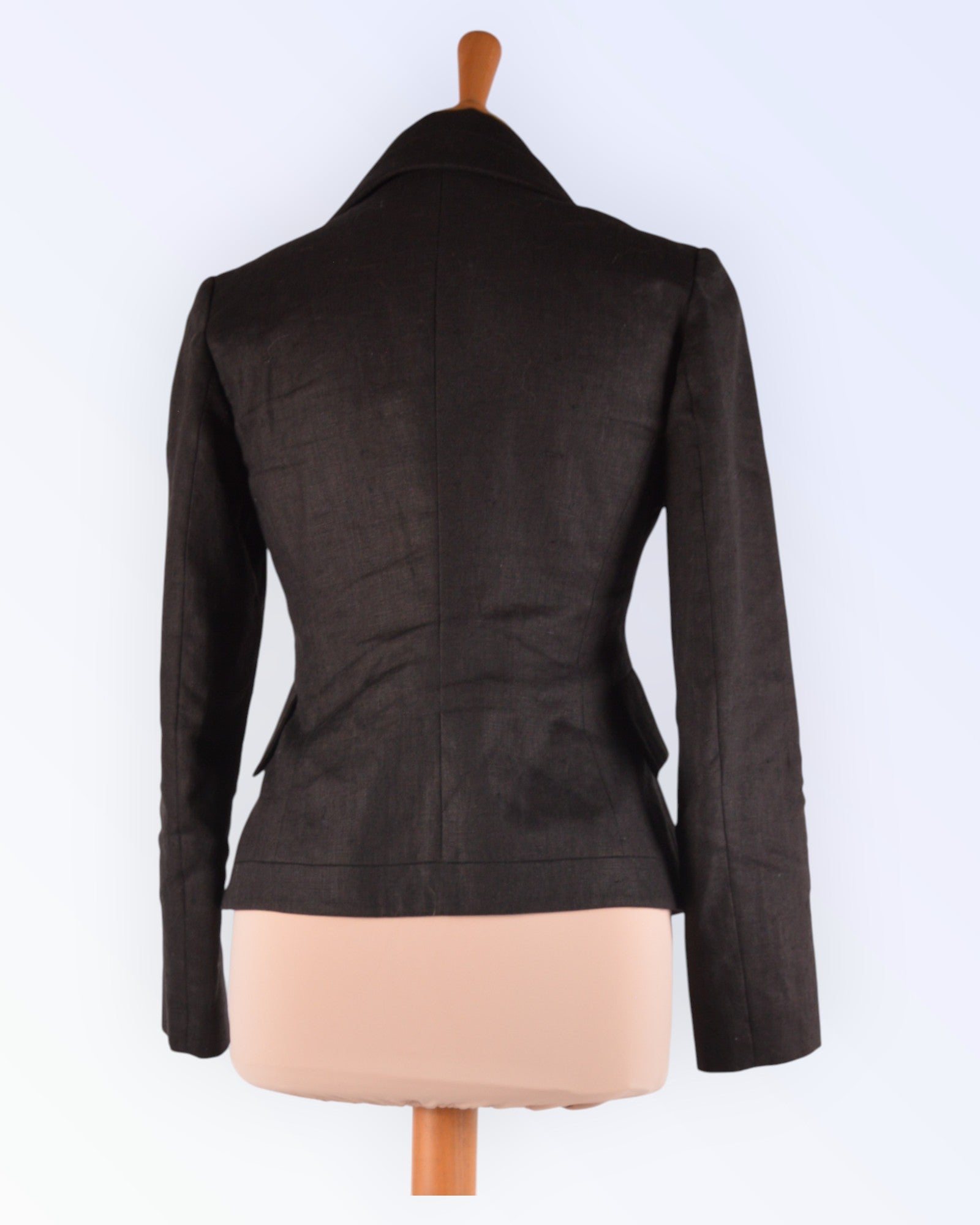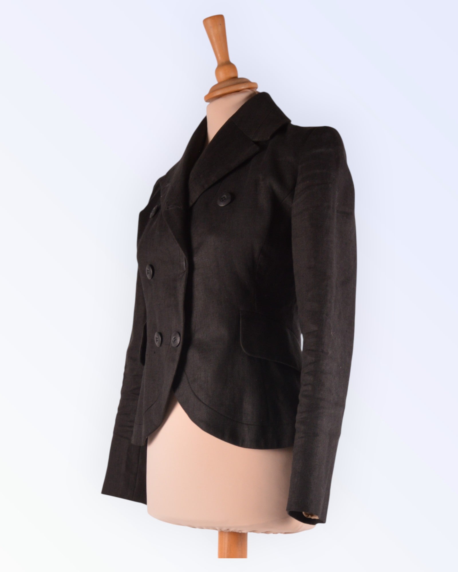 Liibuvalõikeline suvine linasest kangast jakk. Voodriga toode. Vooder 100% viskoos.